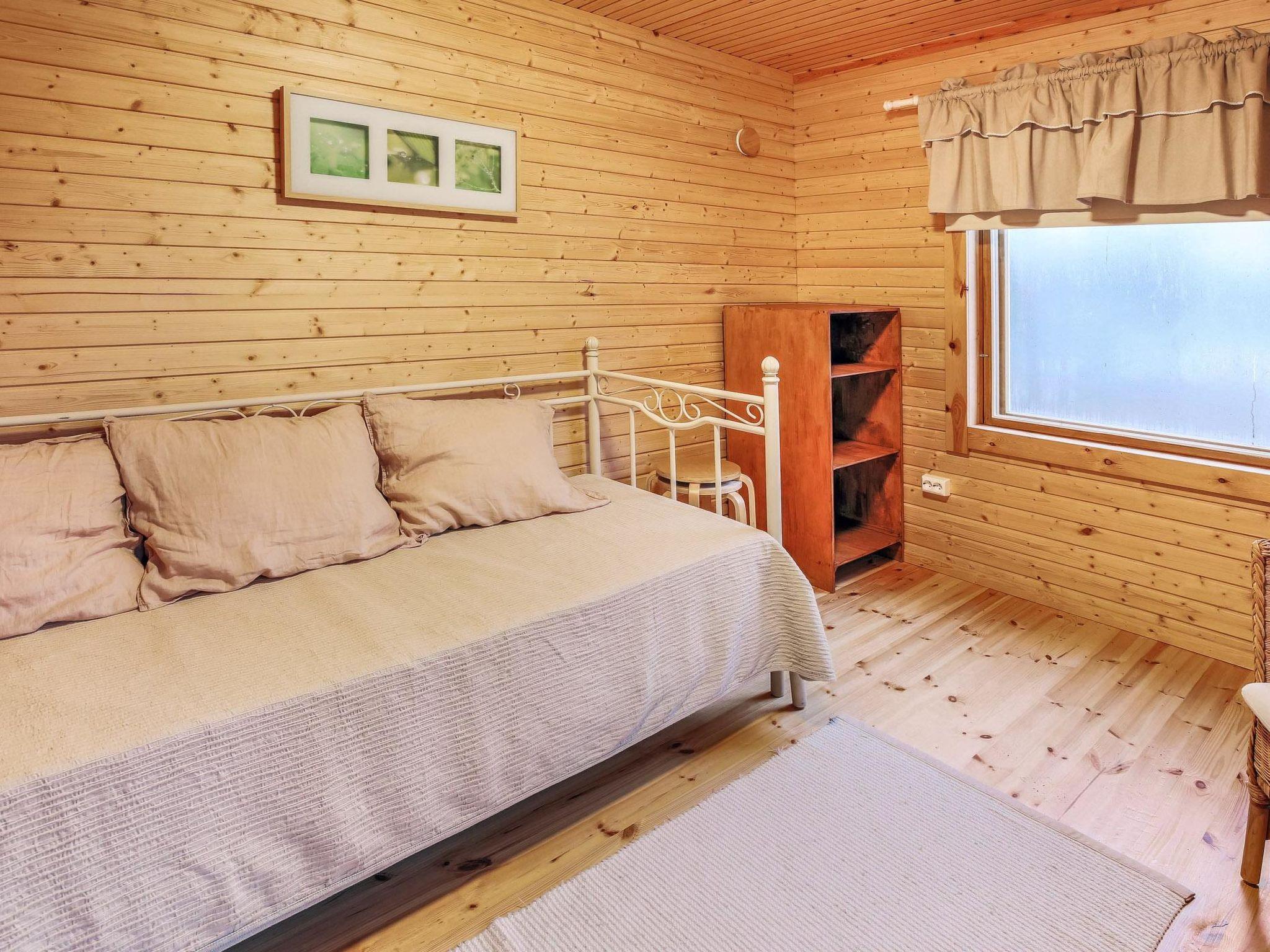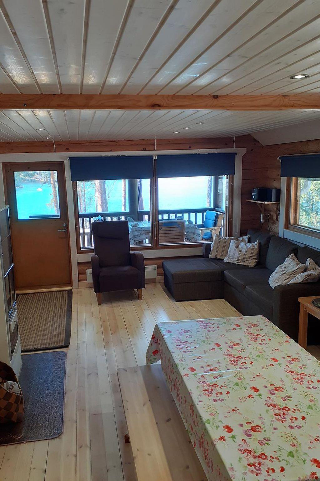 Log chalet 2009, living room/kitchen, bedroom twin bed, washroom, WC in dressing room, roofed open porch and large terrace. Upstairs: 4 beds and balcony. In sleeping hut (in summer use): convertible sofa for 2 persons, electricity and electric panel heating. Porch has gas-fired barbecue grill, water pipe from well.