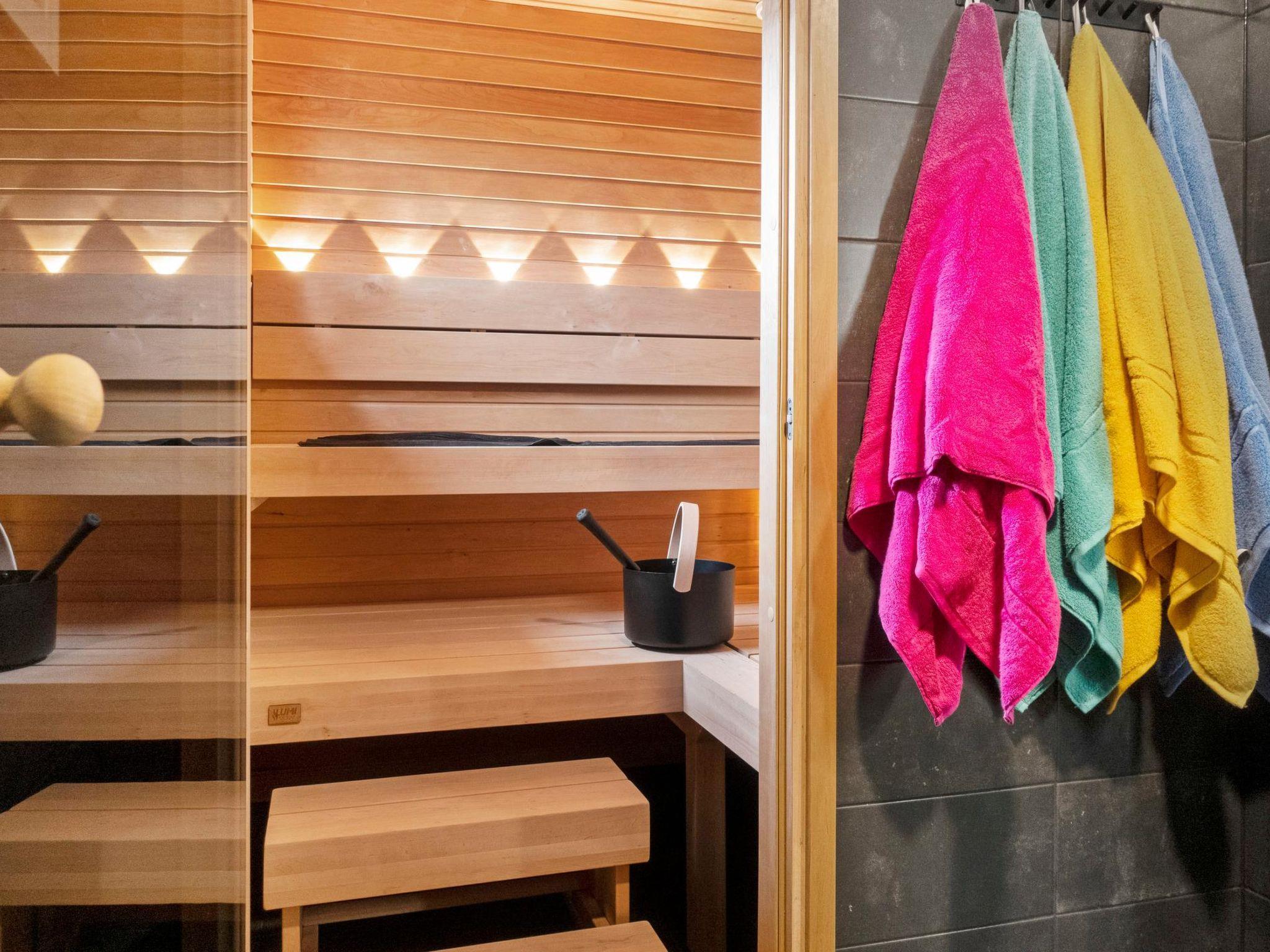 Wooden villa. Sofa bed in the living room/kitchen, 2 motorized beds in the bedroom, beds width 90 cm, in the another bedroom 2 beds (width 90 cm), sauna, washroom and separate WC.