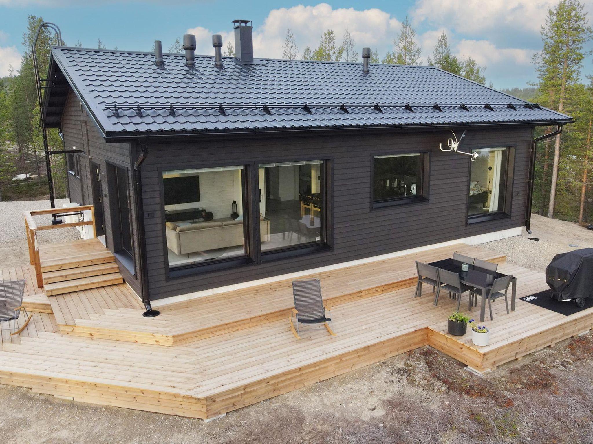 High-quality holiday villa, built in 2022, at a peaceful vantage point in Inari. Great views of lake Rahajärvi from the large windows. Suits perfectly for both nature holidays and remote work.