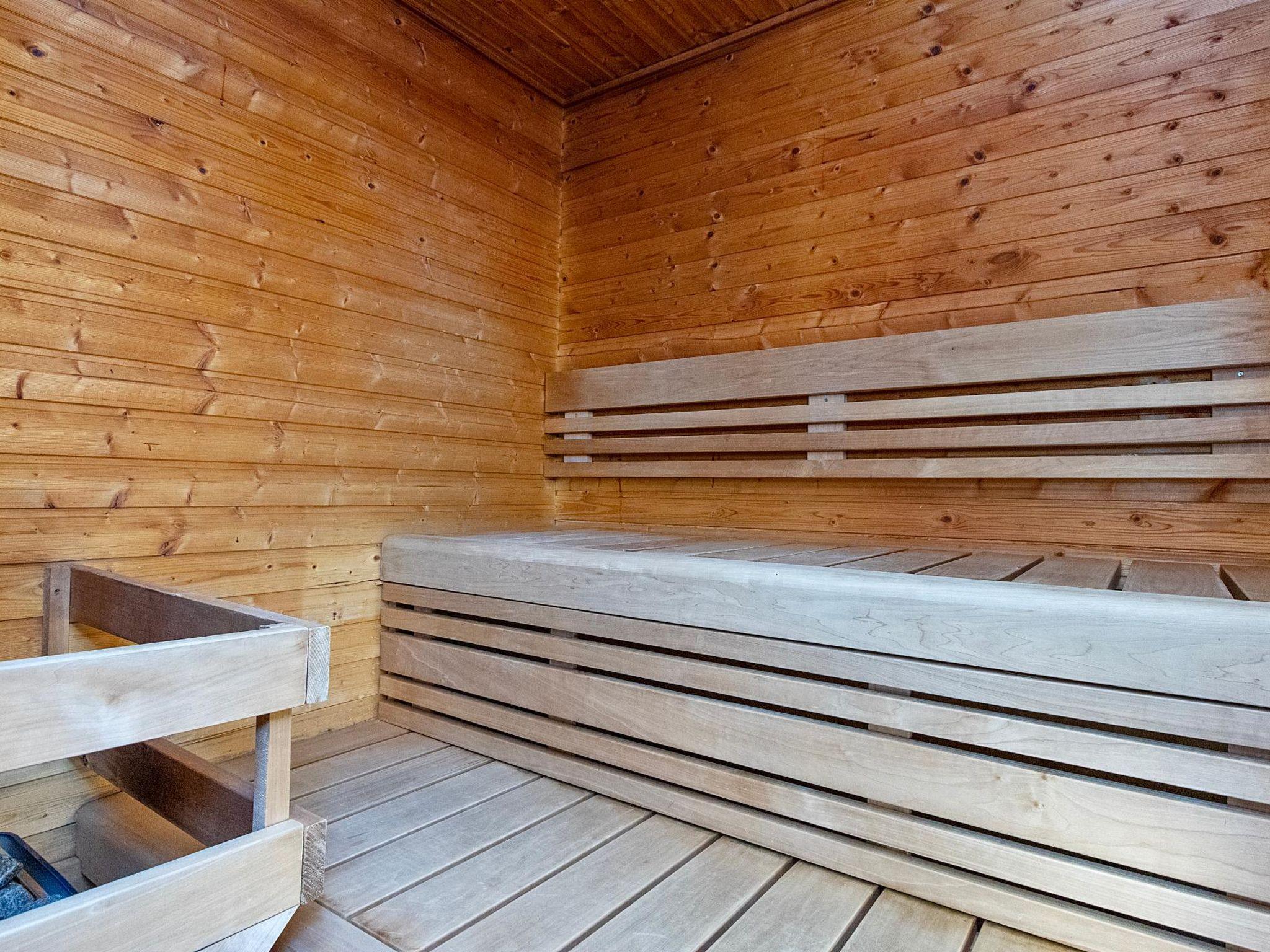 The hallway leads to the sauna and the washroom, which also has a toilet.