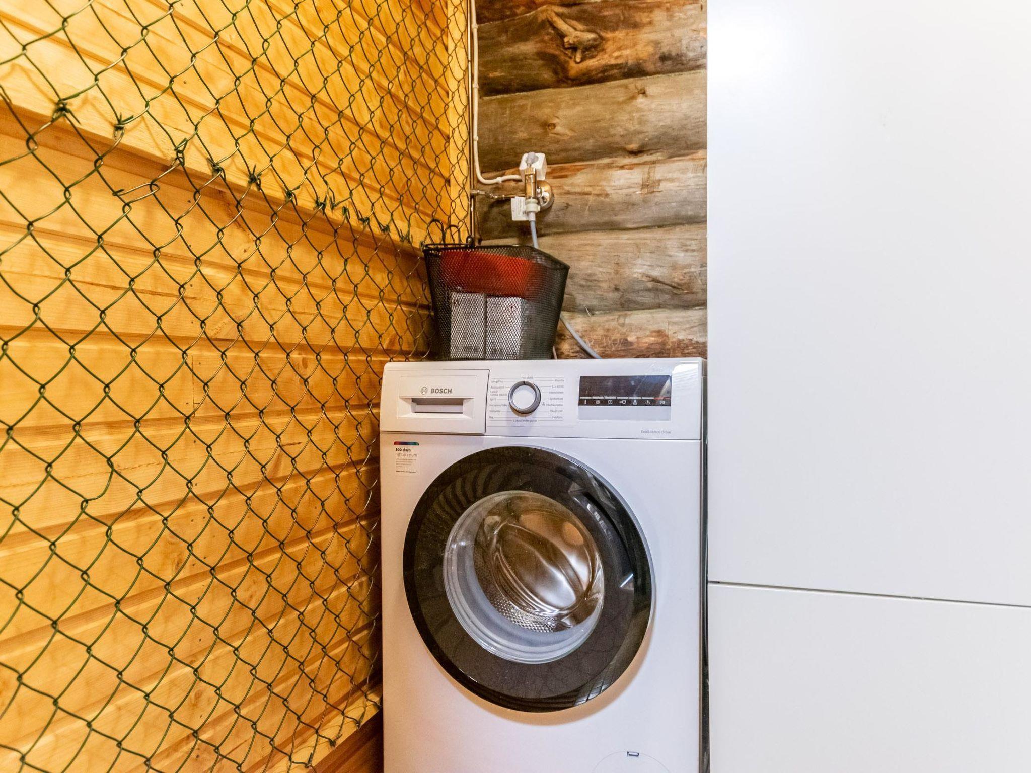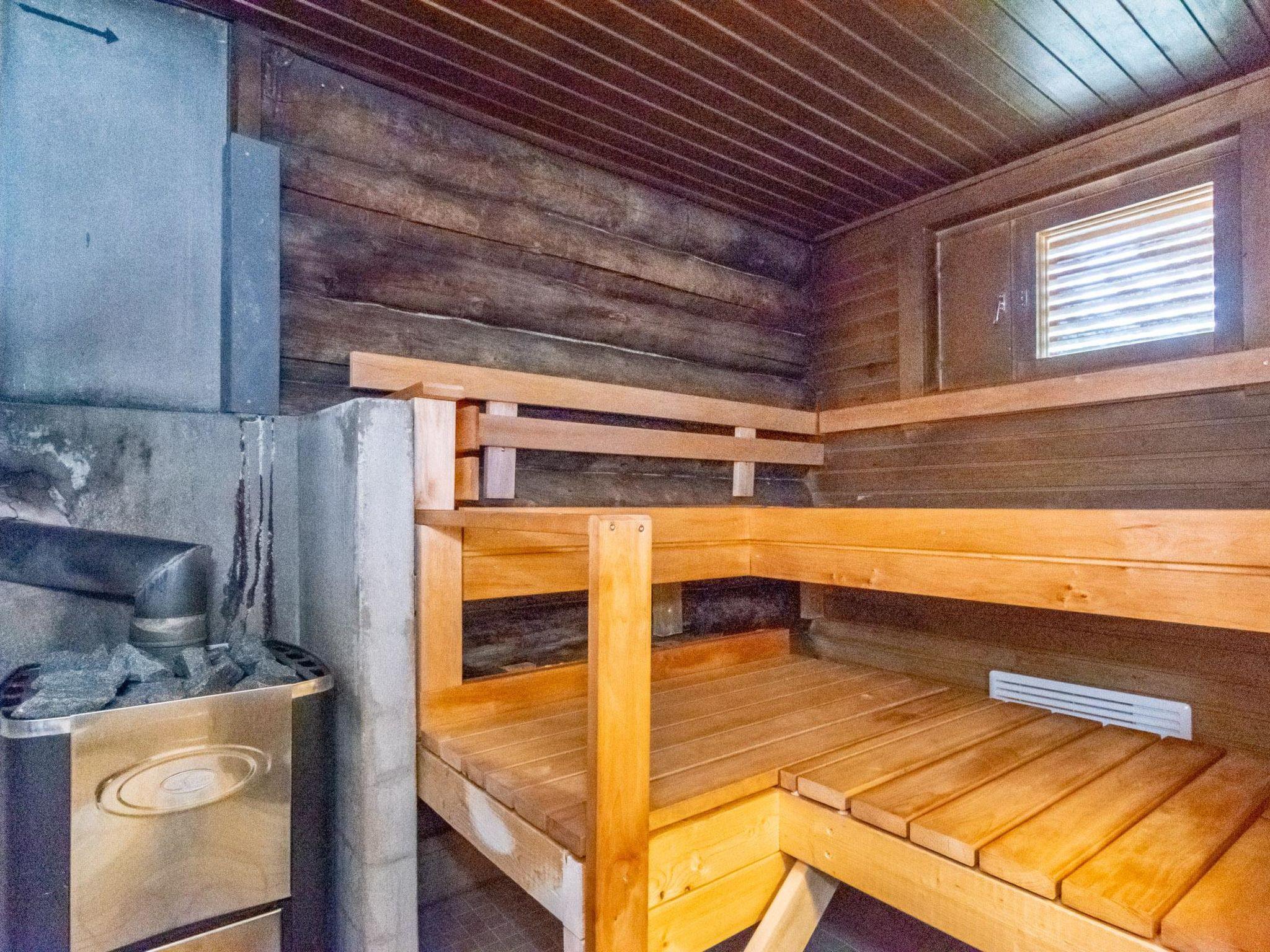 The wood-fired sauna is spacious and the benches are child-friendly. The tiled washroom has two showers and a toilet. There is also a separate toilet.