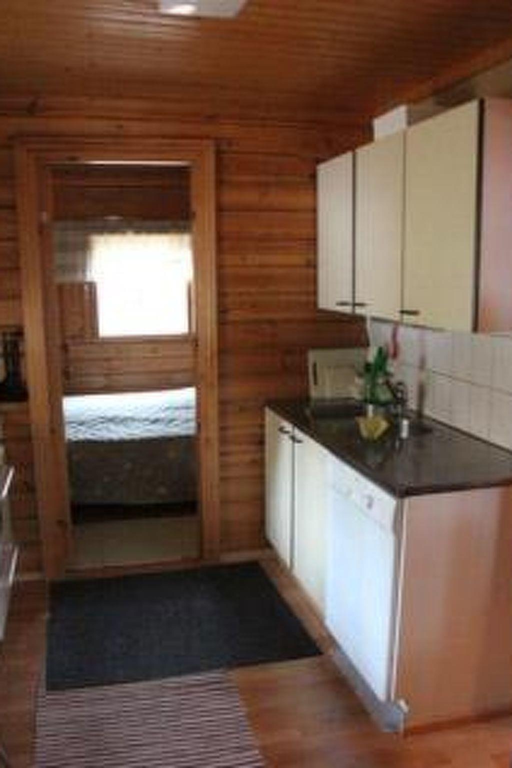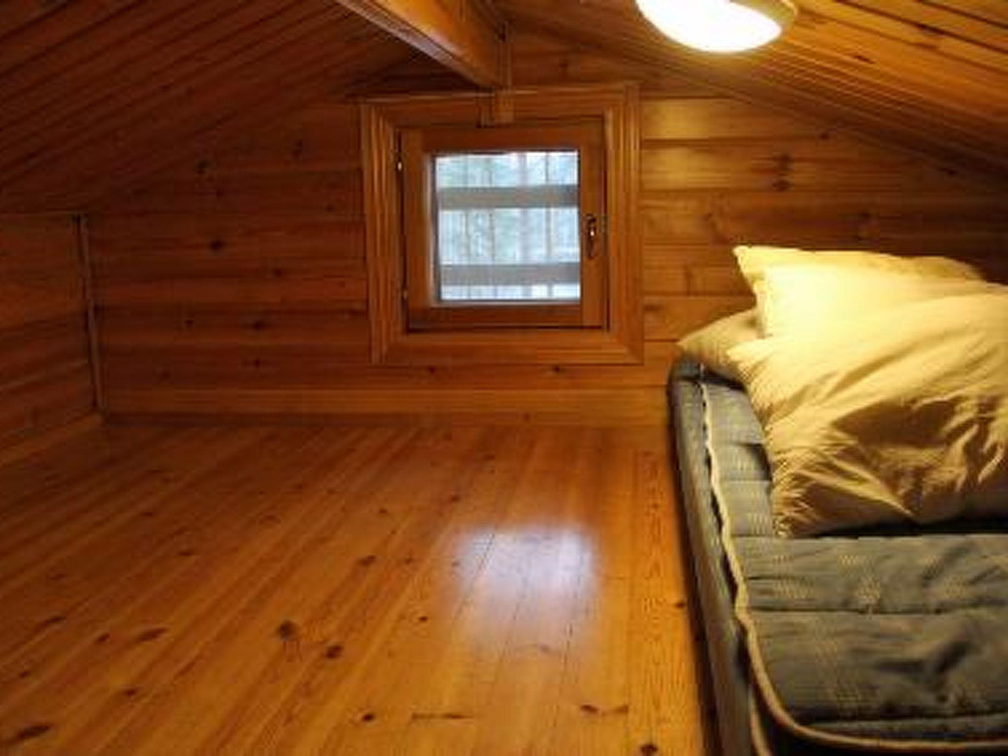 Log cabin 1992, kitchen, living room with convertible sofa bed for two, 2 bedrooms with double bed in each, low sleeping loft with 2 mattresses, dressing room, washroom, sauna, open veranda.