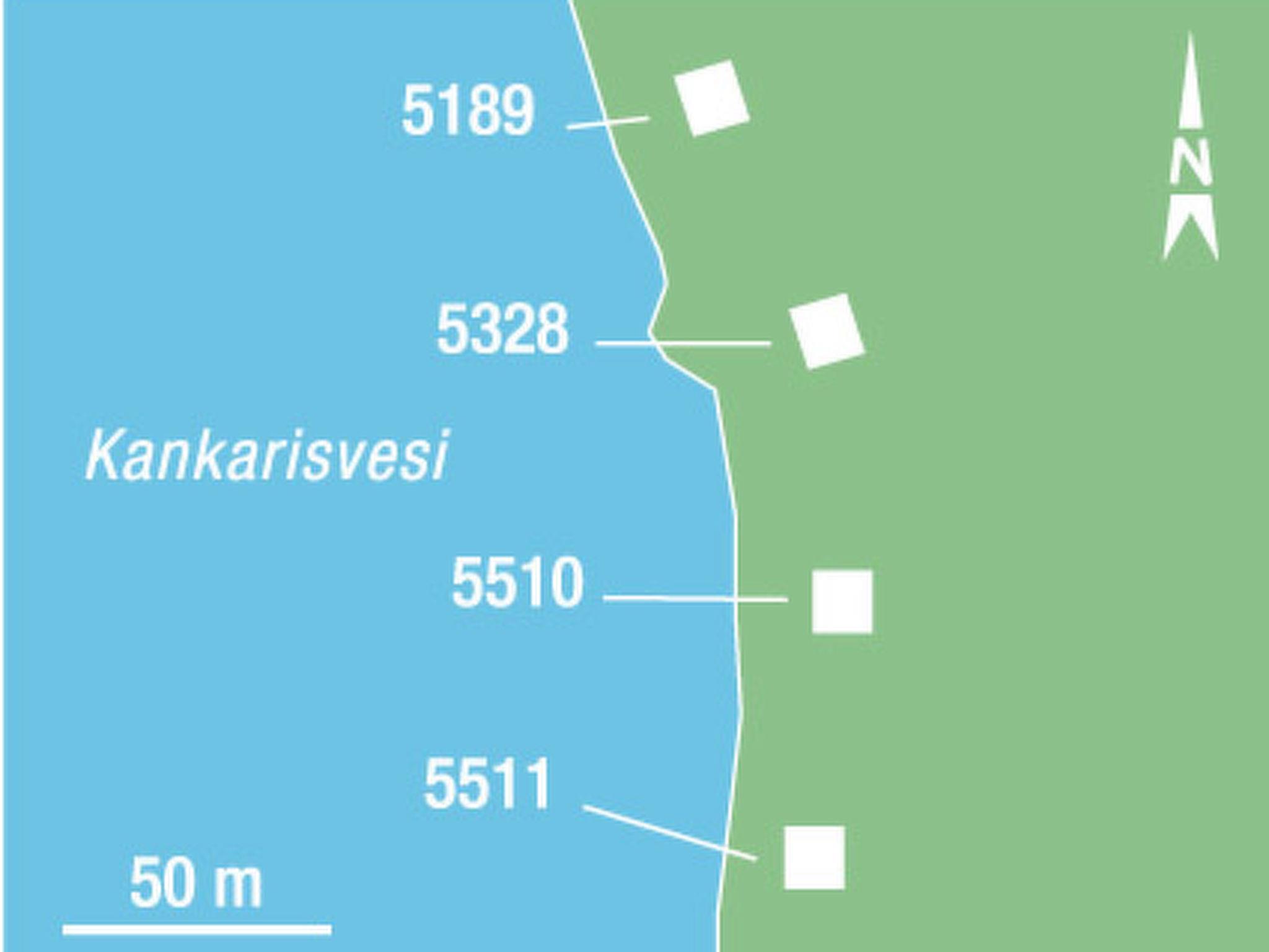 240 km north of Helsinki. Lake Kankarisvesi 20 m (length 10 km, breadth 500 m), shallow water, firm sandy bottom, own boat and jetty.