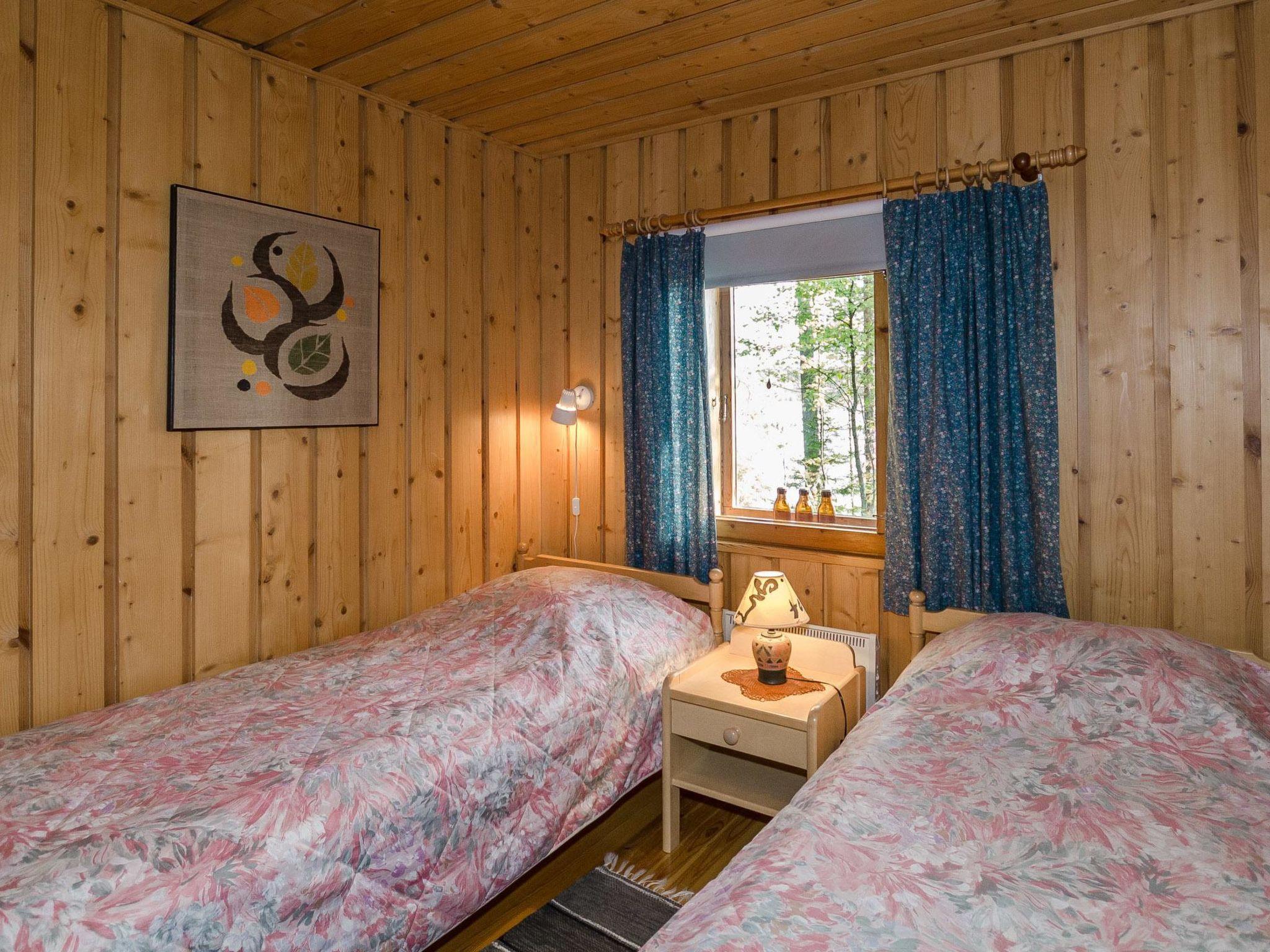 70 km north of Joensuu, Lake Savijärvi (2,535 km2) 20 m, own shore, deep and rocky bottom, own boat and jetty (to swim only from jetty). Log cottage 1997, kitchen-living room, bedroom with double bed, bedroom with two beds, sleeping gallery with four beds, changing room, washing room, sauna (wood heated stove), terrace.