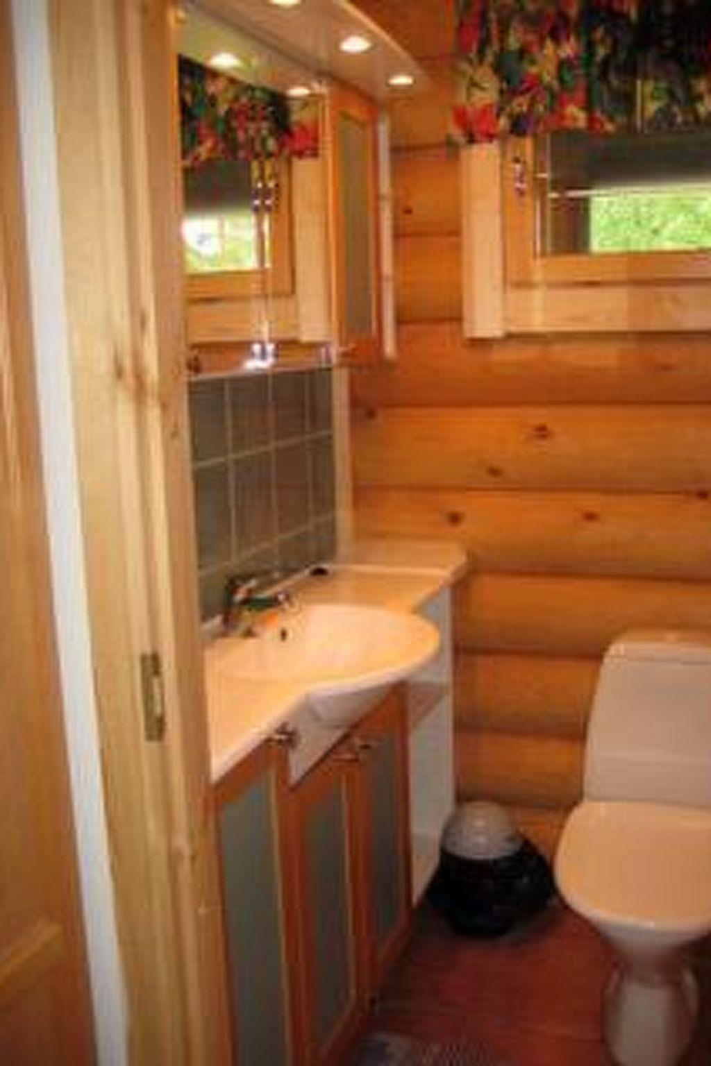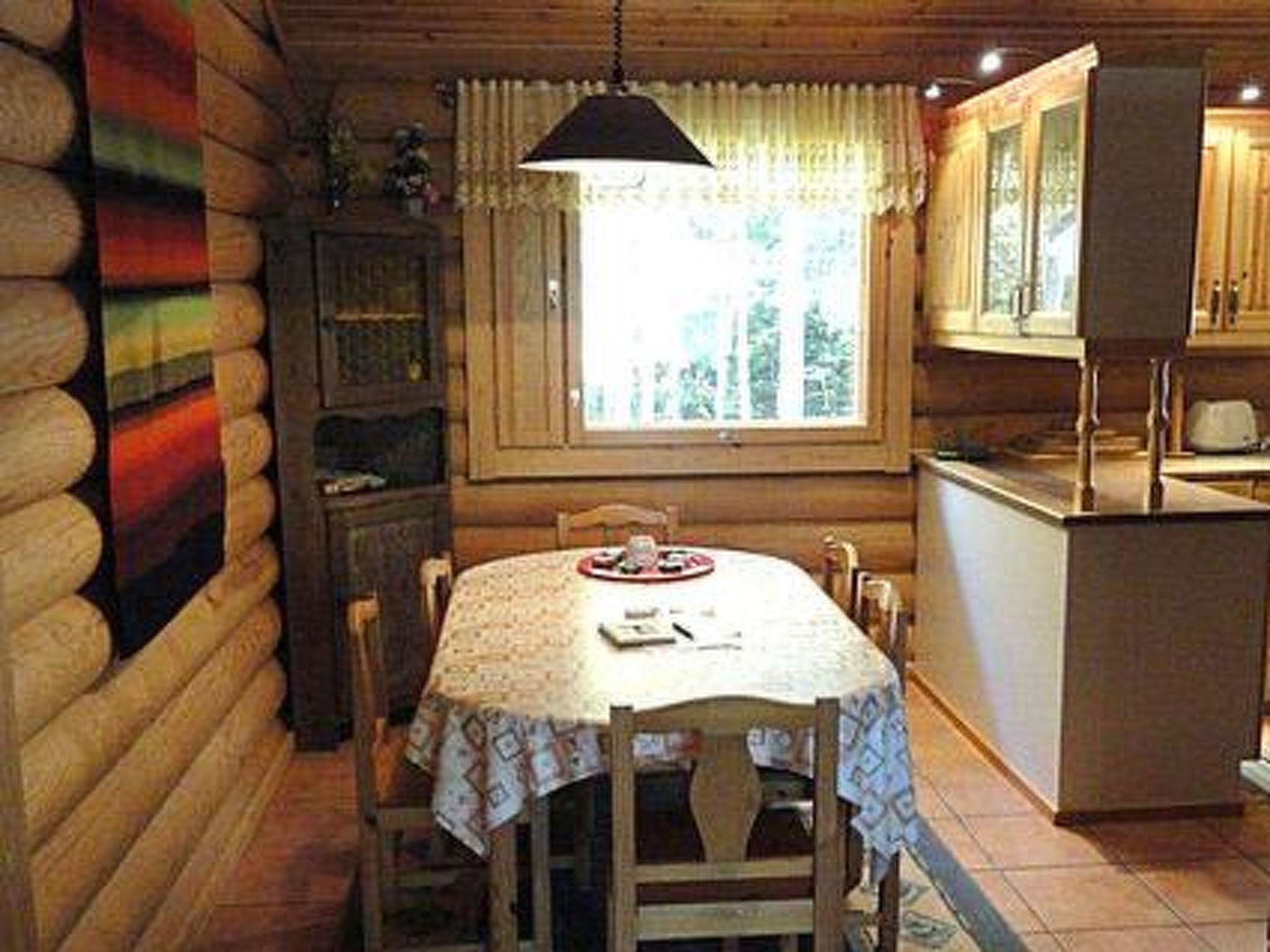 Log chalet 2004, living room/kitchen (wood-burning kitchen stove), living room convertible sofa/bed (heat-storing fireplace and baking oven), bedroom 2 beds, bedroom 2 beds (access to low sleeping loft), shallow sleeping loft with mattresses for 2, sauna (electric stove, washroom 2 showers, dressing room, 2 separate WCs. Building has underfloor heating.