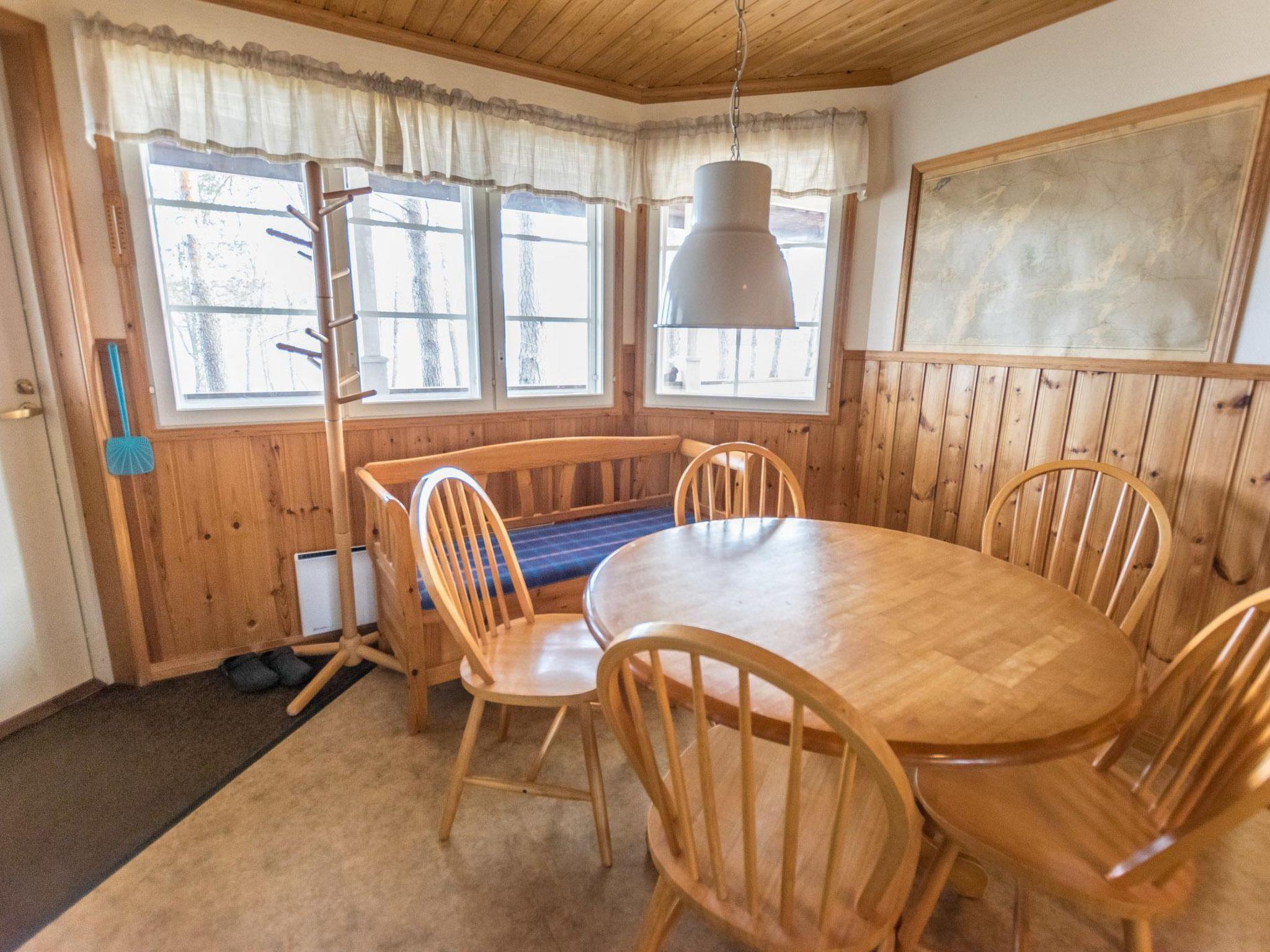 Wooden cabin 1999, living room/kitchen, bedroom with twinbed 120 cm, sleeping alcove with bunk bed, upstairs bedroom 1 bed (120 cm wide), open balcony with twin bed (160 cm).
