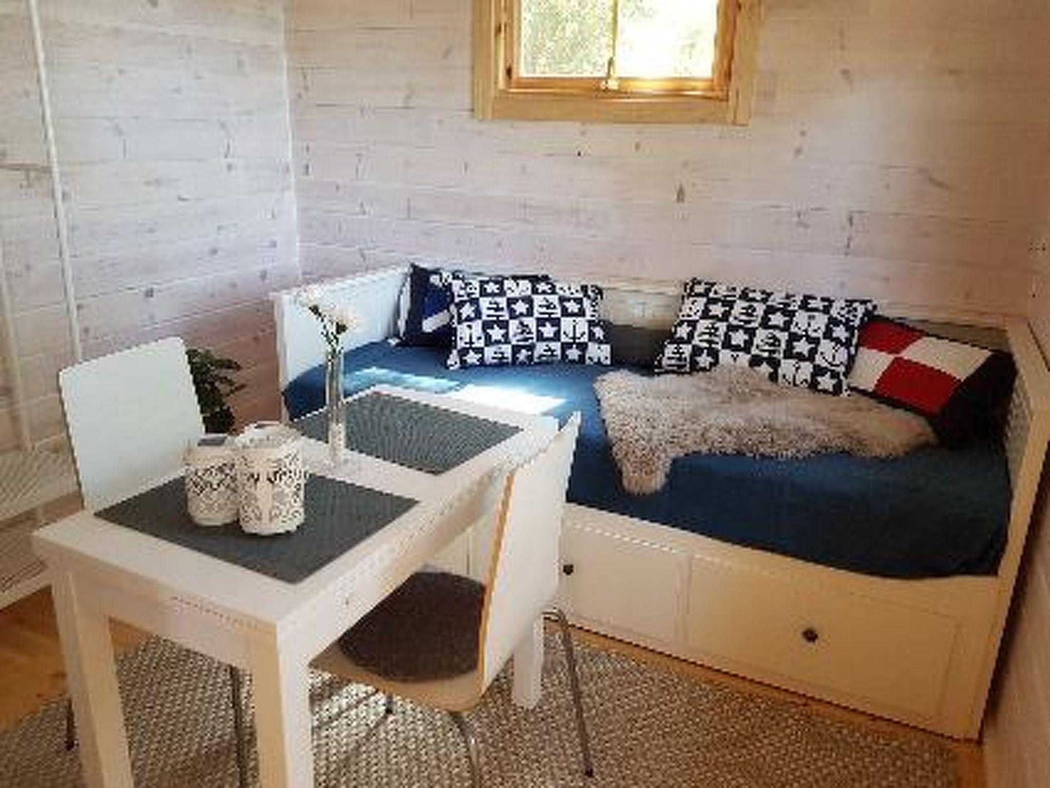 At the beach sauna, with wood-burning stove. Dressing room (sofa bed for 2). There is electric radiator for heating and electric light in the dressing room (by extension lead from the main building).