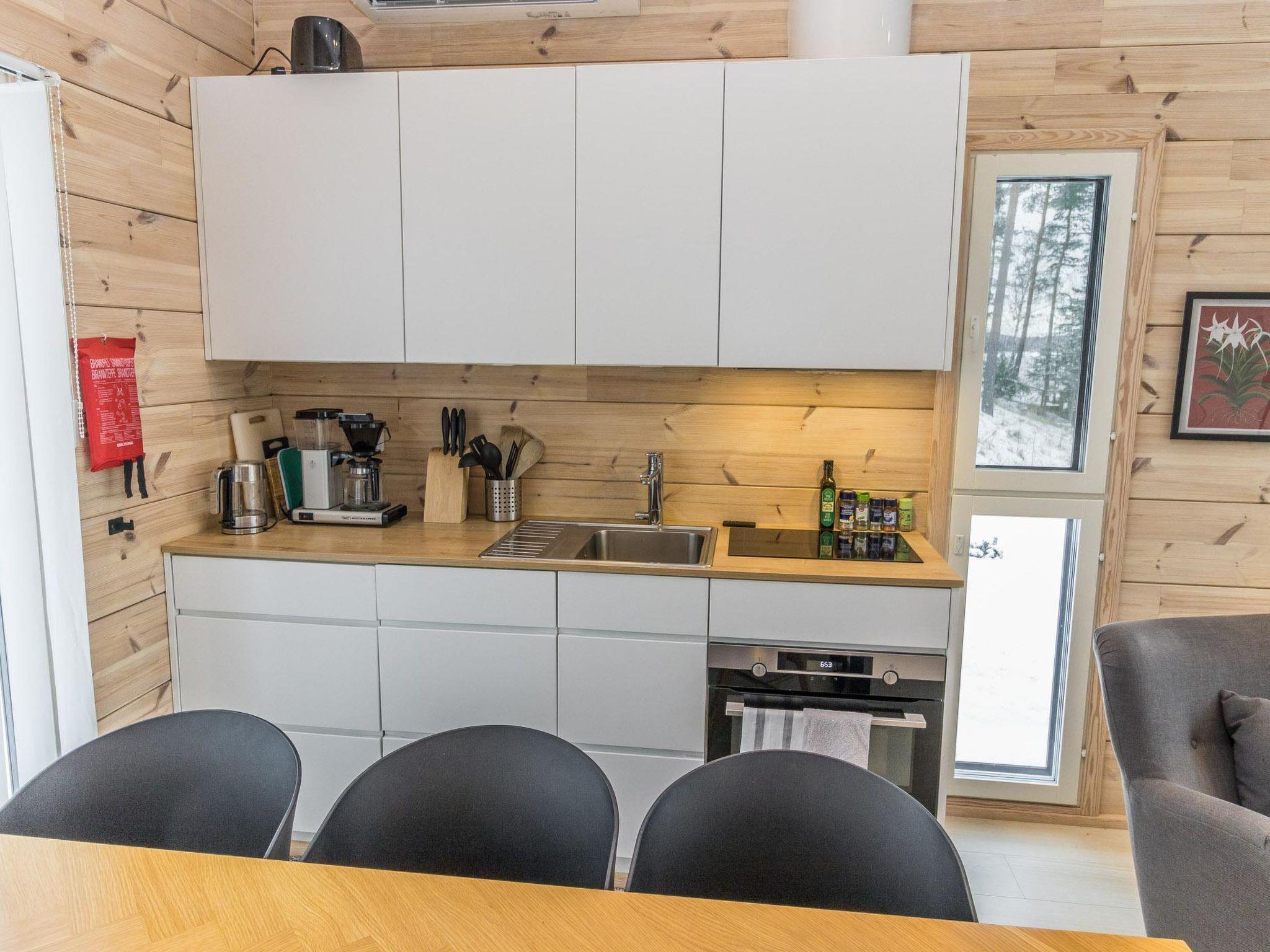 In winter, you can enjoy ice swimming. Excellent fishing waters begin right from the shore. The owner also rents out the adjacent cabin, Villa Varis (17507).