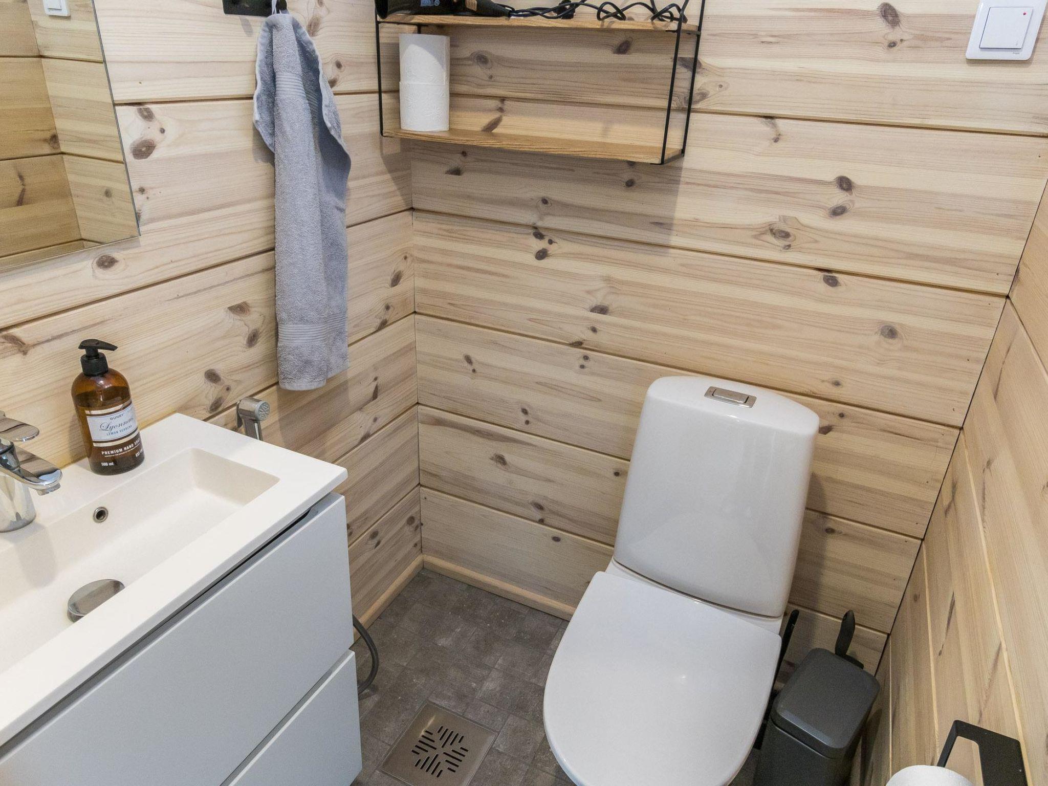 The cabin includes a living room/kitchen, a separate WC, and a bedroom with a double bed on the ground floor. The loft has another double bed and two additional single beds. You can enjoy spectacular views directly to the sea from the benches of the electric sauna (instant ready sauna stove). The washroom has a shower and a small dressing room. The sun shines on the cabin from morning to evening, and the spacious terrace is perfect for admiring sunsets and grilling.