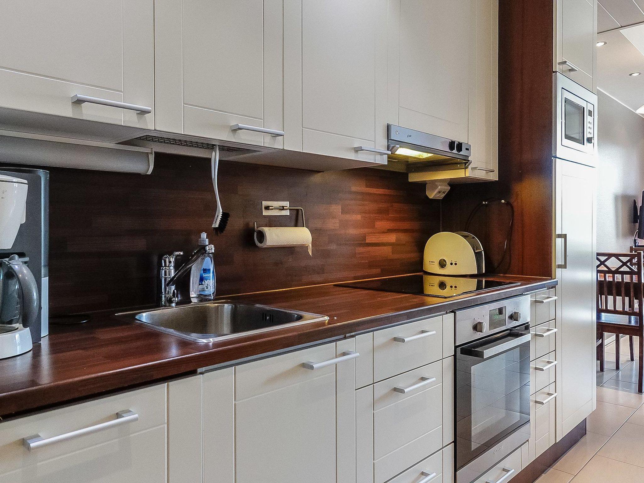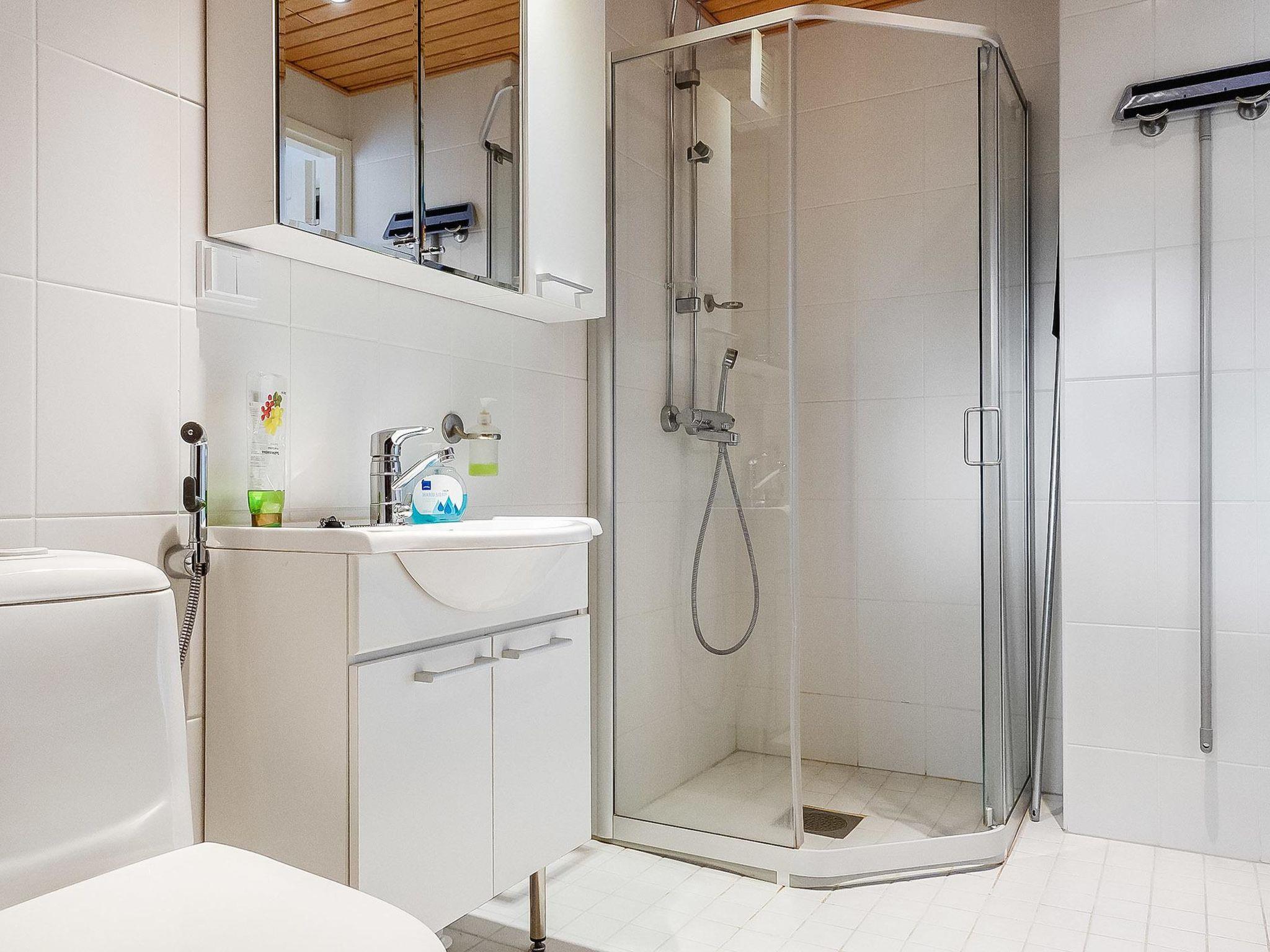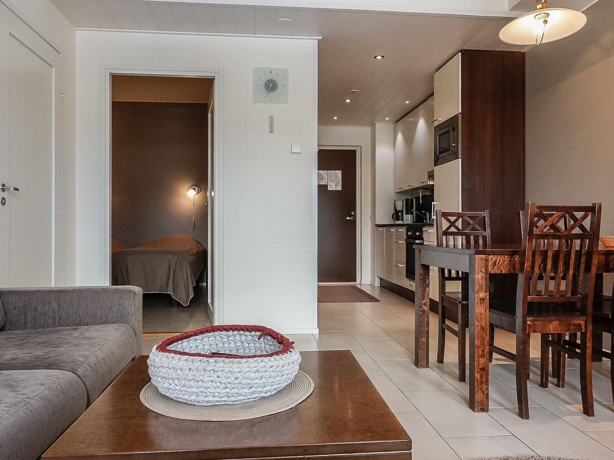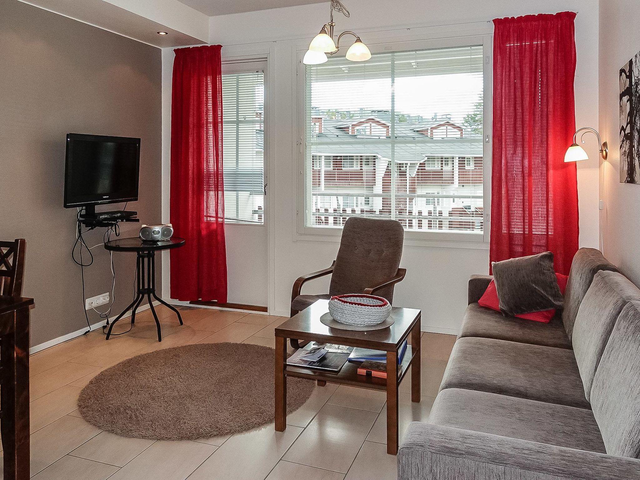 Living room/kitchen with convertible sofa/bed, 1 bedroom with 2 beds, sauna (electric stove), washroom/WC. House also has washing machine, spin drier, heated ski care room; apartment has its own lockable storage locker.