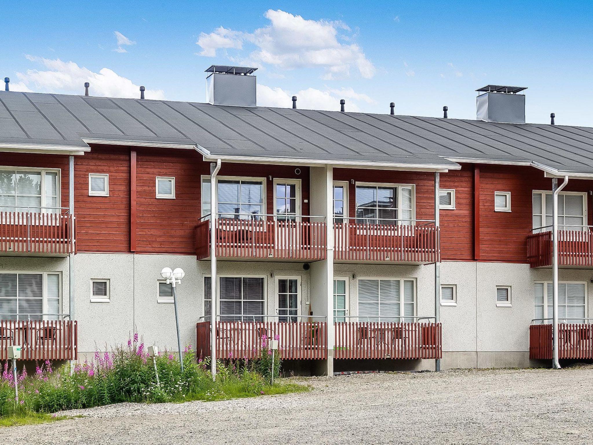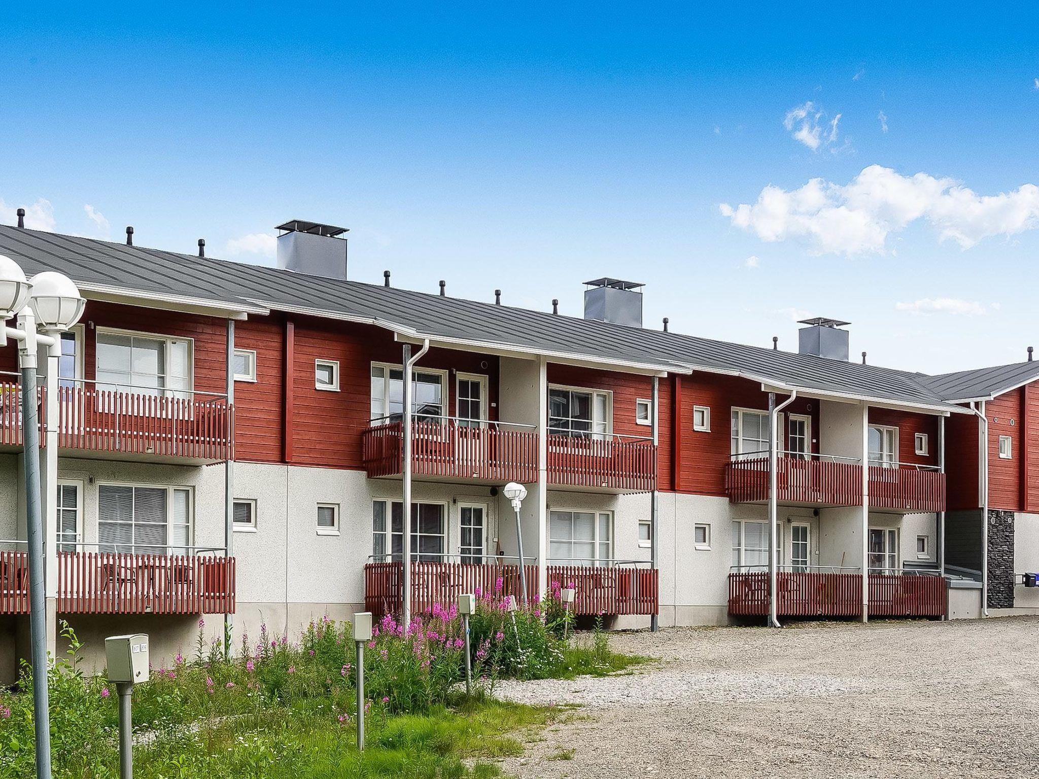 In central part of Levi holiday resort, wood and stone end apartment on one level on second floor of apartment hotel built 2012.