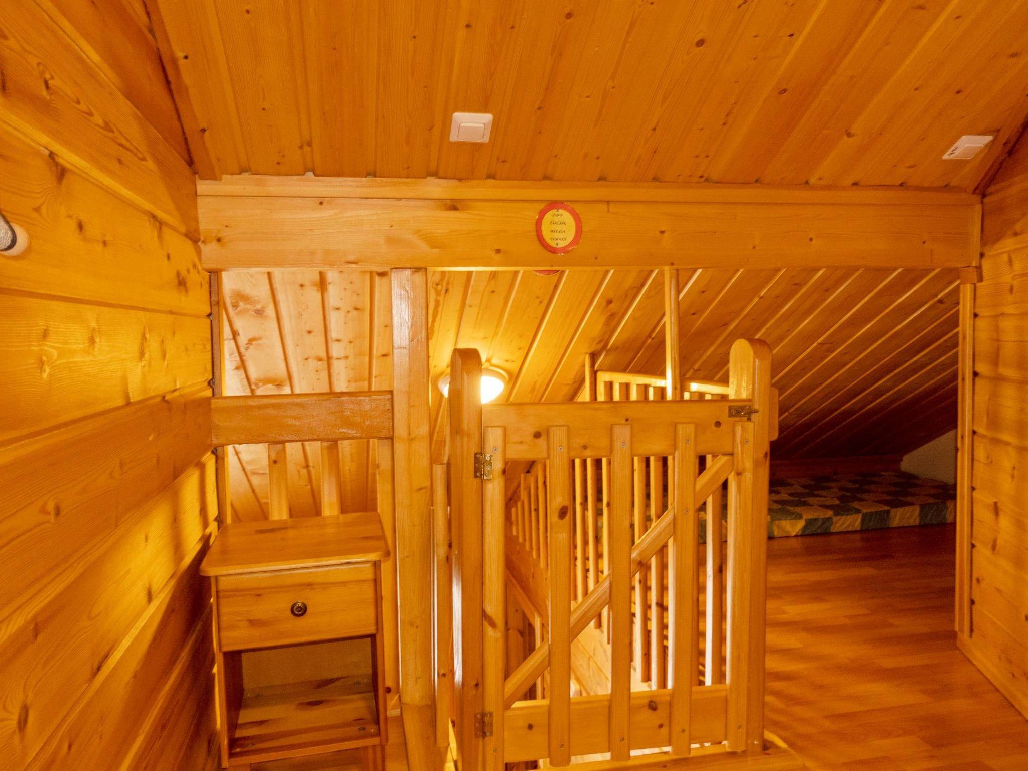 Two storey apartment; on the ground floor kitchen-living room, bedroom with 2 single beds, sauna (electric stove), shower room / wc. Upstairs bedroom with 2 single beds, one bedroom with one bed (width 120 cm) Note! This bedroom doesn't have a door at all, a loft with 2 mattresses, balcony.