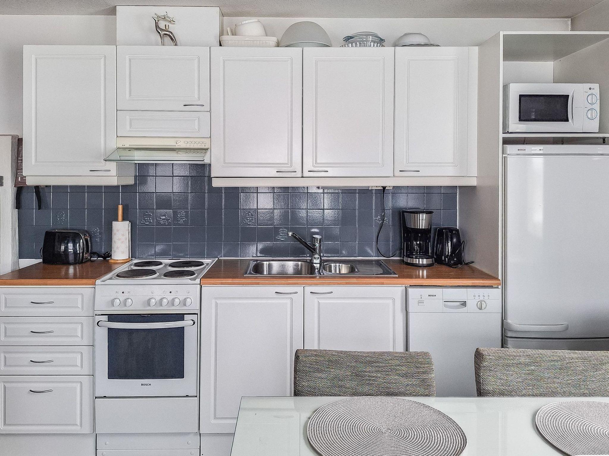 Apartment has 2 cable TVs (one in upstairs bedroom), 100 M broadband internet connection and a ski waxing bench (to be used on the balcony). Car parking place and 1 heating socket.