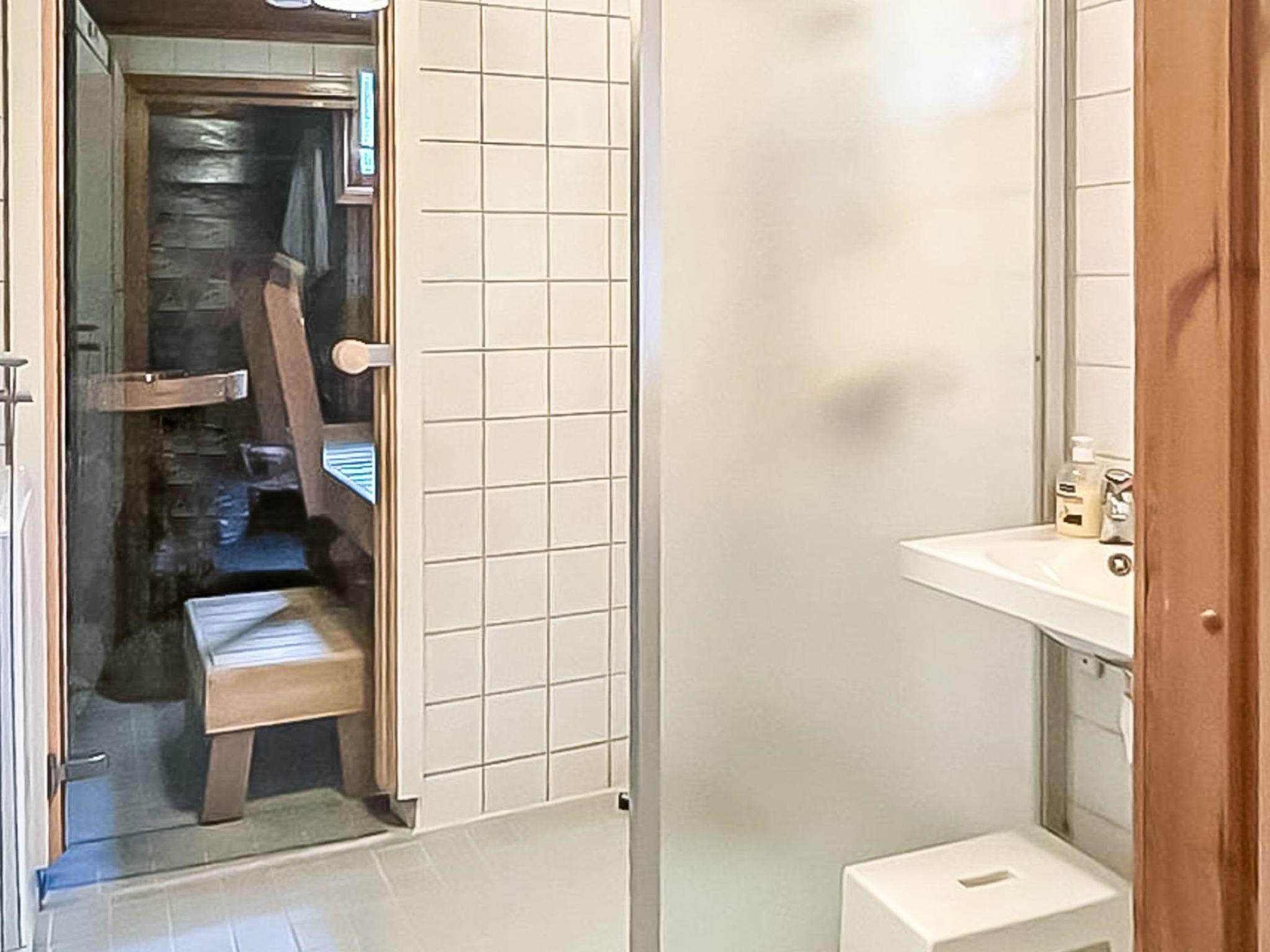 Living room with sofa bed, kitchenette, loft divided to compartments, 2 beds in both departments, sloped ceiling, sauna, washroom, separate WC, open veranda, storeroom.
