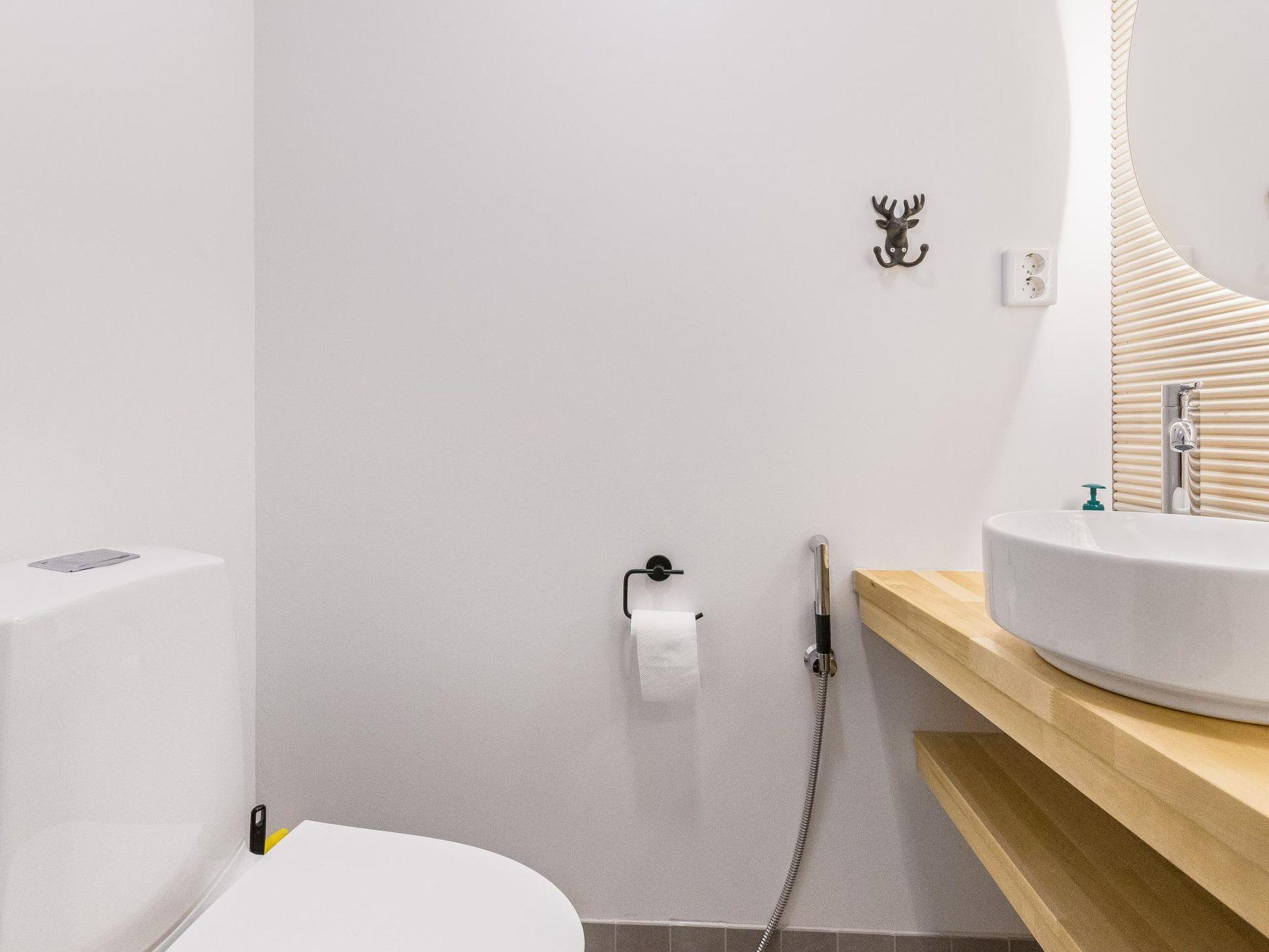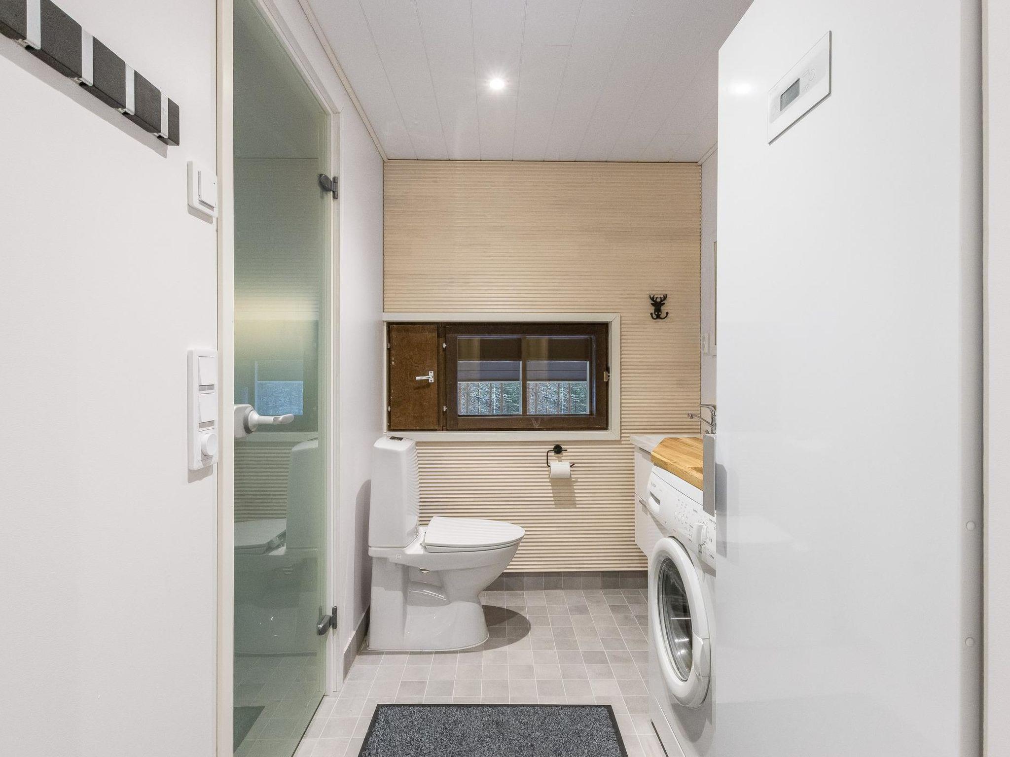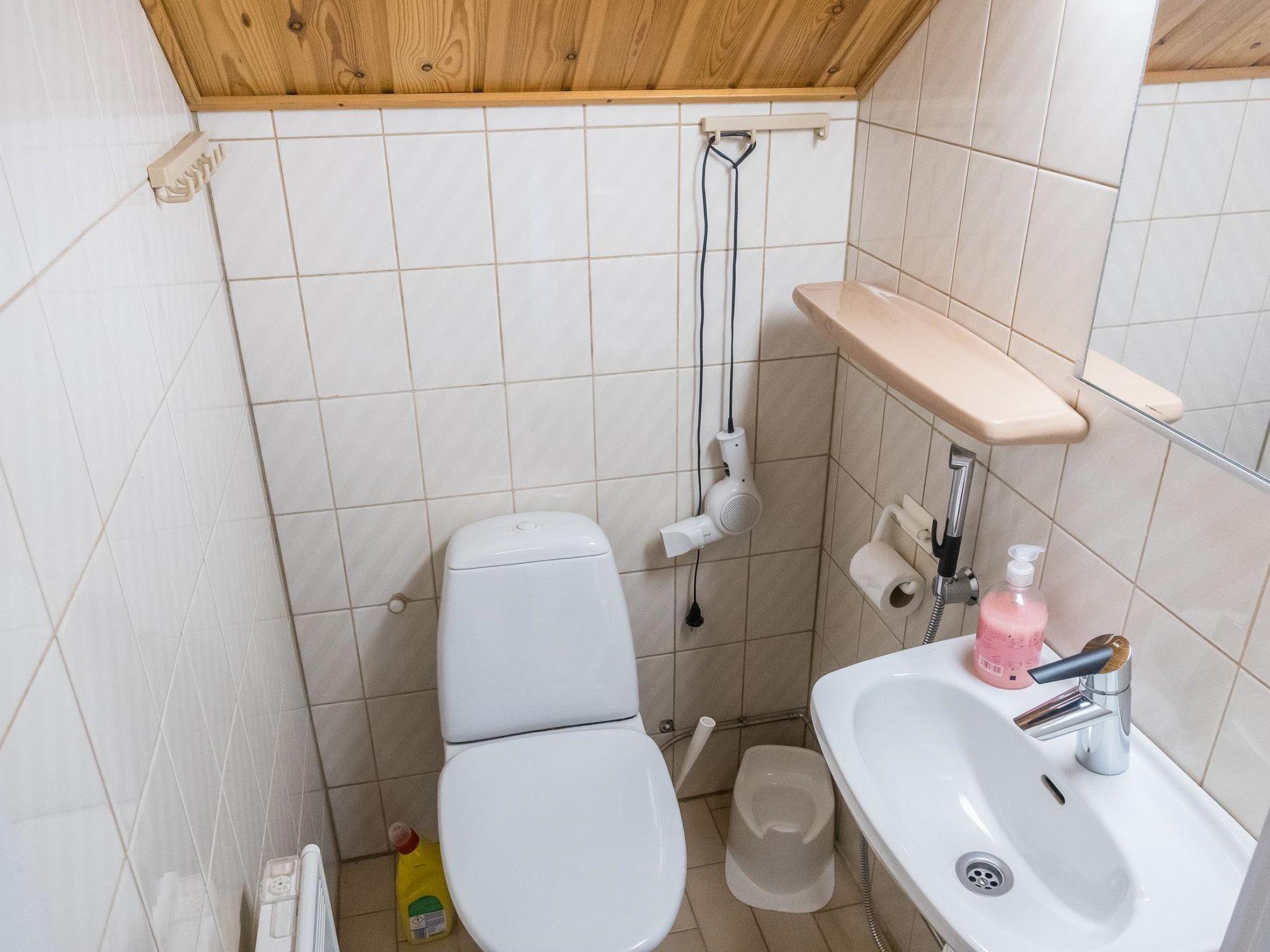 On the ground floor living room/kitchen, bedroom with two beds, another bedroom with double bed (2 beds made into a double bed with common mattress pad). Sauna, washroom and separate toilet, as well as a utility room with a toilet seat.
