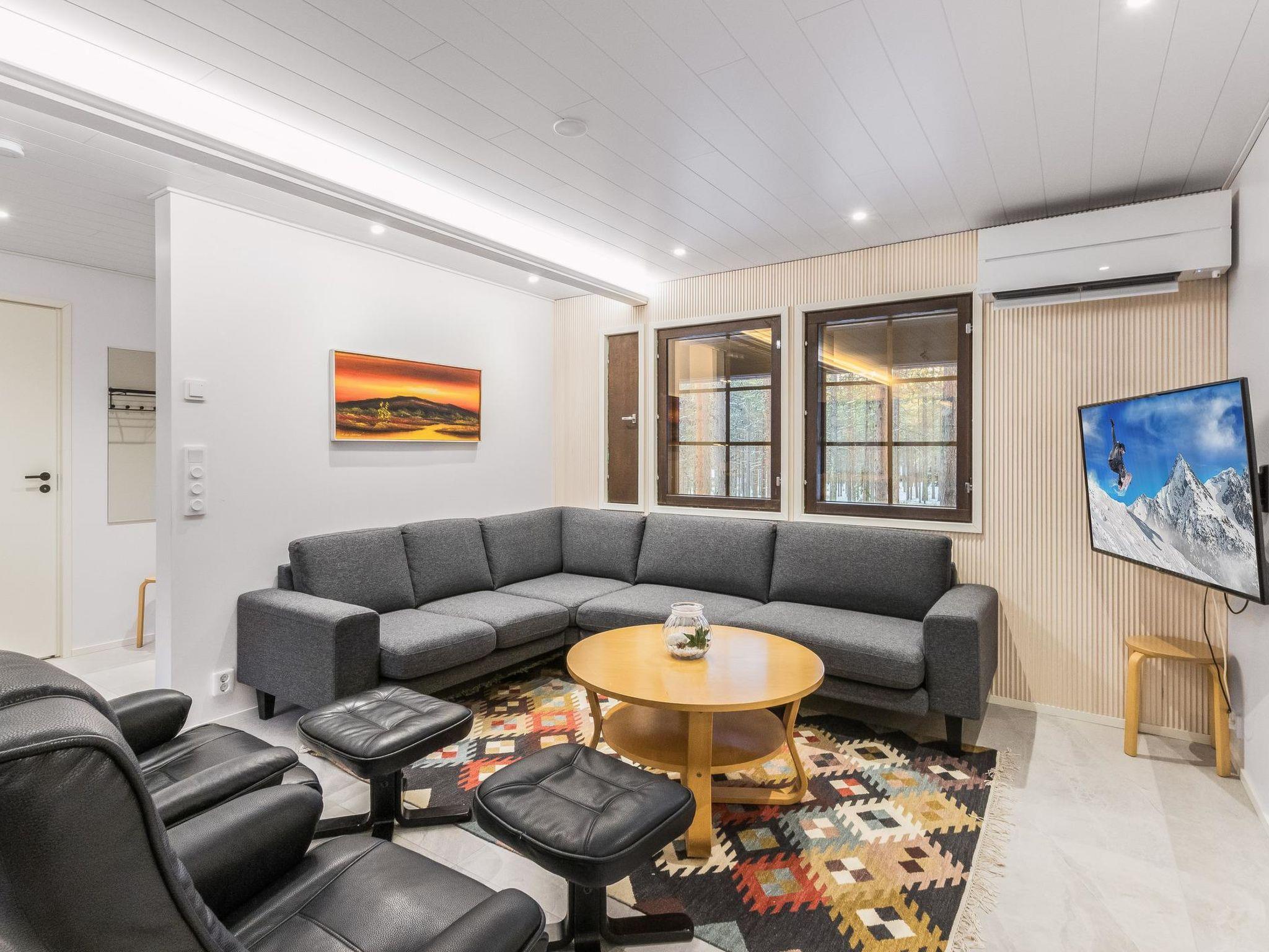 Kevinlevi is a spacious cabin in a peaceful area. An illuminated ski trail runs right next to the house. There is a park forest on the other side of the cabin.