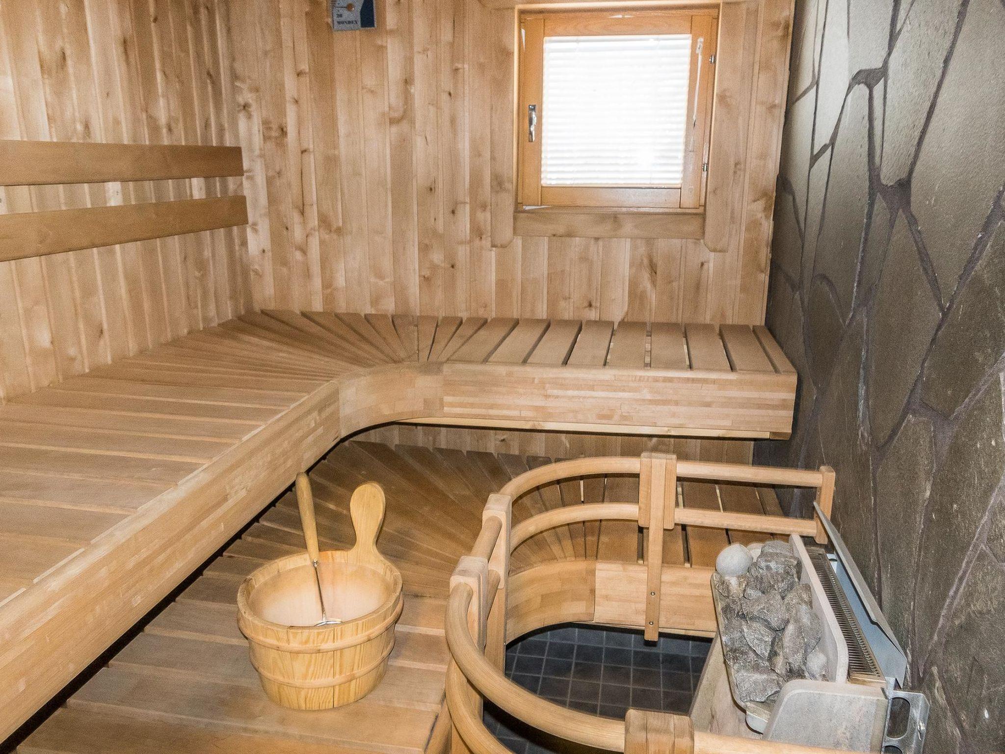 Sauna and washroom and two separate WCs. Potty, hair dryer. Two showers in the washroom and one in the second WC. Access to the terrace from the utility room.