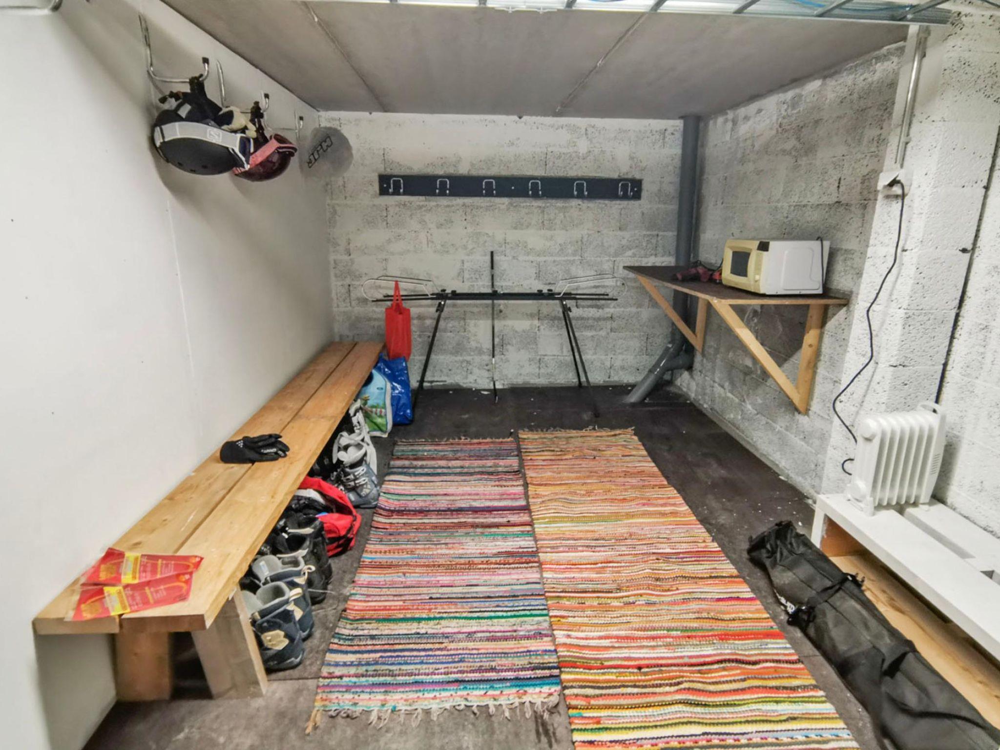 In the basement of the B-apartment, there is a shared ski room (shared with the B-apartment), equipped with a ski waxing bench and a drying cabinet for clothes.