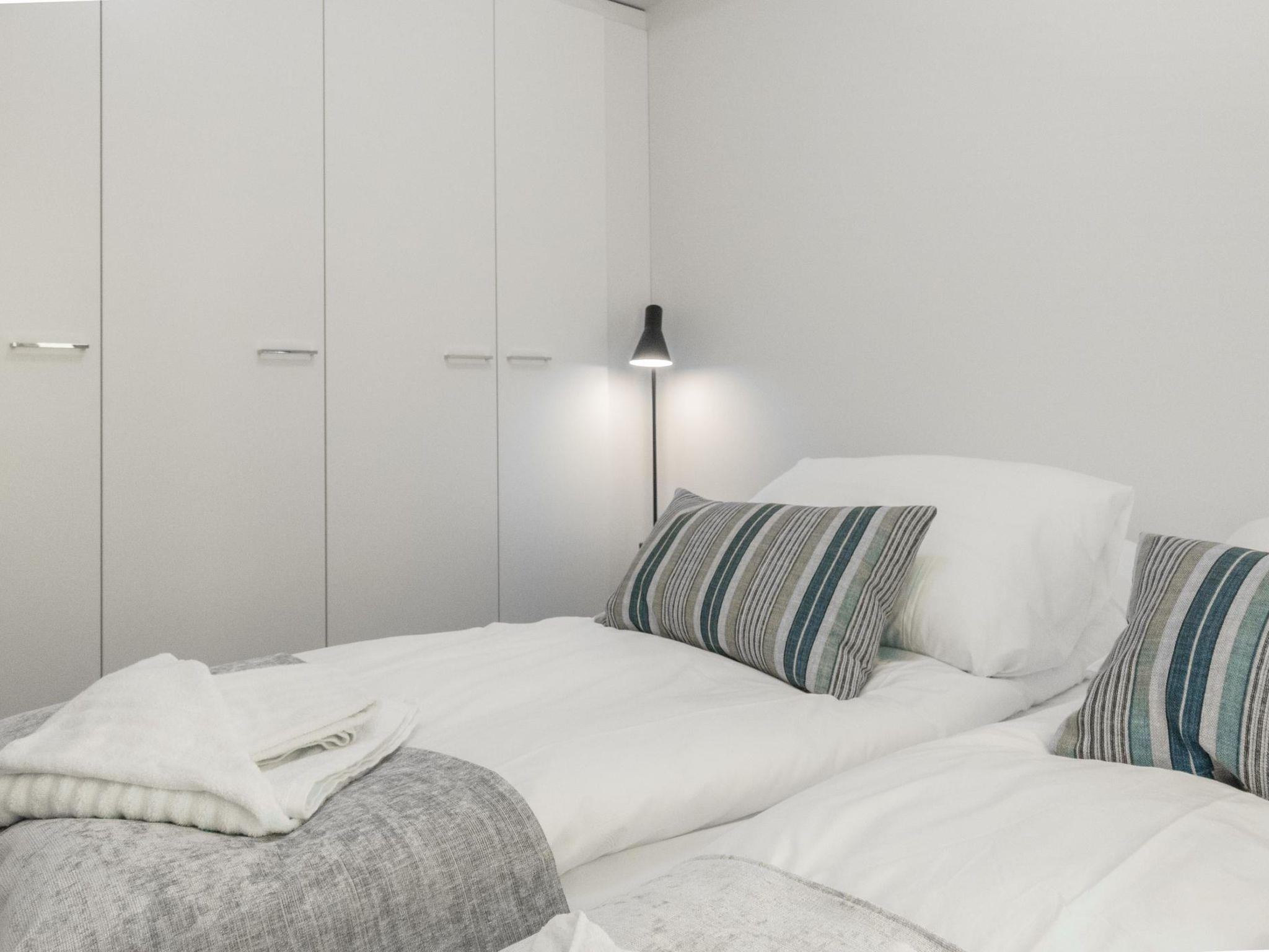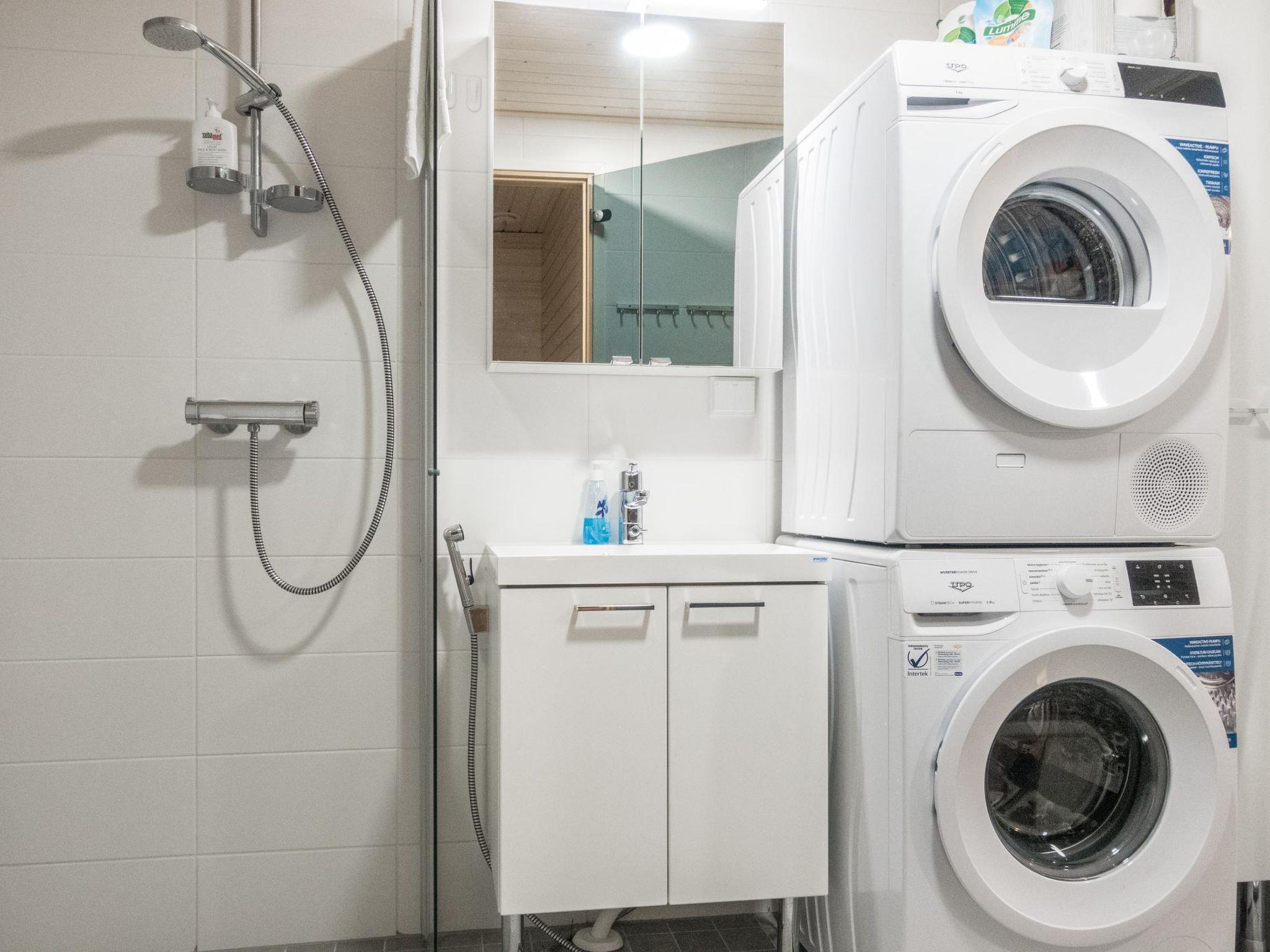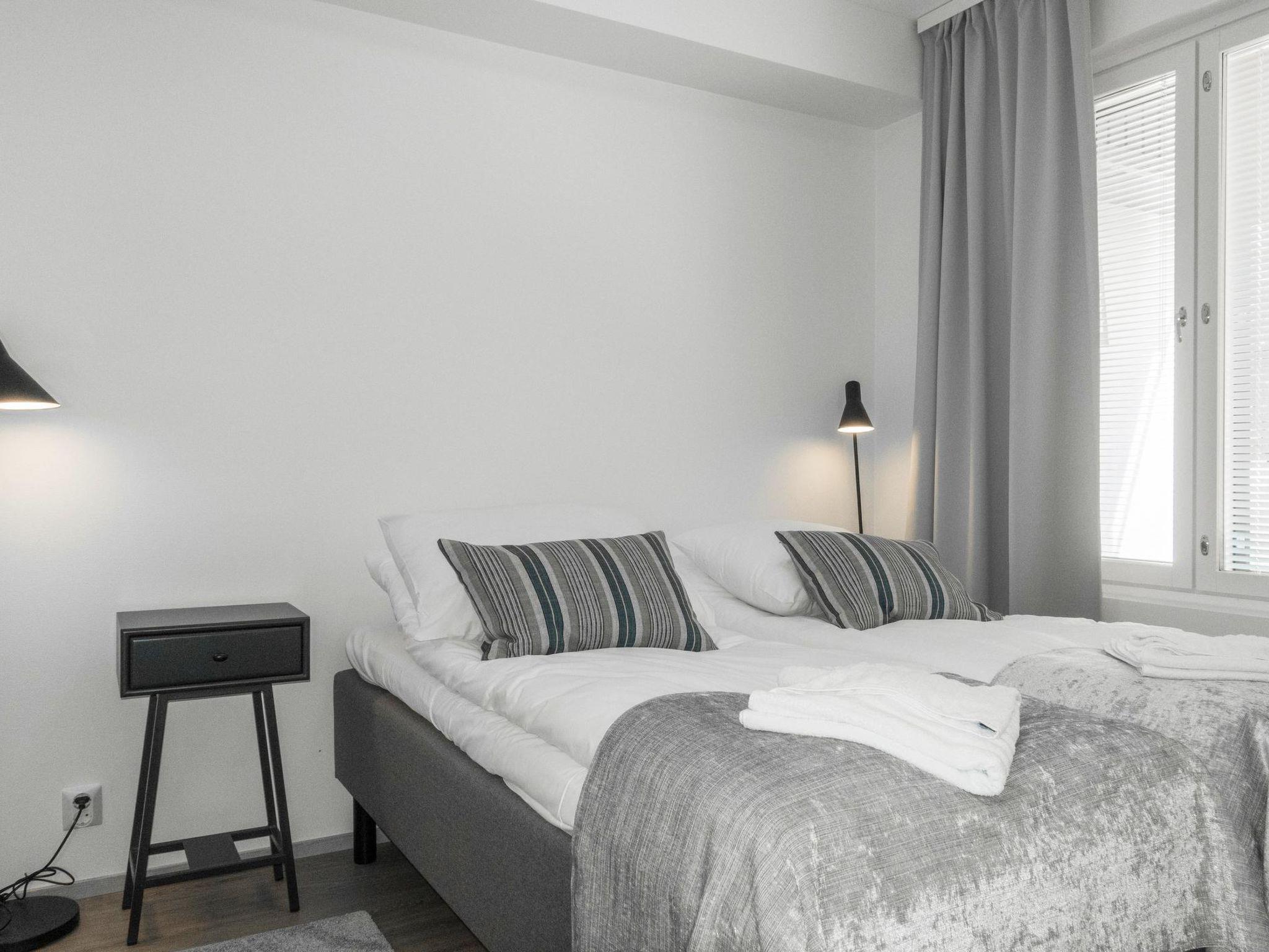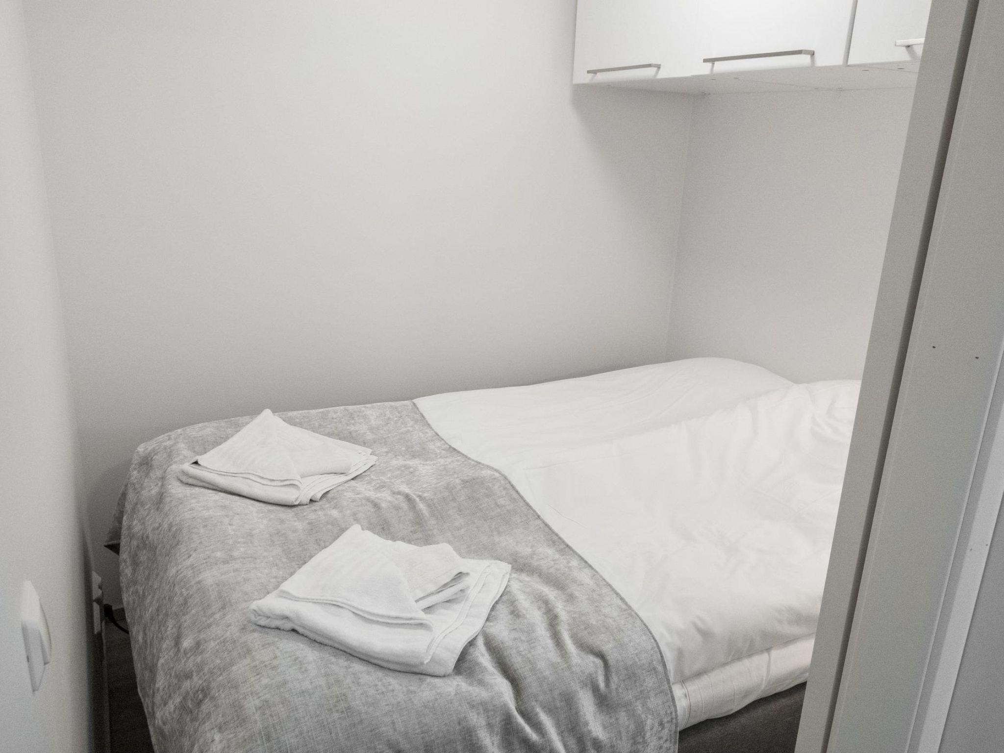 Located in the Levi tourist center in Tieva district. Living room/kitchen, two beds in the bedroom (width 90 cm), beds can be joined or separated, in the another bedroom double bed (width 140 cm), sliding doors in both bedrooms, the smaller room has no window, sauna, washroom/WC, also separate WC and balcony.