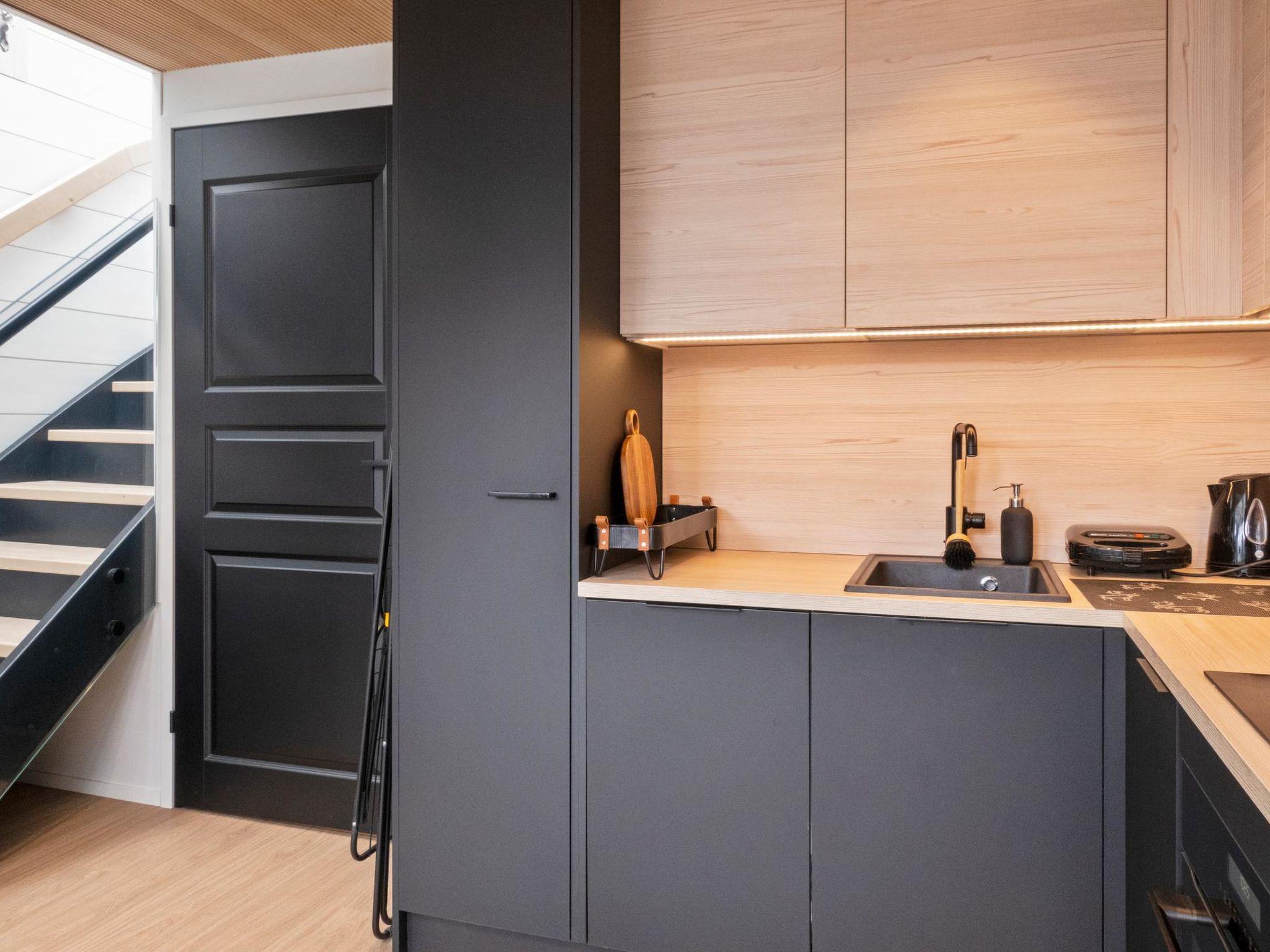 In addition to 160 cm bed wide bed in the loft, the cabin includes one 140 cm wide sofa bed. Floor heating brings additional comfort, and an air source heat pump carries out heating and cooling.