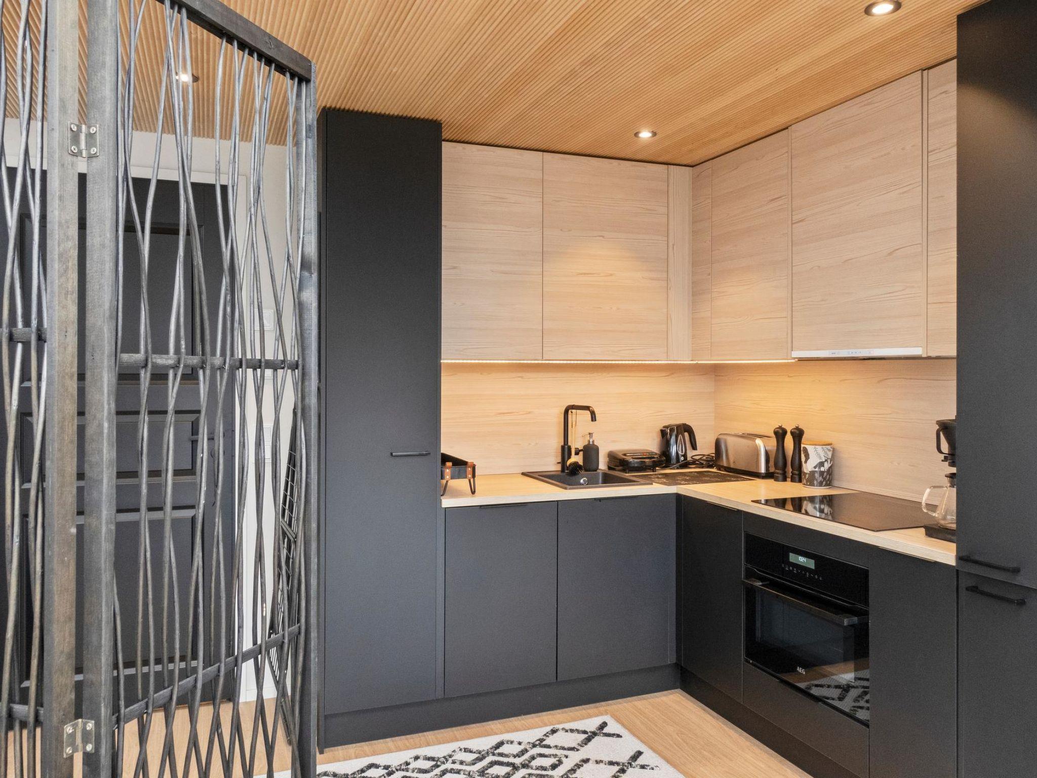 Well-equipped kitchen has comprehensive high-quality tableware, dishwasher and oven/microwave. Wi-Fi, smart flat-screen TV, washing machine, hairdryer, smart tablet, high-quality SONOS-brand audio system, ski maintenance package and parking space with wall outlet are also available.