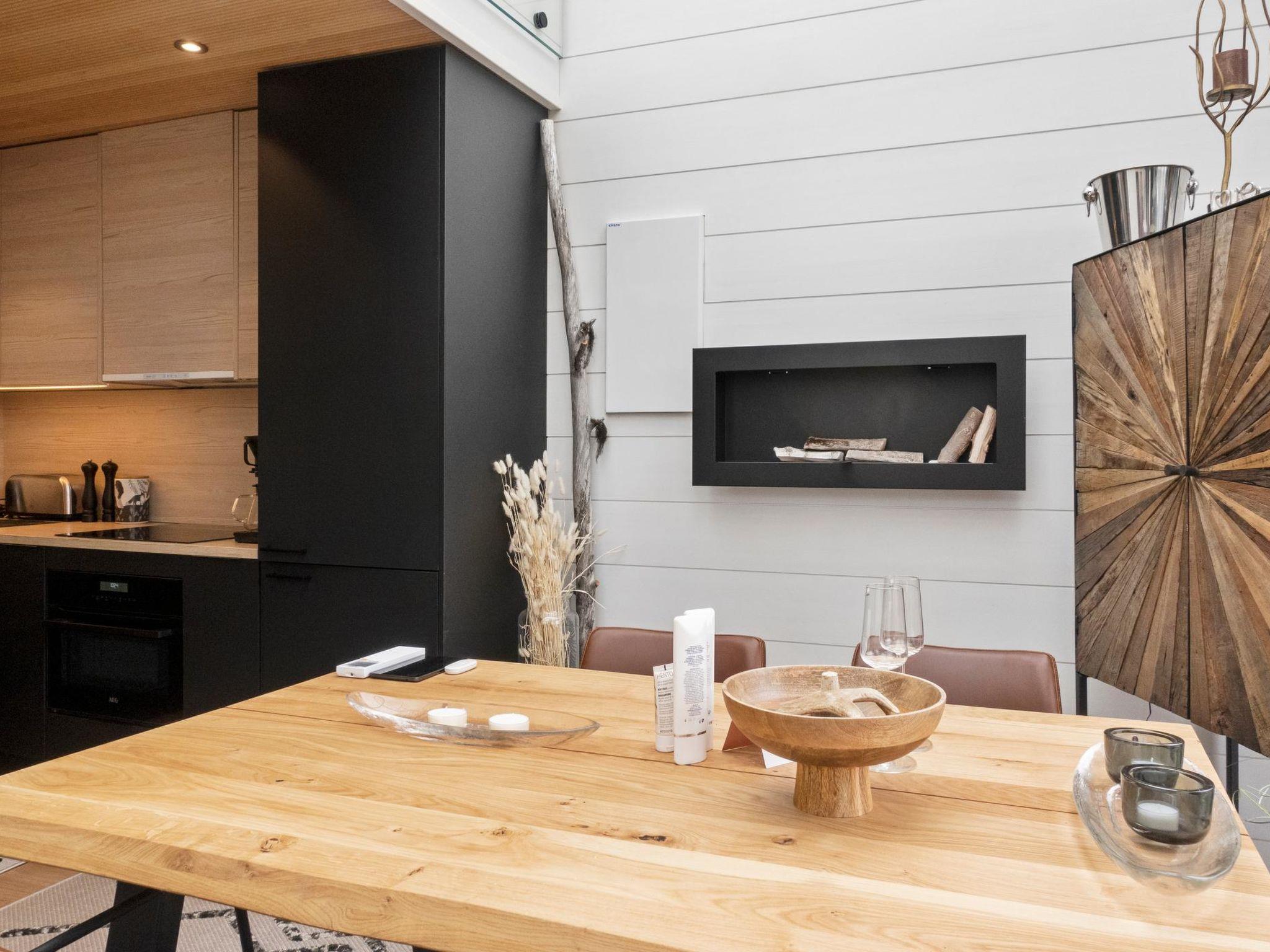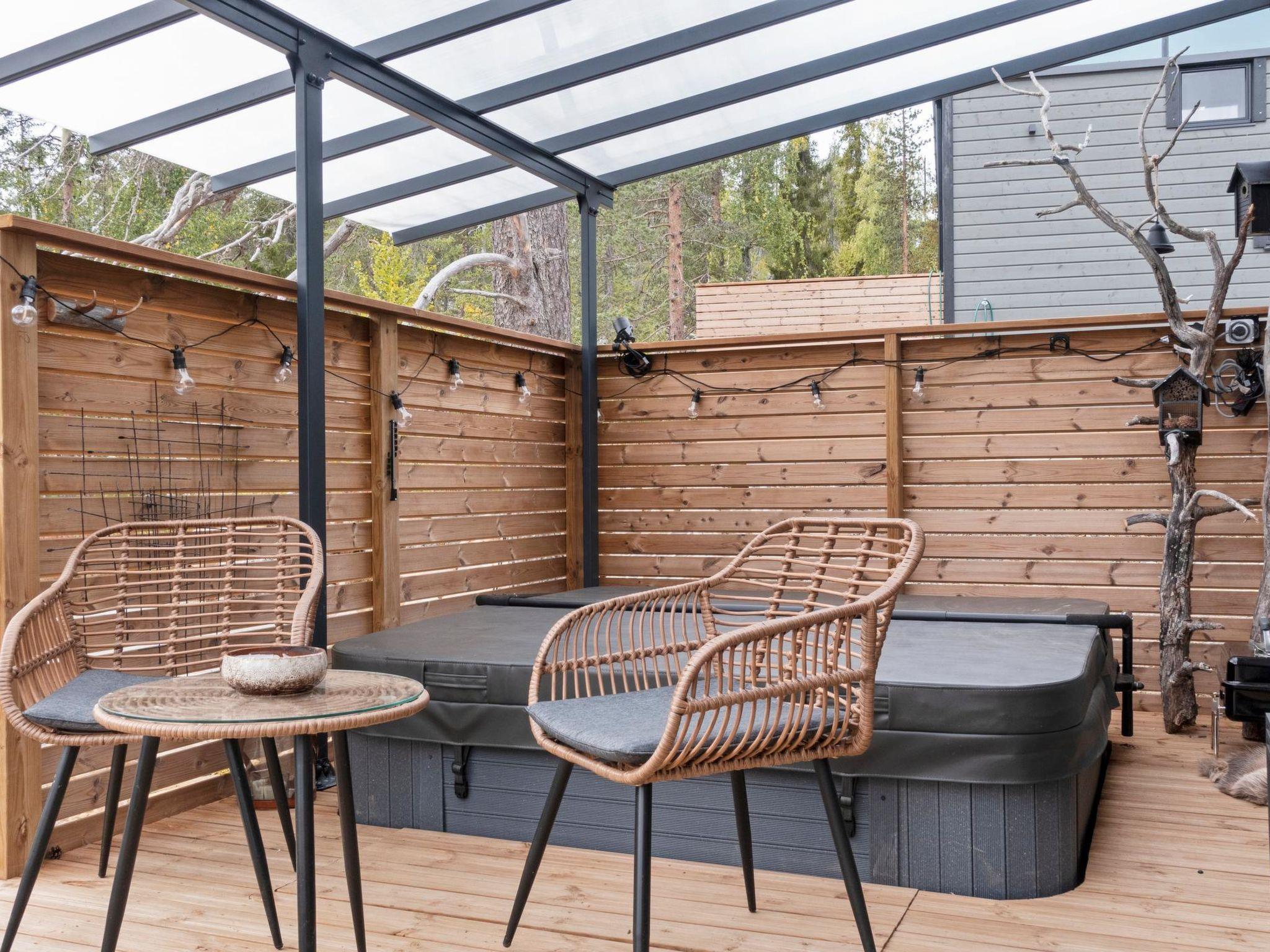 Bio fireplaces in living room and loft and covered terrace with always warm hydro-massage bath brings some luxury to your stay. In addition, iron-made campfire tray and small charcoal grill. The igloo also has an atmospheric sauna.