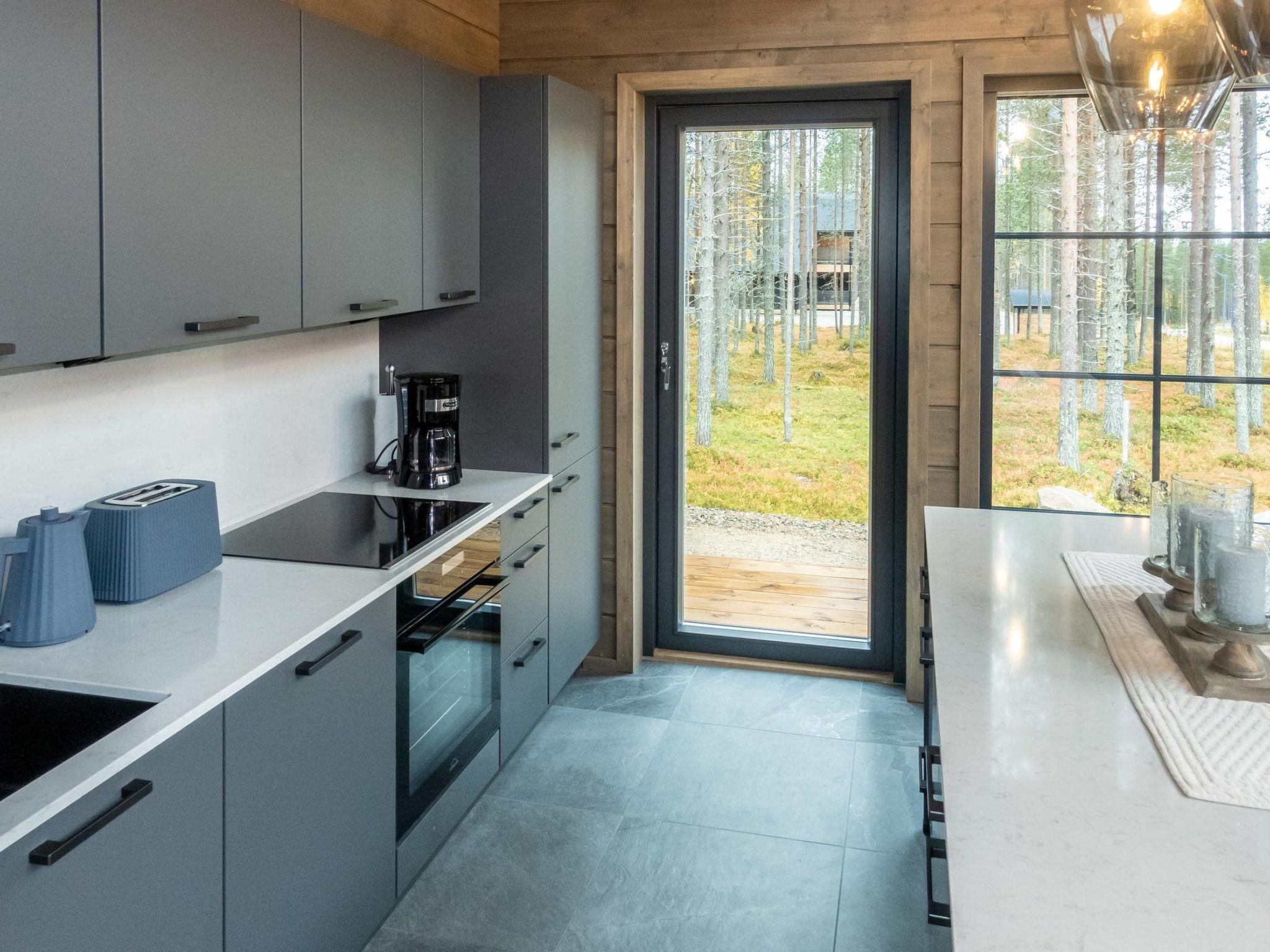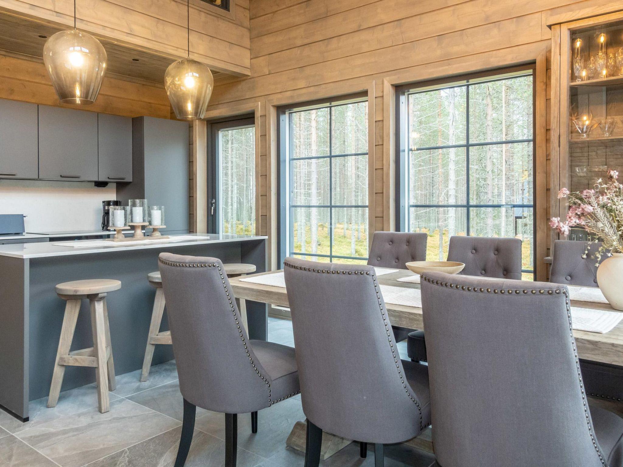 You can enjoy of Levi's fell view from the dining area, as well as from the living room thanks to large windows. From the windows, you can see the gondola and West Point ski lifts and Santa's cabin while you are enjoying of your morning coffee, for example. The bus stop is right near the cabin and the Levi Skibus operates every half hour between the ski slopes and the center of Levi.