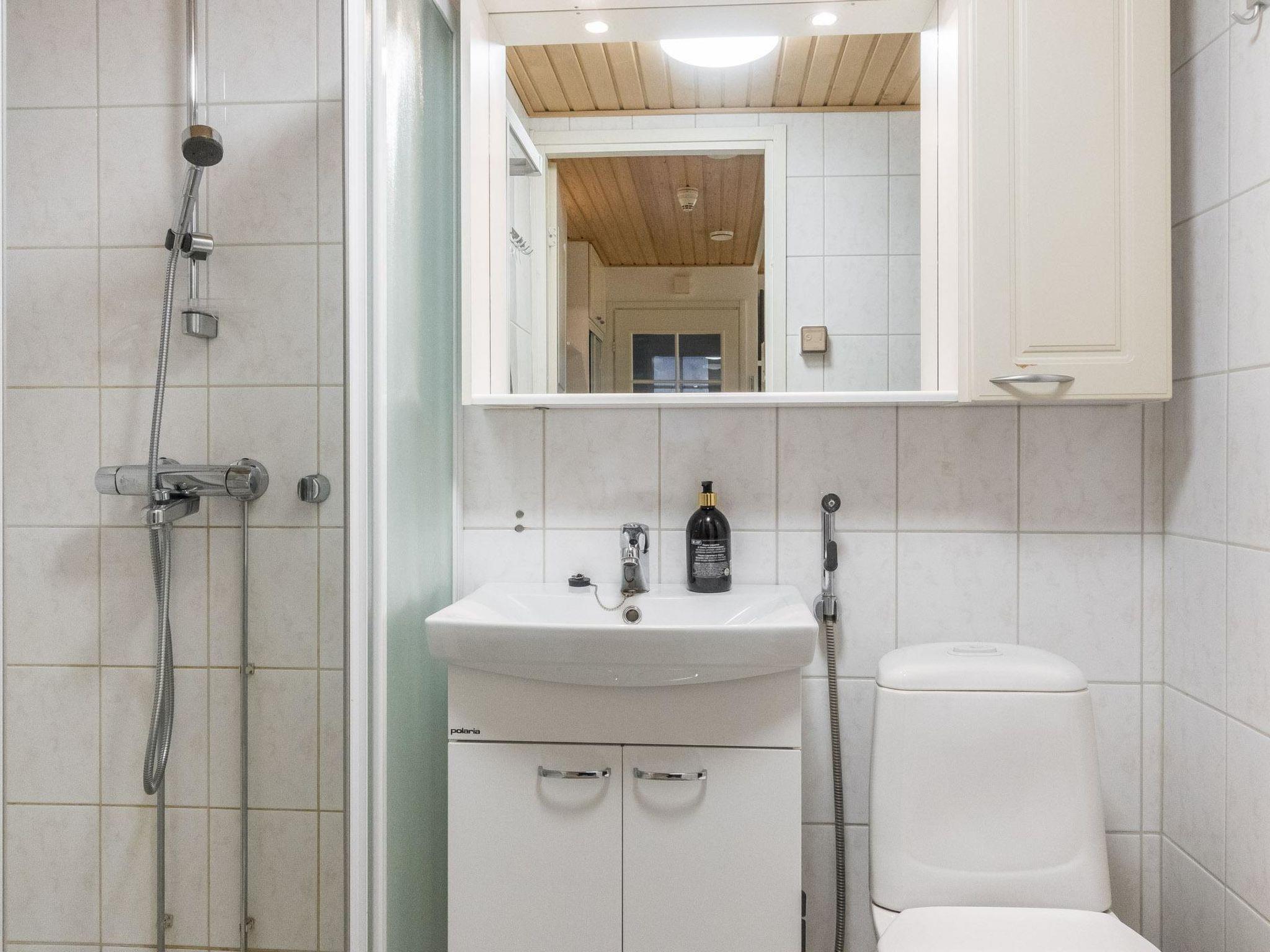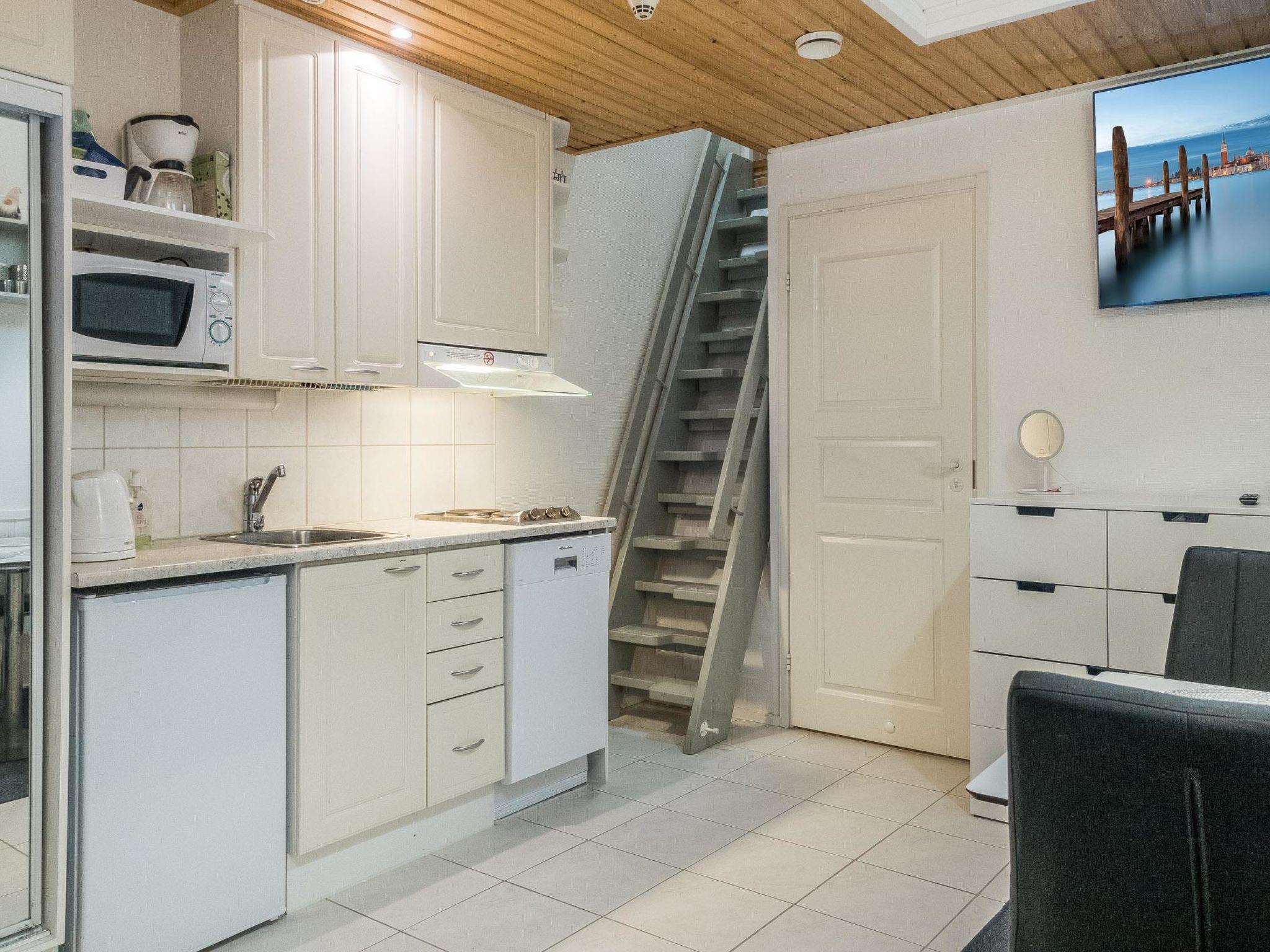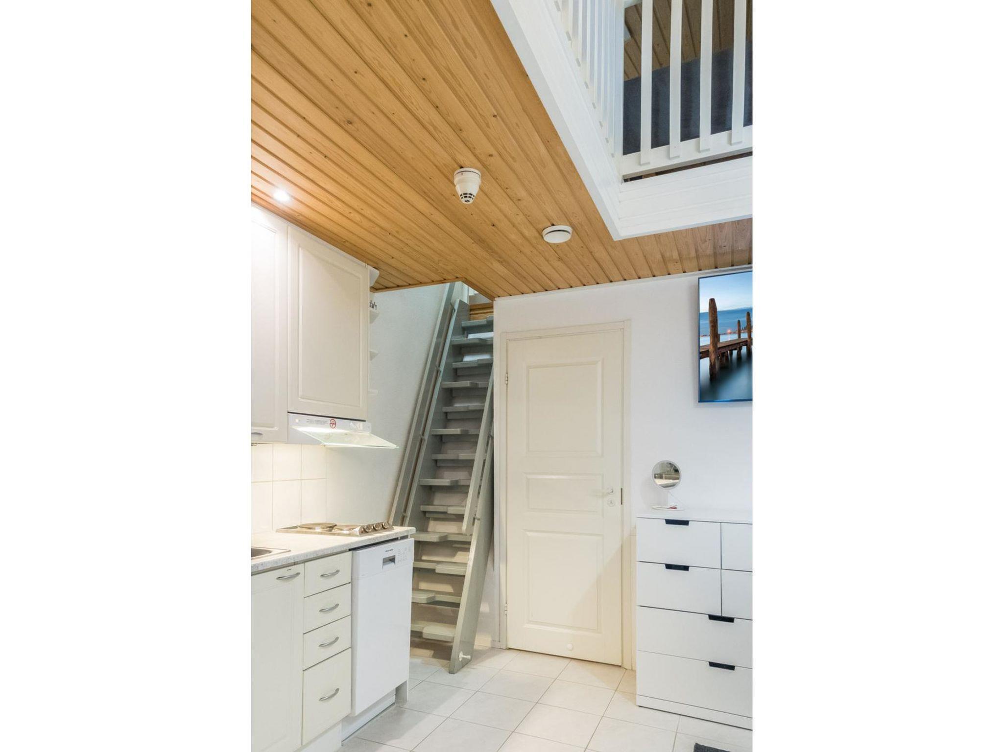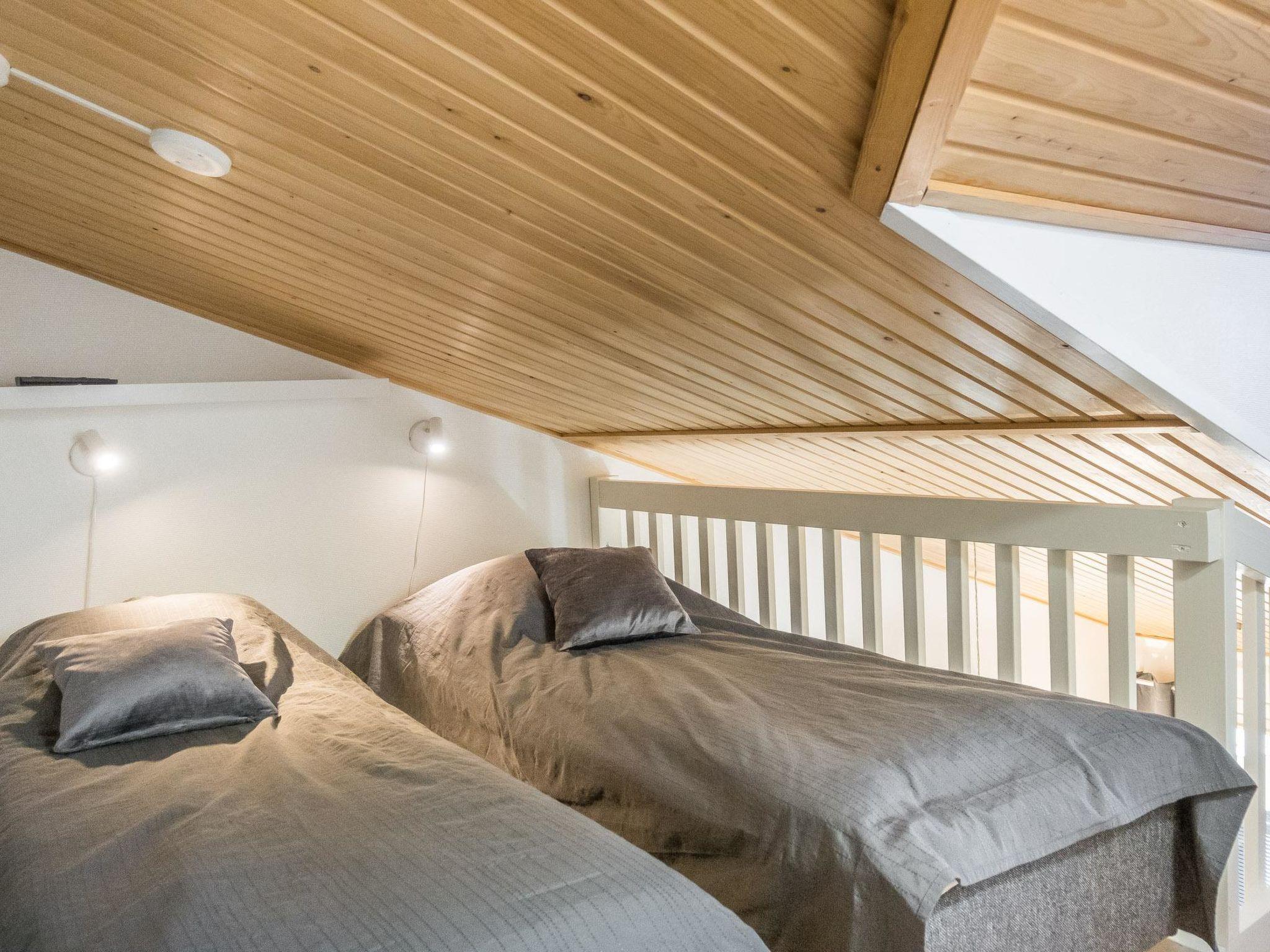 Holiday apartment on the second floor. In the living room/kitchen, there is sofa bed, 3 separate beds in the loft, sauna and washroom/WC.