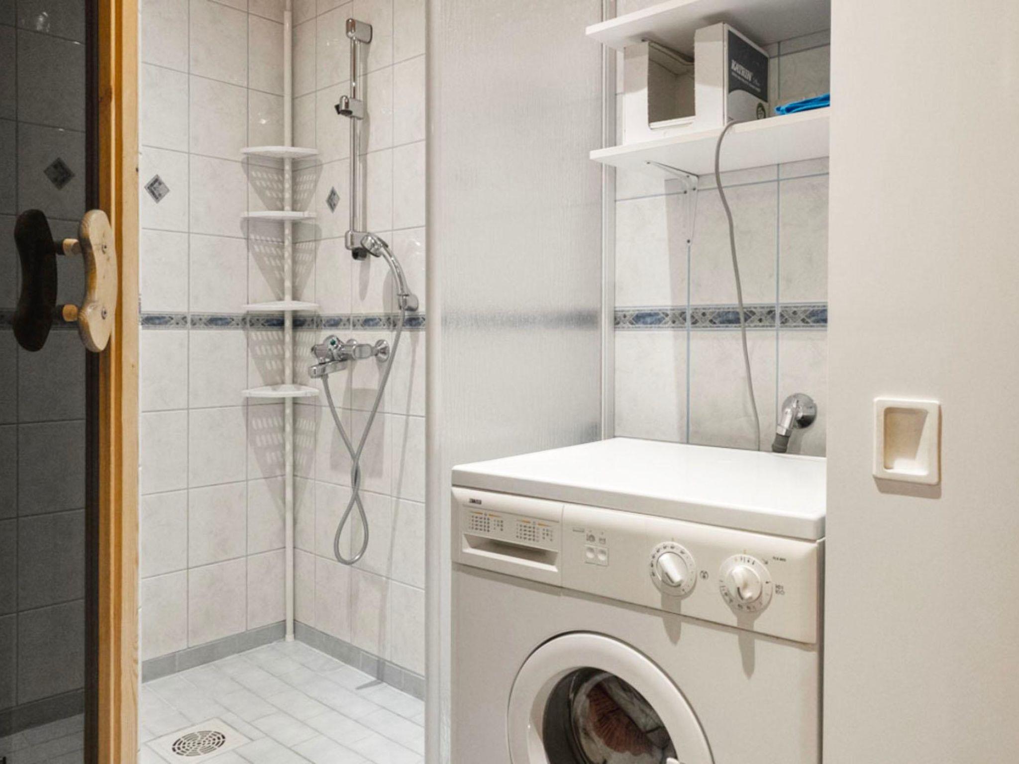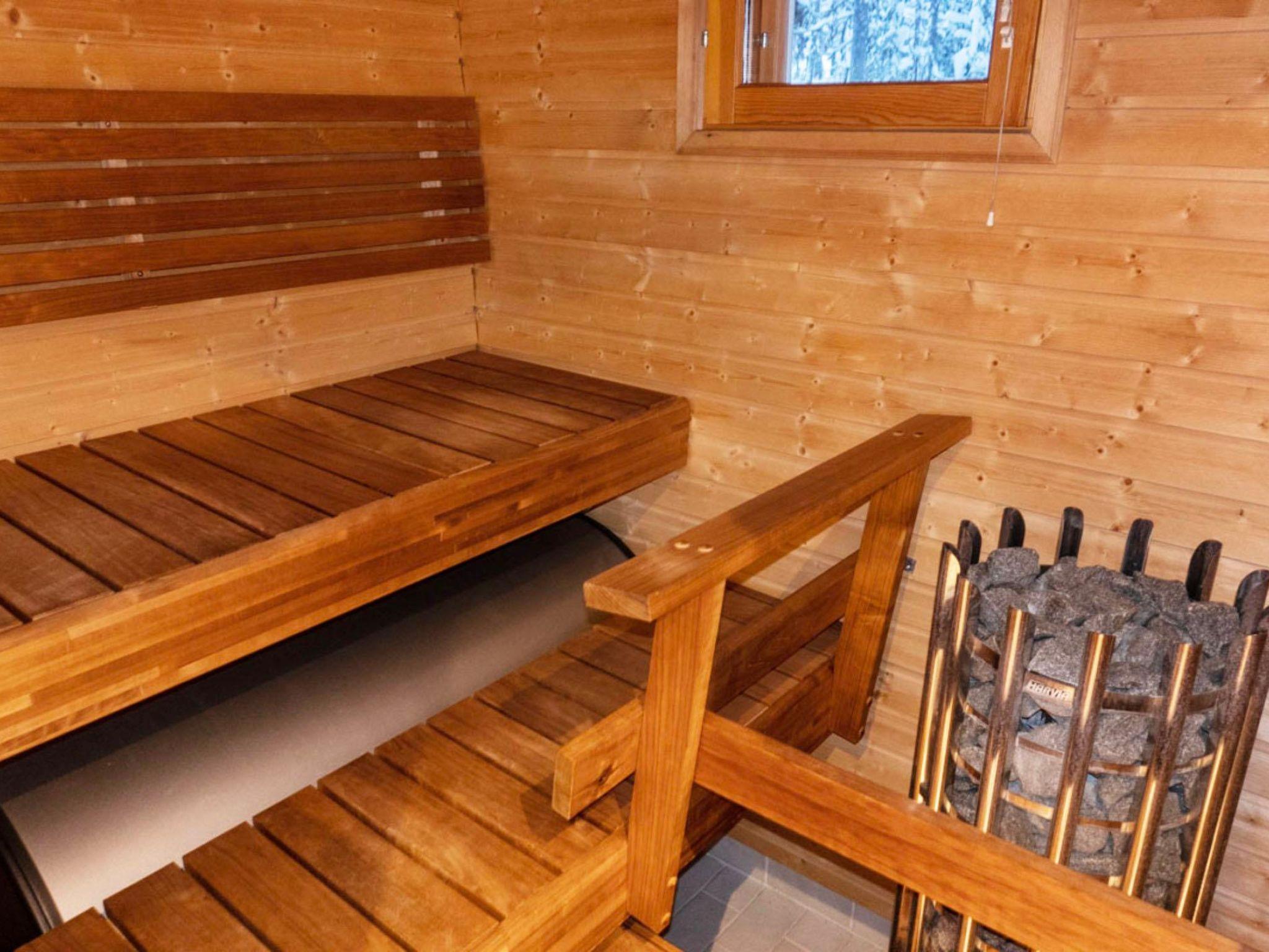 Living room/kitchen, double bed in the bedroom (so-called Yankee bed), 2 beds in the upper floor bedroom, access to the balcony from the bedroom, 2 beds in the loft, sauna, washroom, WC, covered terrace.