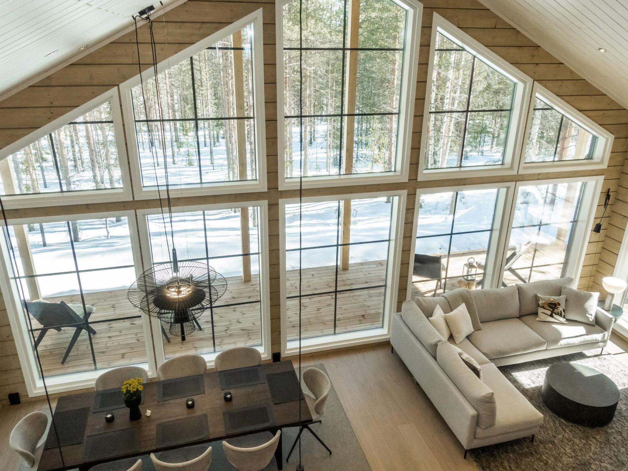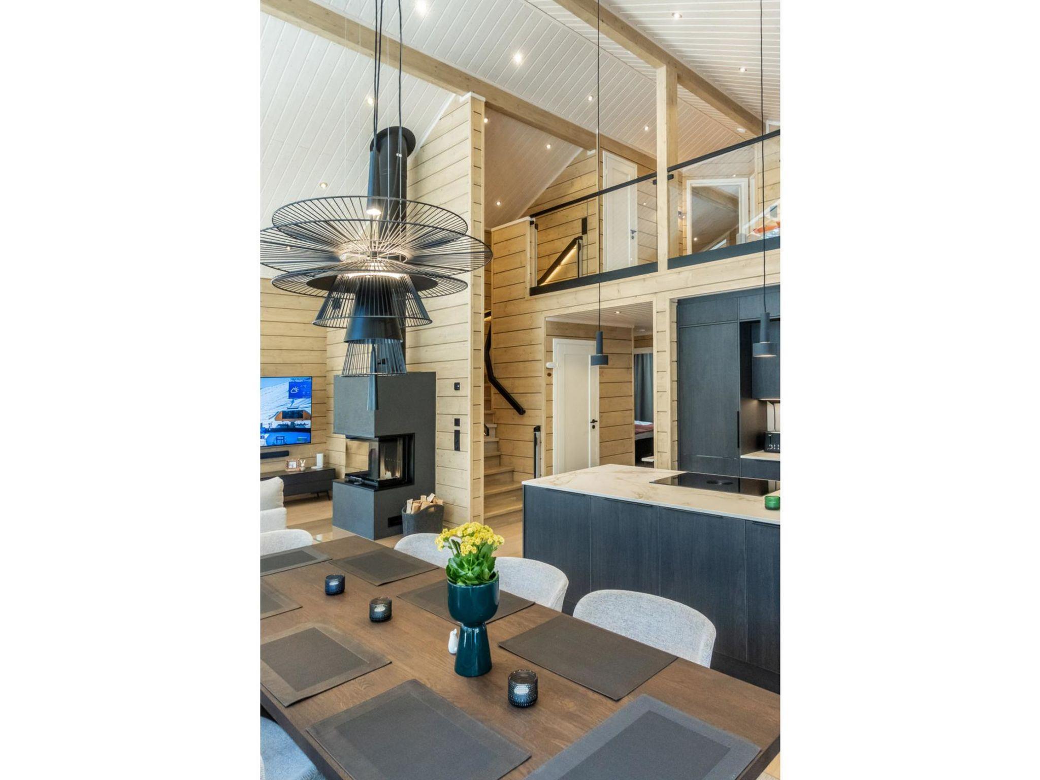 A successful vacation is crowned by high-quality and comfortable accommodation. Svingipolku 5 offers a stylish setting in a new log-built villa, which is completed in 2023. Location is ideal in all seasons due to the villa being located near the center of Levi. For example, a golf course and the ski slopes can be reached easily. This stylish, four-bedroom villa is designed for eight people. The villa's high level equipment and modern interior designed by Interior Design Seija Strand Oy bring quality, functionality, and comfort to your vacation.