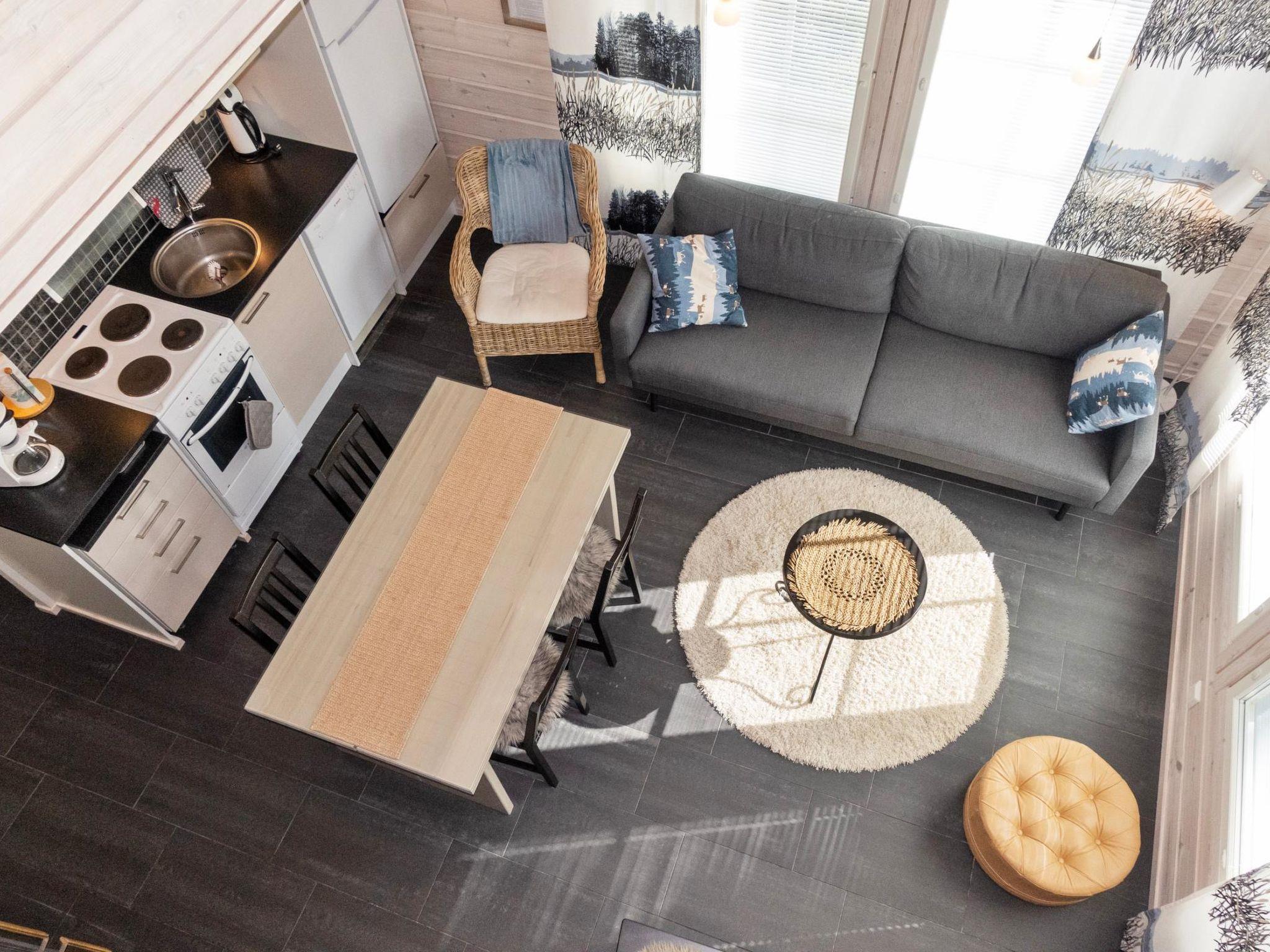The apartment is located in a peaceful area in the Levi ski resort. Ski trails and a fitness track are nearby. The nearest ski slope, Koillisrinne, is also just a kilometer away.