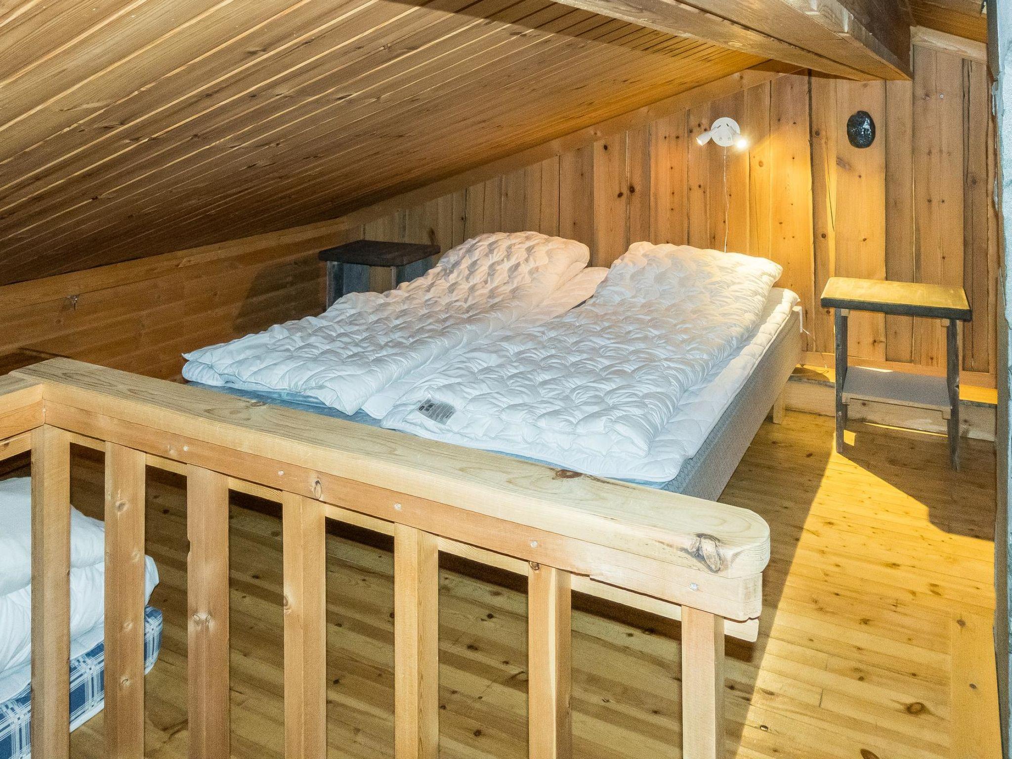 The bedroom has a bunk bed with bed widths of 80 cm. The loft includes two box-spring beds and two additional mattresses, providing additional sleeping space. Please note that the loft is somewhat low and the stairs leading to it are steep.