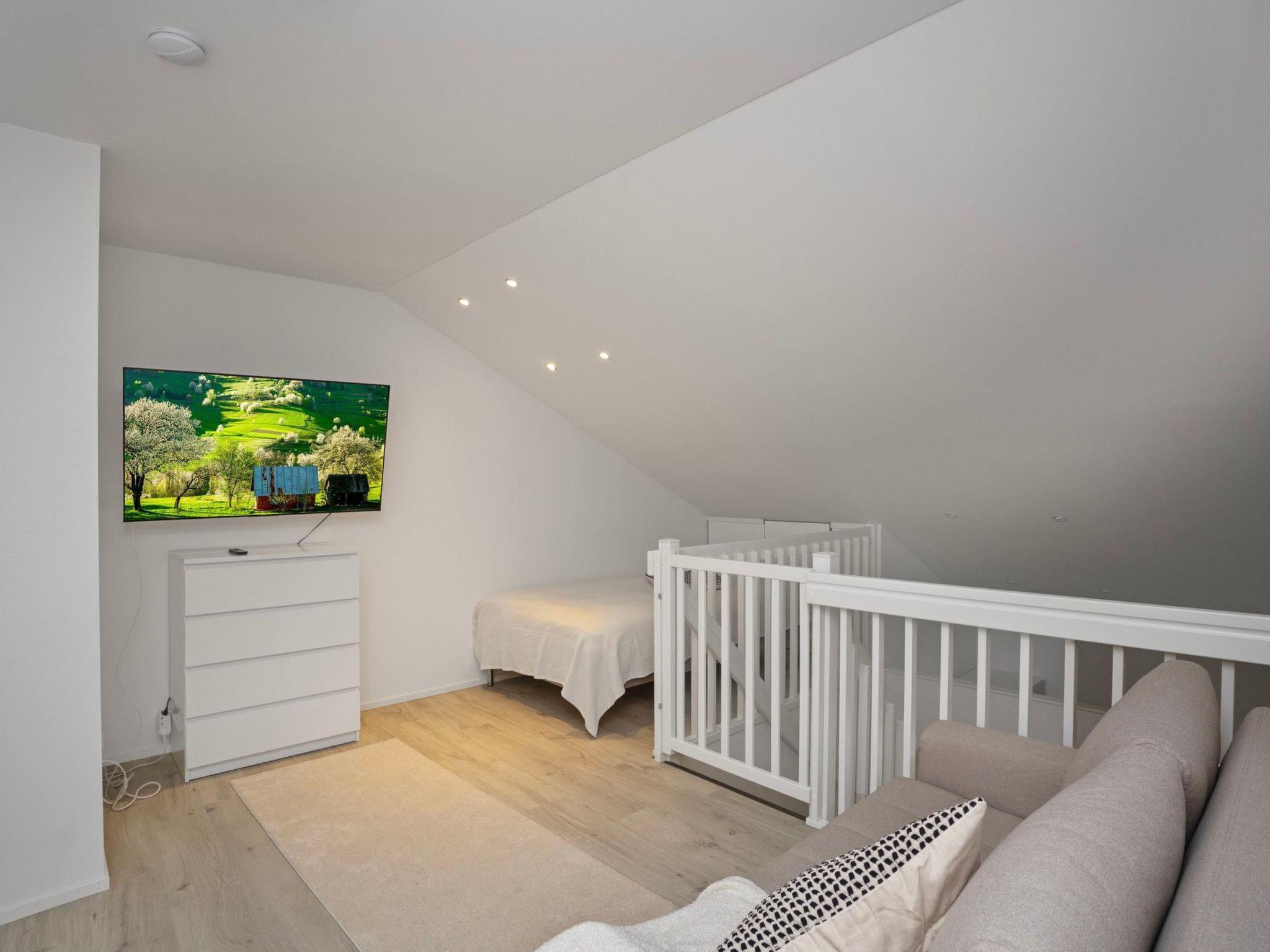 A holiday apartment in a chalet built in 2006. The apartment was renovated in 2022 after a fire. It has two bedrooms: one on the lower floor with a 160 cm wide double bed, and one on the upper floor with two 80 cm wide beds. Additionally, there is a 120 cm wide bed in the loft and a pull-out sofa bed.