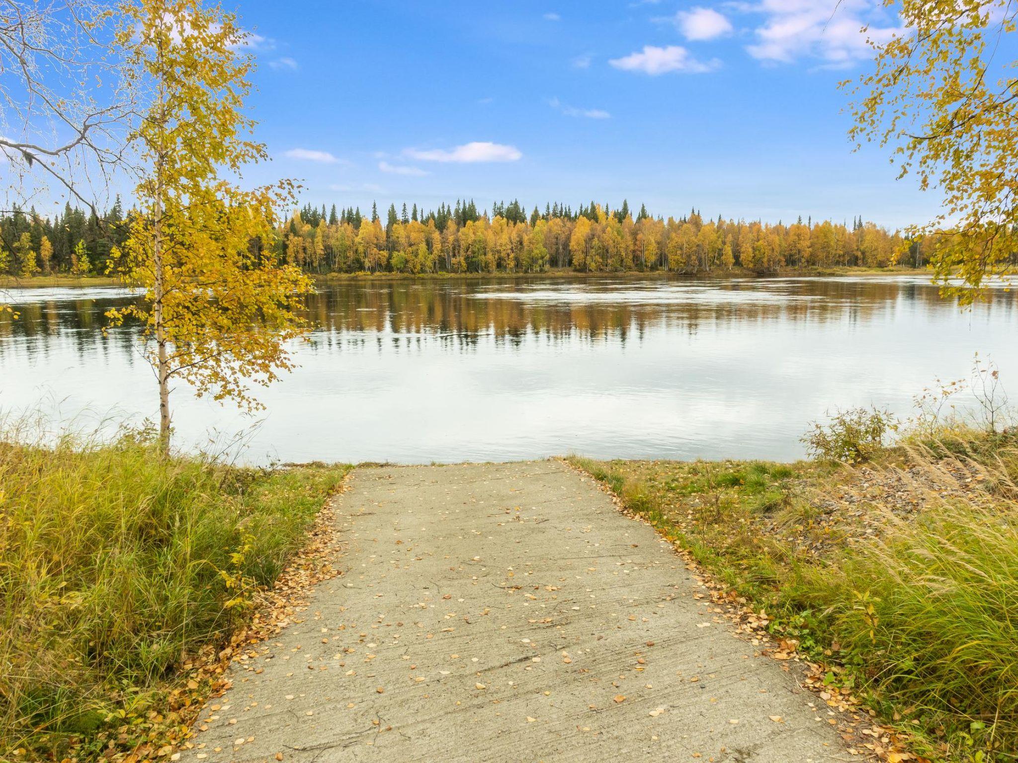 Comfortable kelo-log cabin with amenities by the river Muonionjoki. The large windows facing the river provide excellent opportunities for observing the northern lights from inside the cabin. Salmon fishing spots next door and skiing services of Ylläs ski resort are still very accessible (distance about 50 km). Boats and outboard motors can be rented from the owner, a smaller sauna cabin is available for an additional fee.