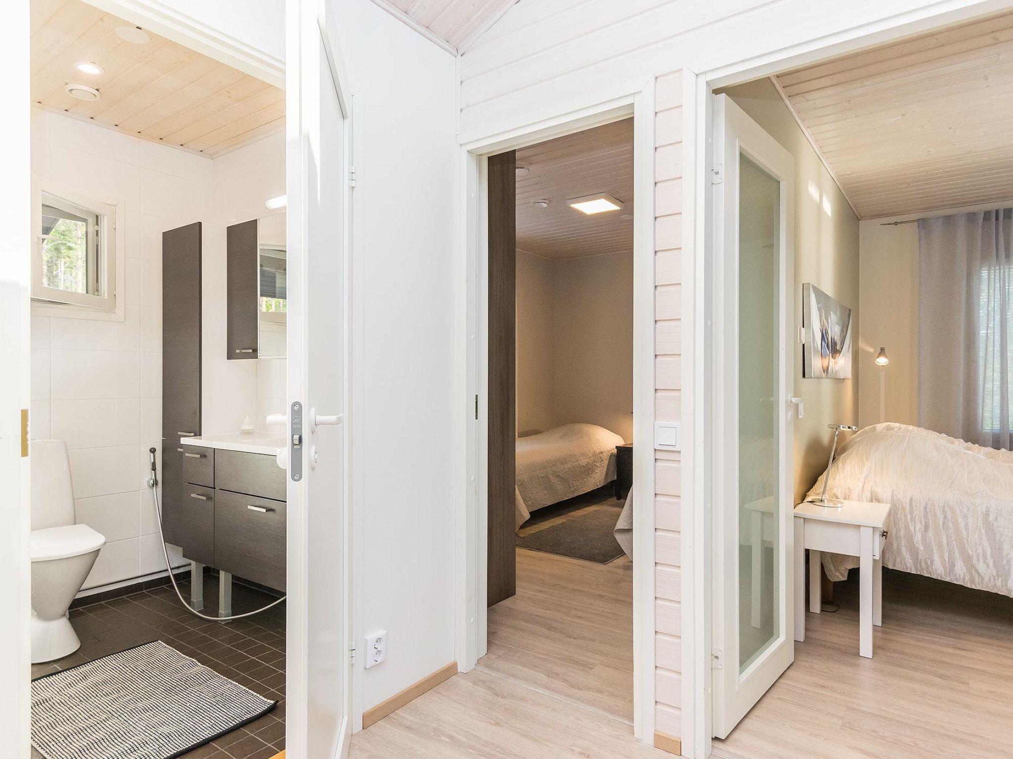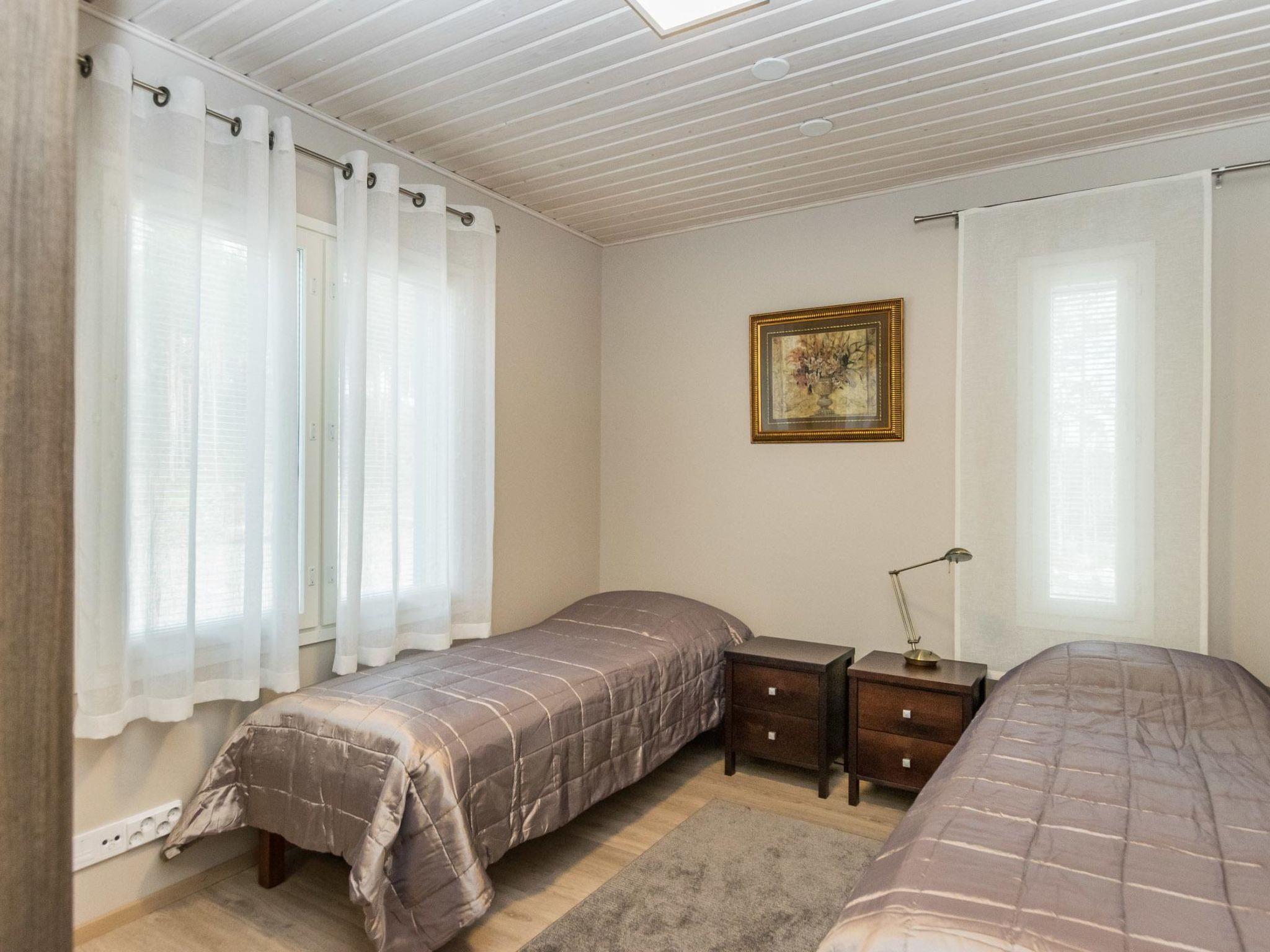 Wooden house, built in 2015, kitchen, living room (sofa bed with 2 extra beds), bedroom with 2 beds, second bedroom with double bed, third bedroom with 2 beds. Each bedroom has wardrobes. Utility room, washroom, sauna (electric stove), 2 separate toilets, large partly covered terrace. The house has mechanical cooling, 100 Mb wifi, smart-tv.