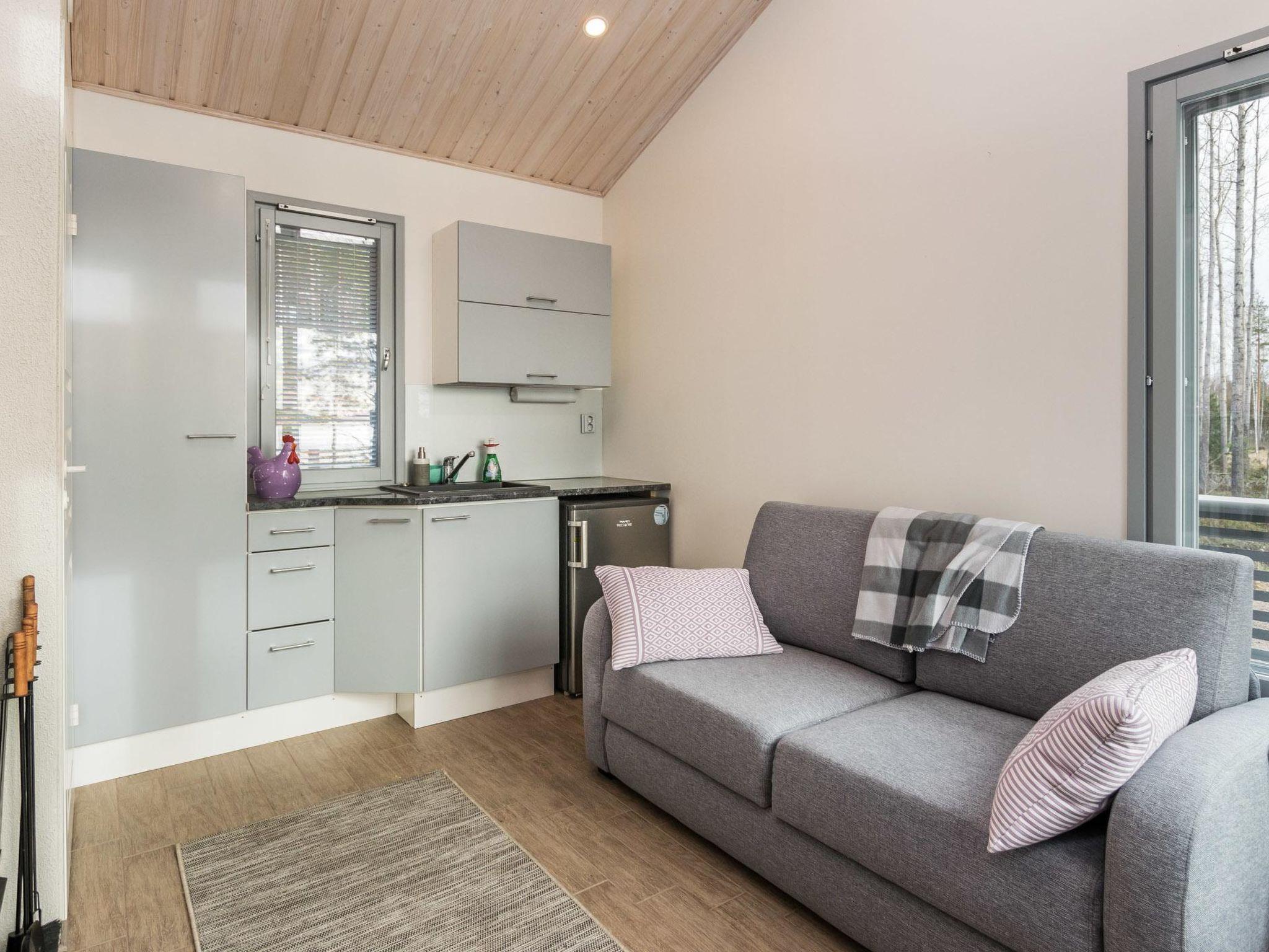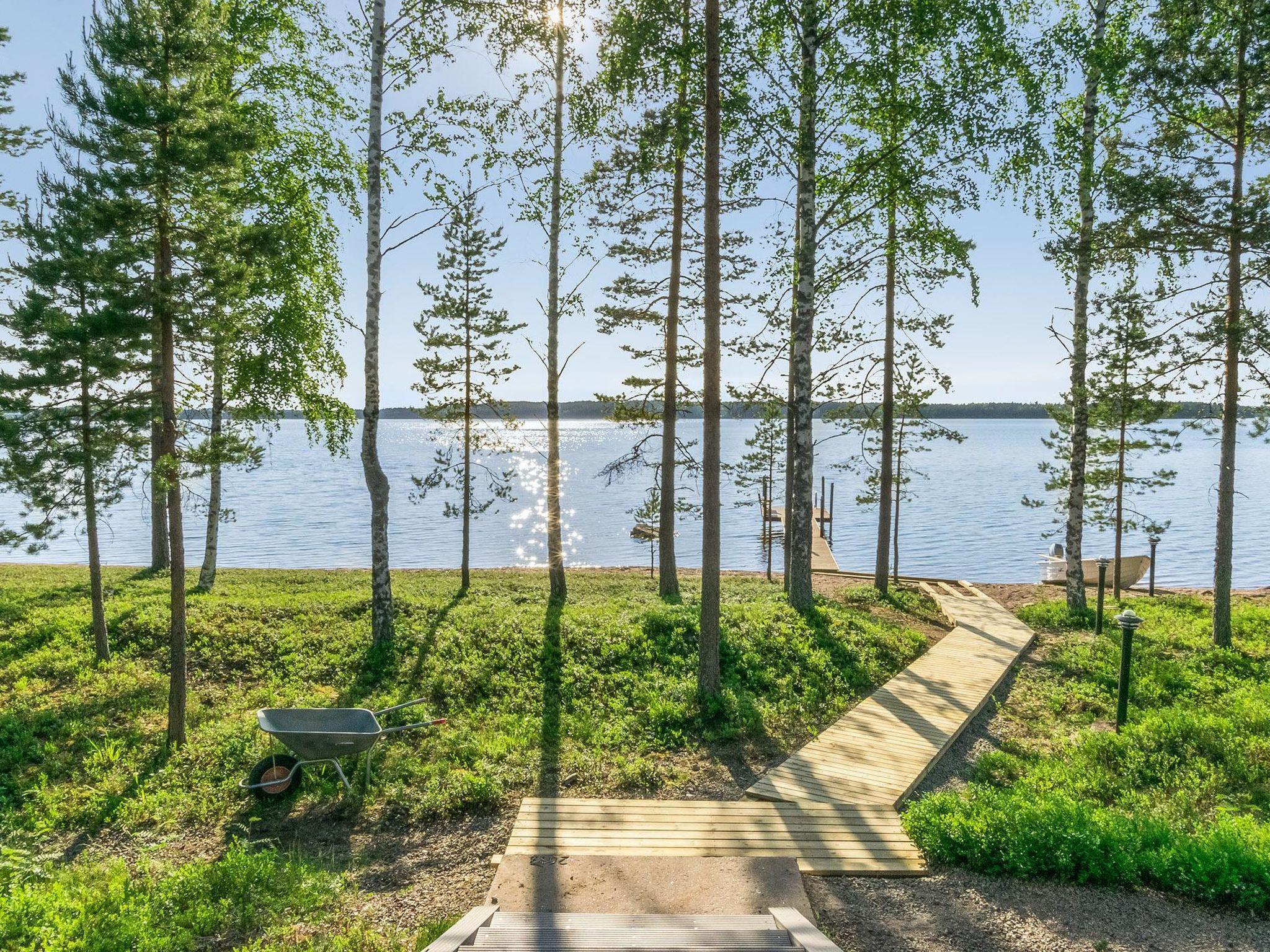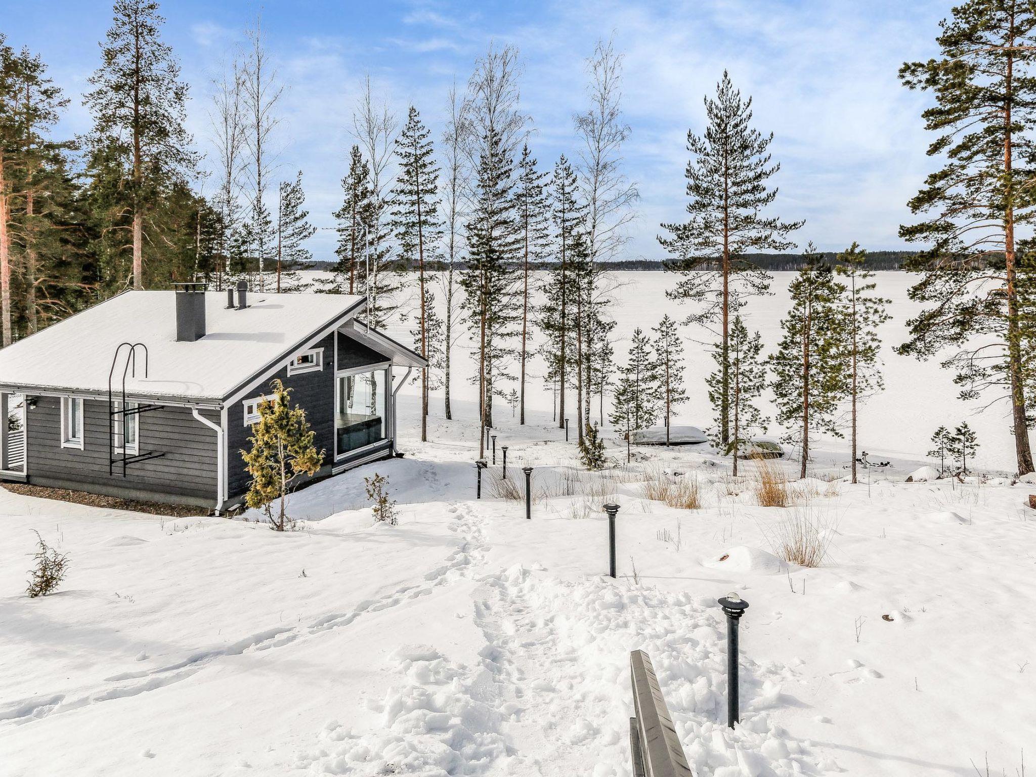 Well-equipped lakeside sauna (25 m²), terrace, dressing room, washroom, sauna (wood-burning stove), fireplace room with sofa bed (2 extra beds), mini-kitchen, toilet, loft (steep ladder to the loft). There are 2 alternative extra beds on the loft. On the glazed terrace there is a 6-person hydro massage bath freely available.
