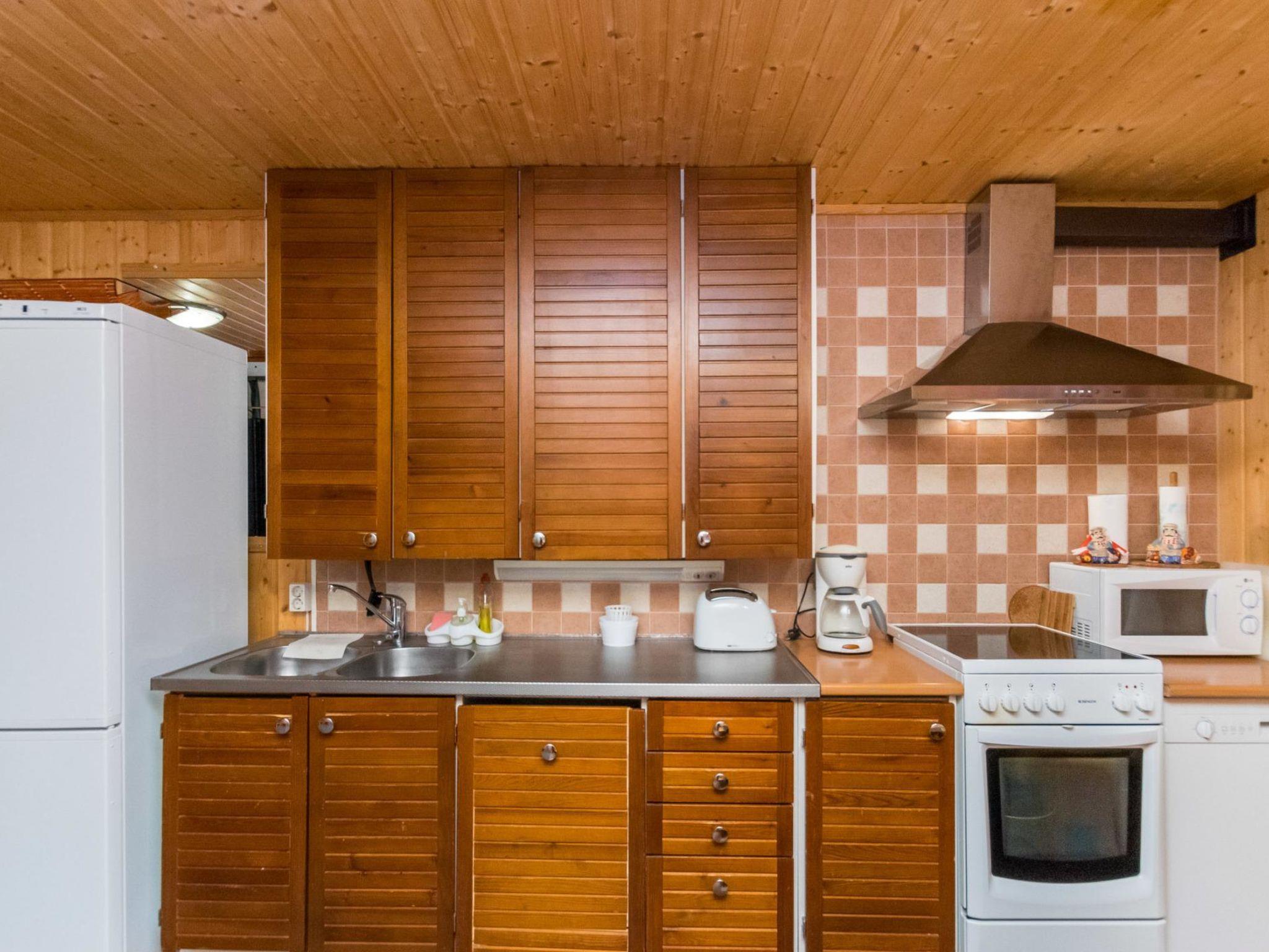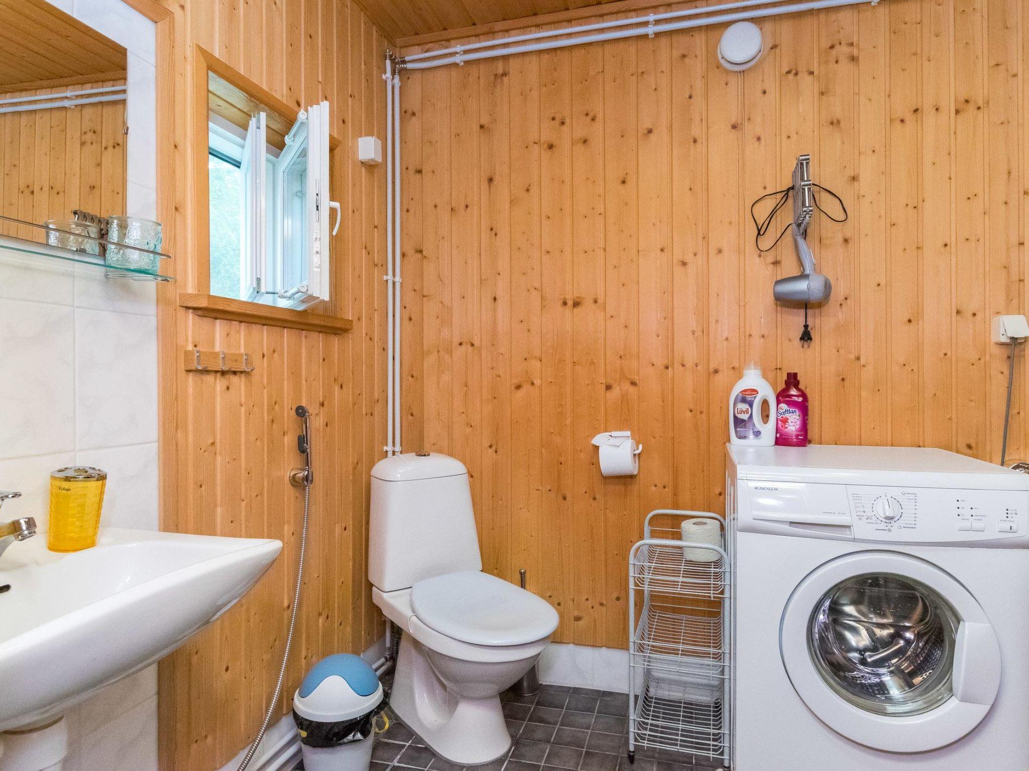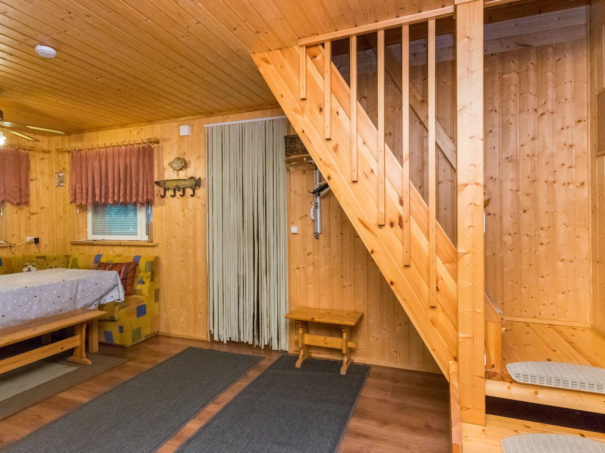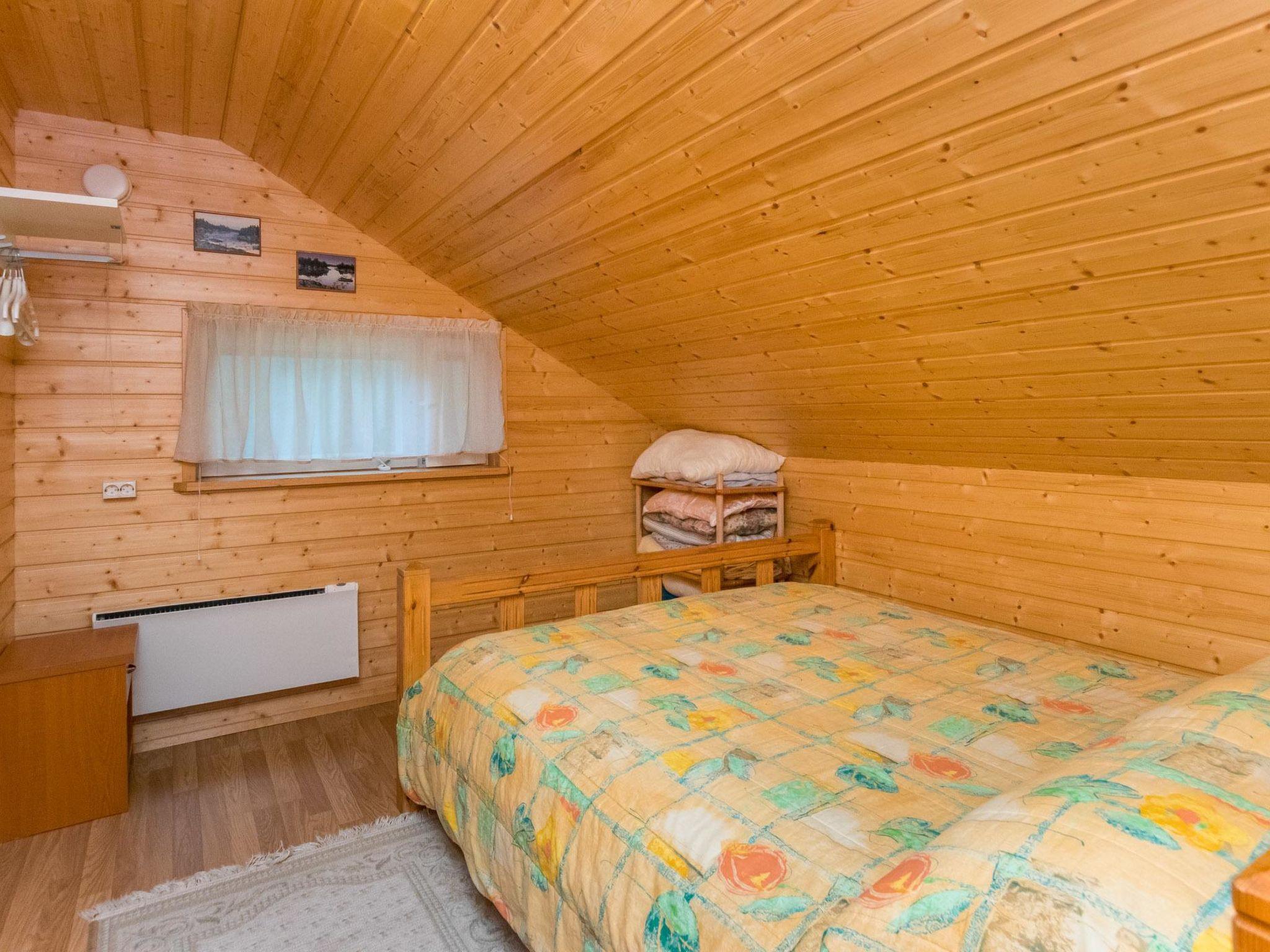 Wooden cabin 2008, living room/kitchen, washroom with shower and WC, wood heated sauna, entrance hall. Upstairs bedroom with a double bed, another bedroom with two single beds, two single beds in the lobby (curtain). Balcony and covered terrace.