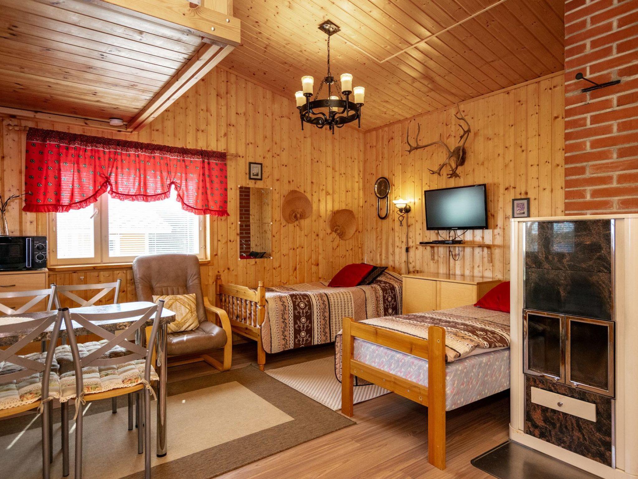 Wooden cabin 2008, living room/kitchen with two beds and loft bed (vertical ladder).