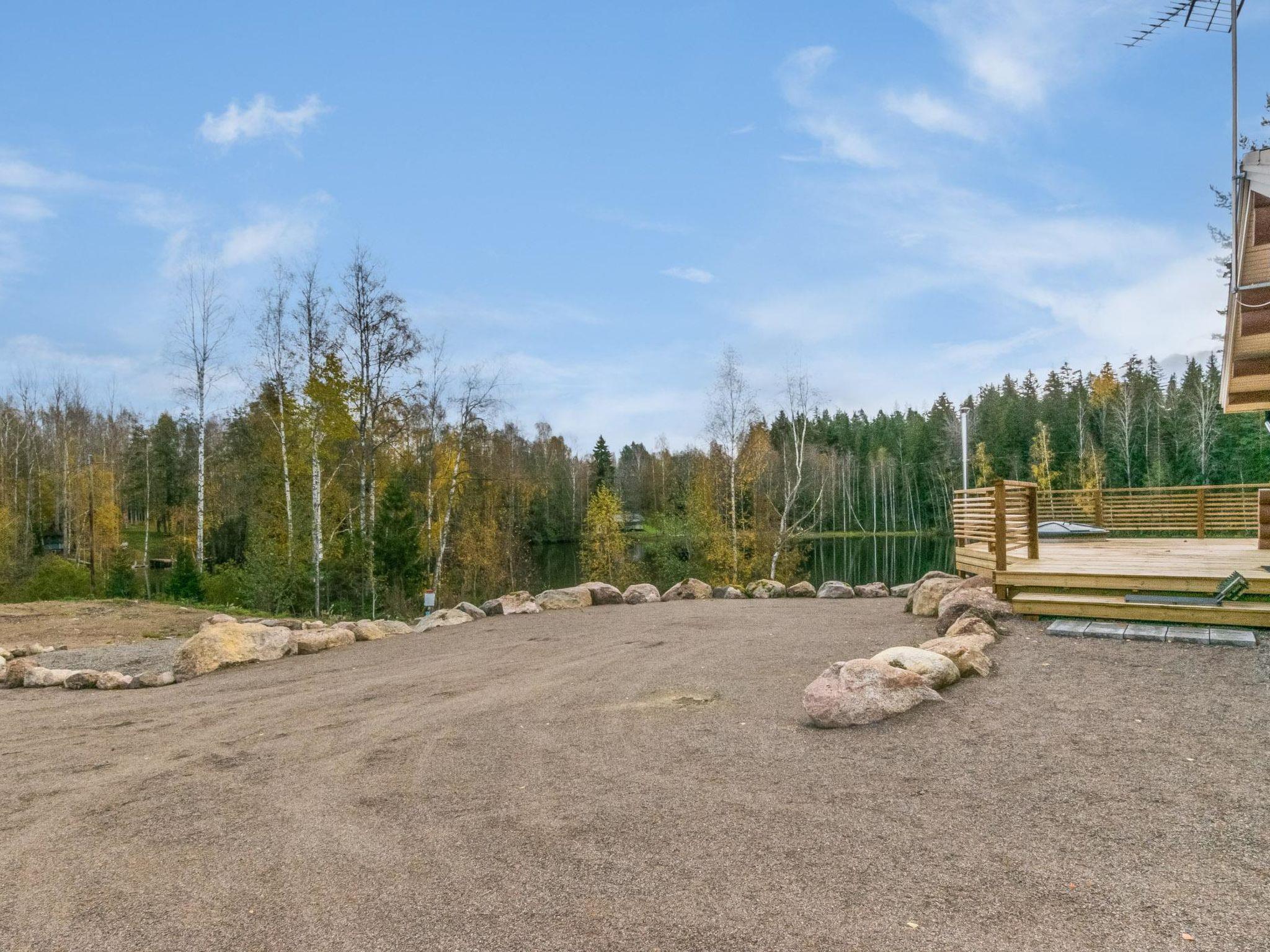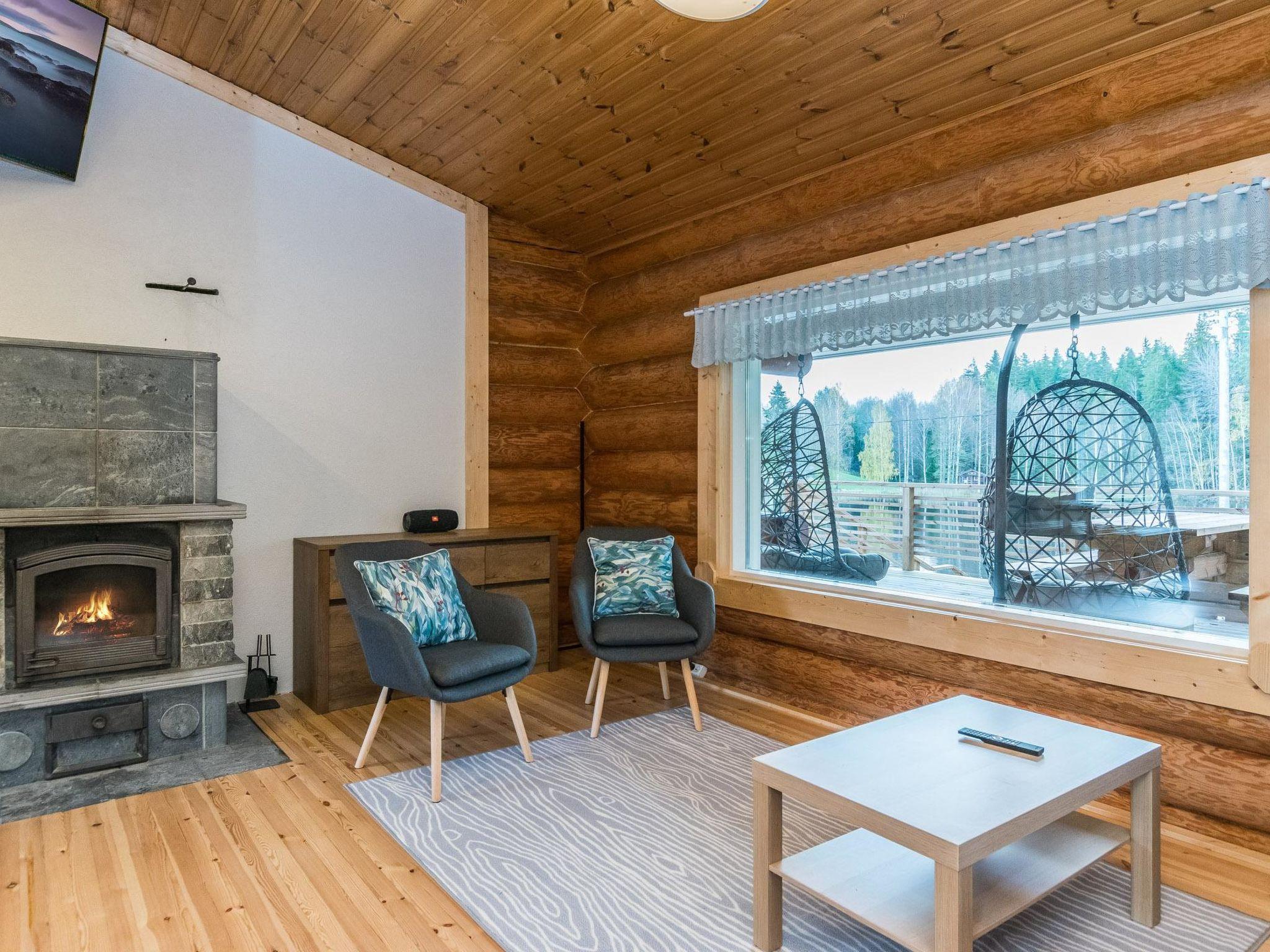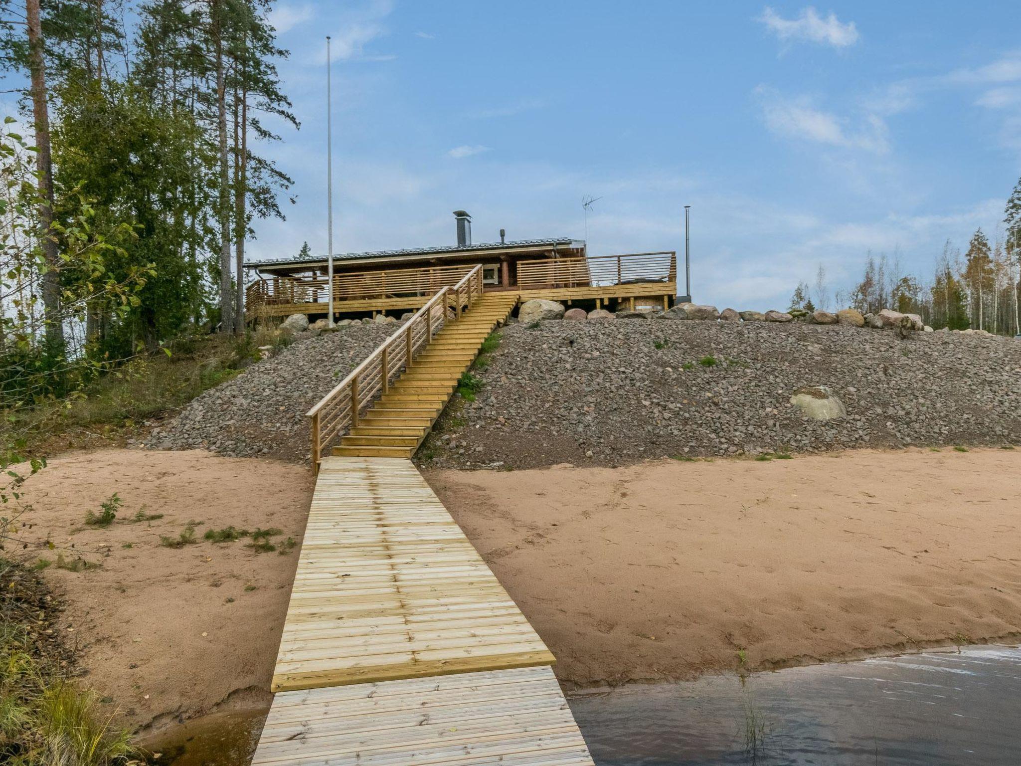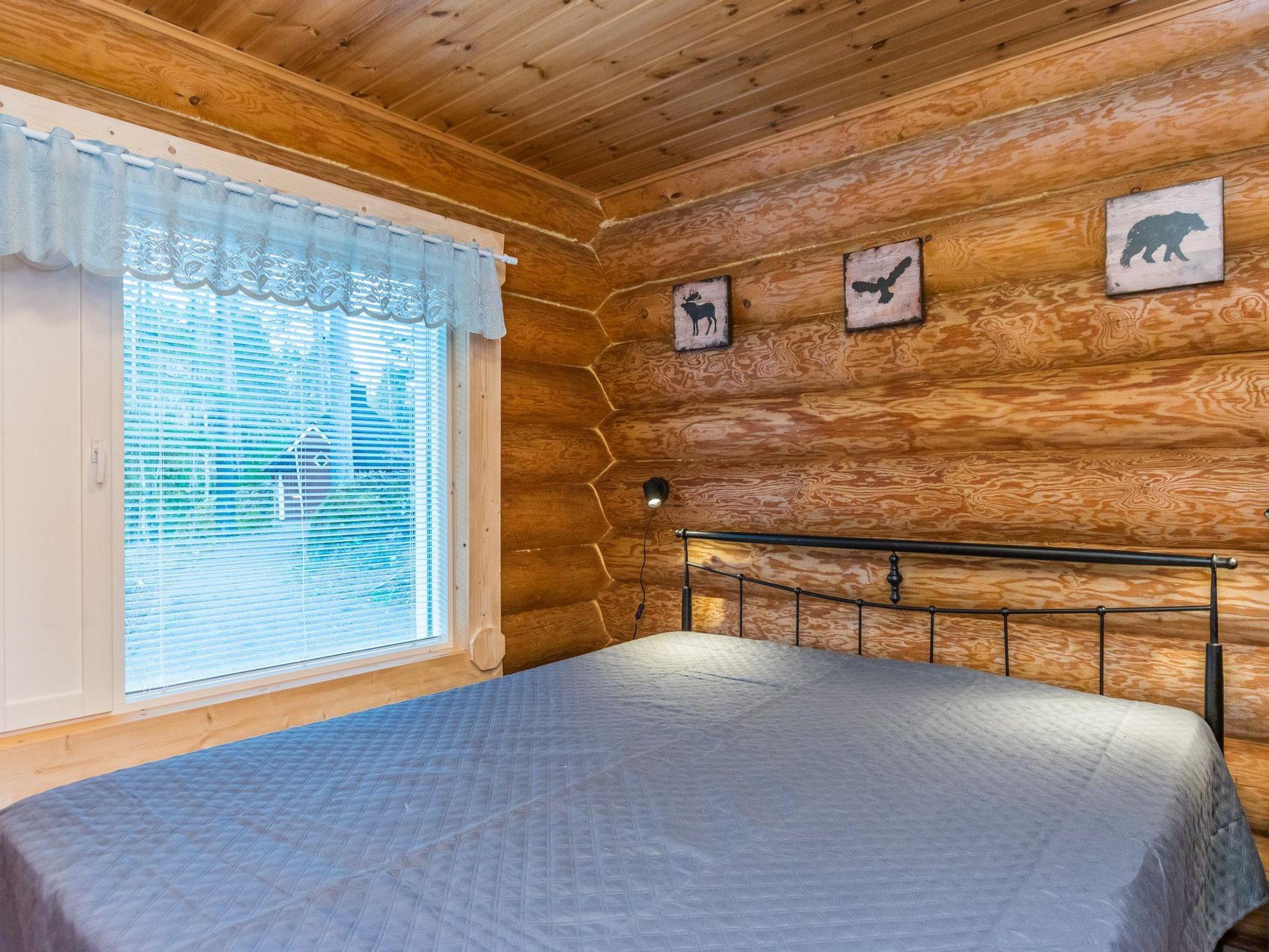 25 km to the east from Kouvola, Väliväylä Canoeing Route 15 m, gently deepening sand beach, rowing boat, and a pier. Round log cabin, built in 1998 and renovated in 2023, features a living room/kitchen, a bedroom with a double bed, another bedroom with a single bed and a bunk bed, a bathroom with a shower and WC, and a wood-burning sauna.