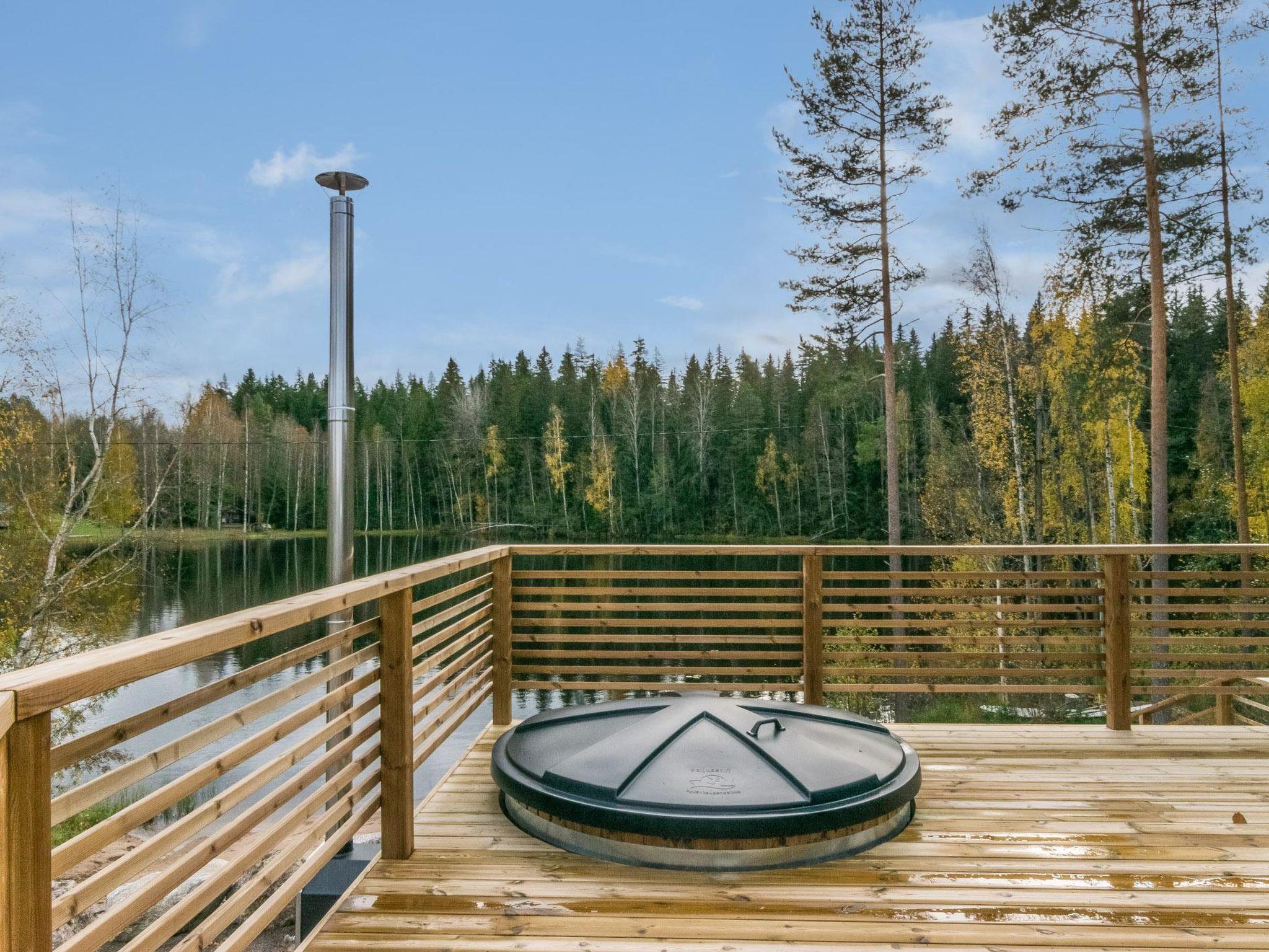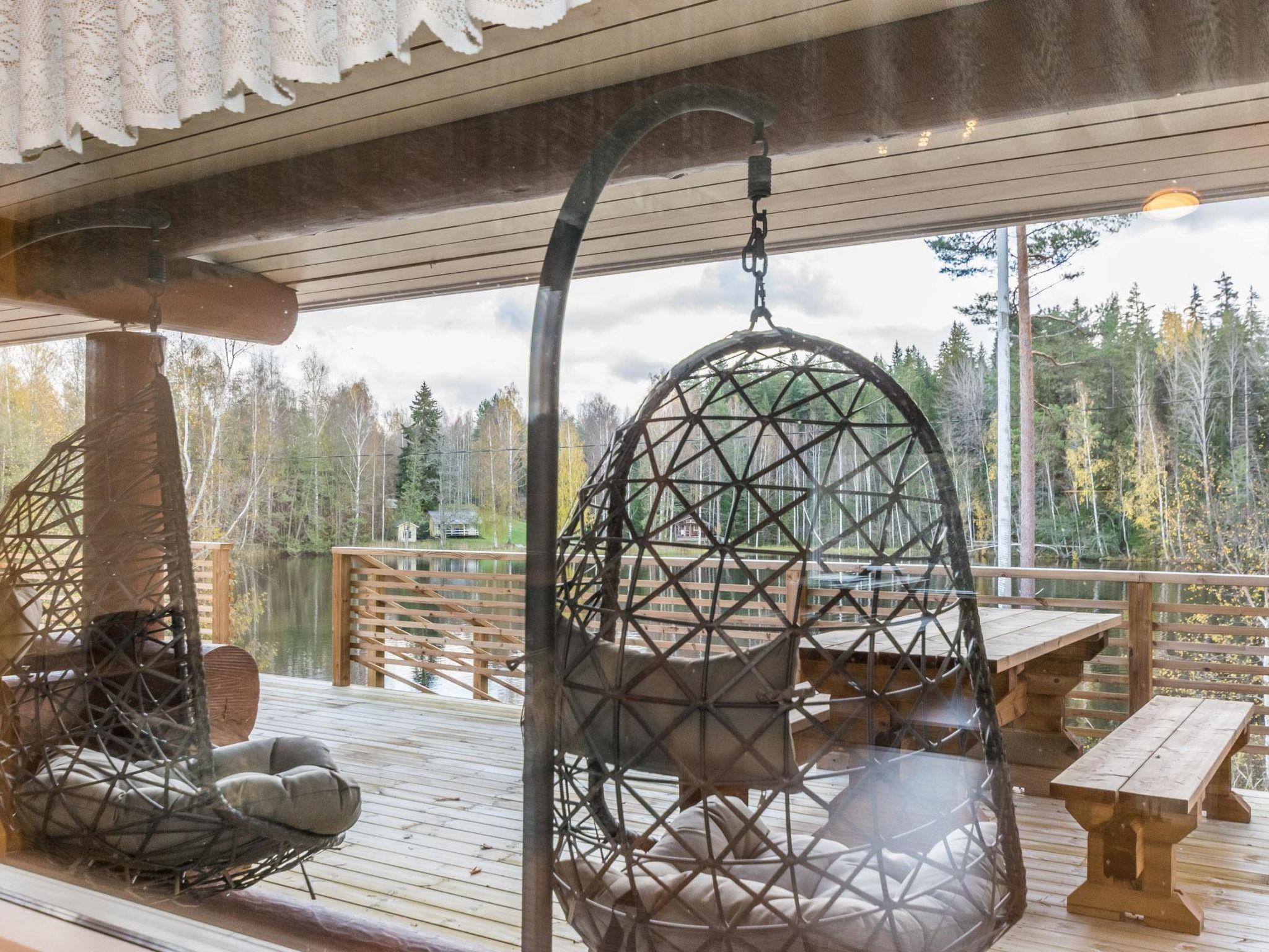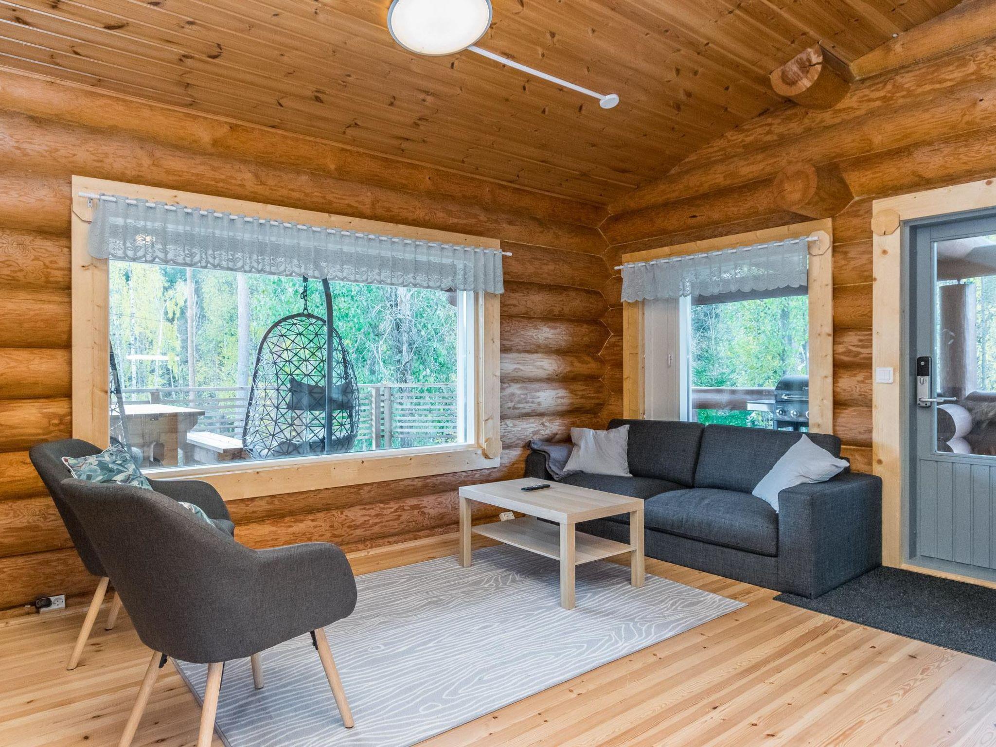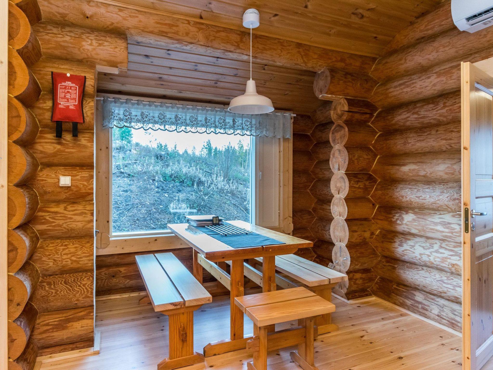 25 km to the east from Kouvola, Väliväylä Canoeing Route 15 m, gently deepening sand beach, rowing boat, and a pier. Round log cabin, built in 1998 and renovated in 2023, features a living room/kitchen, a bedroom with a double bed, another bedroom with a single bed and a bunk bed, a bathroom with a shower and WC, and a wood-burning sauna.