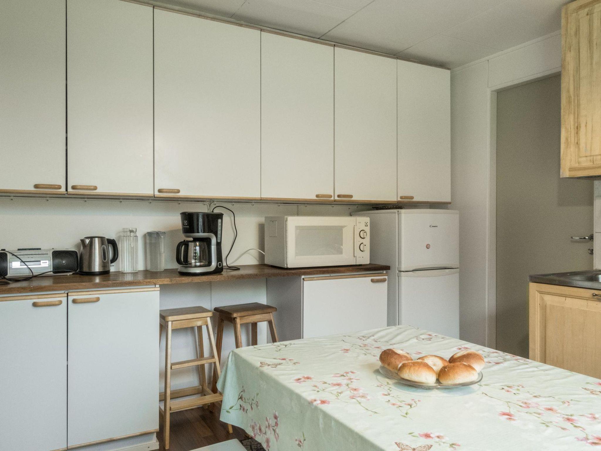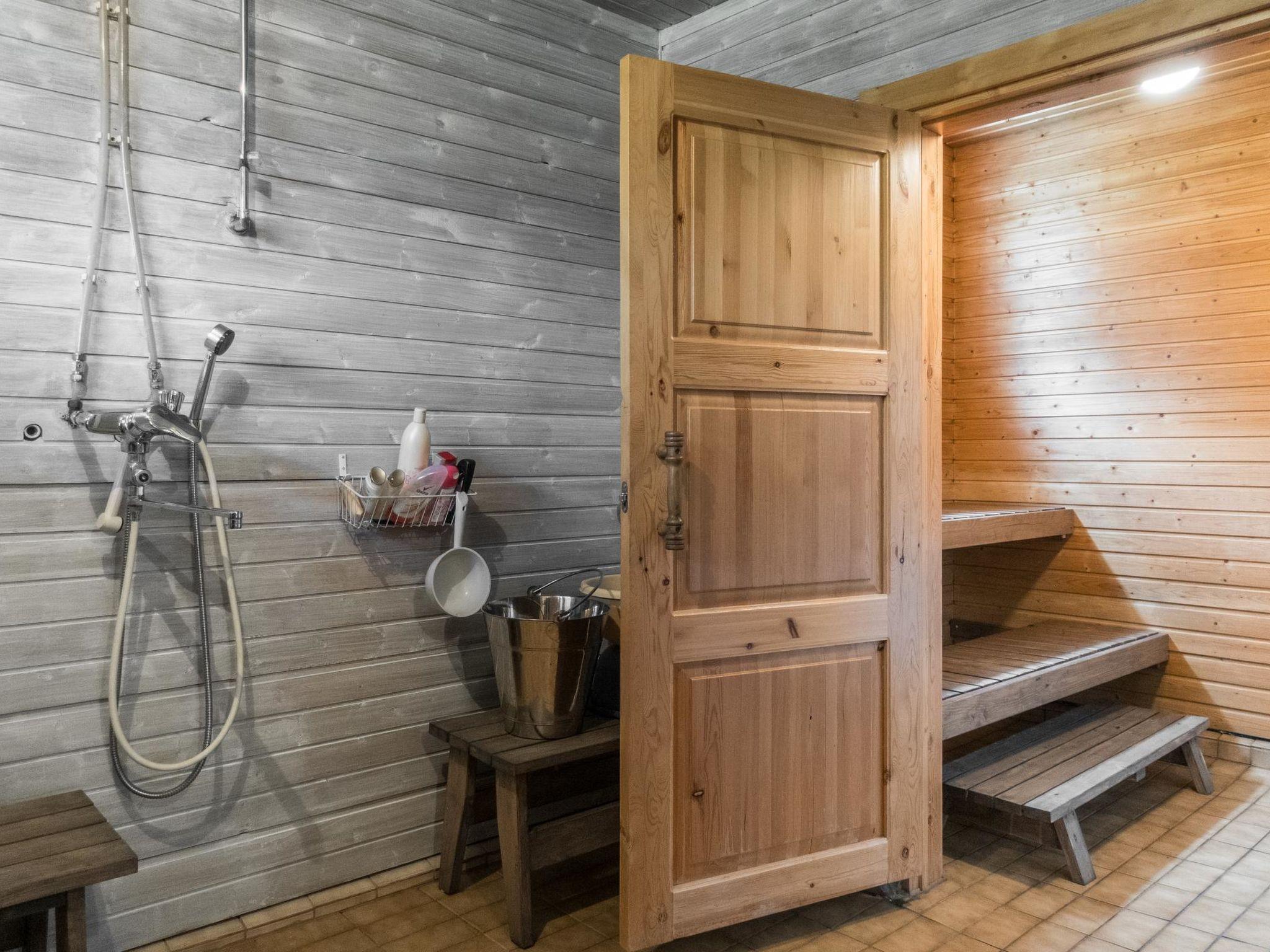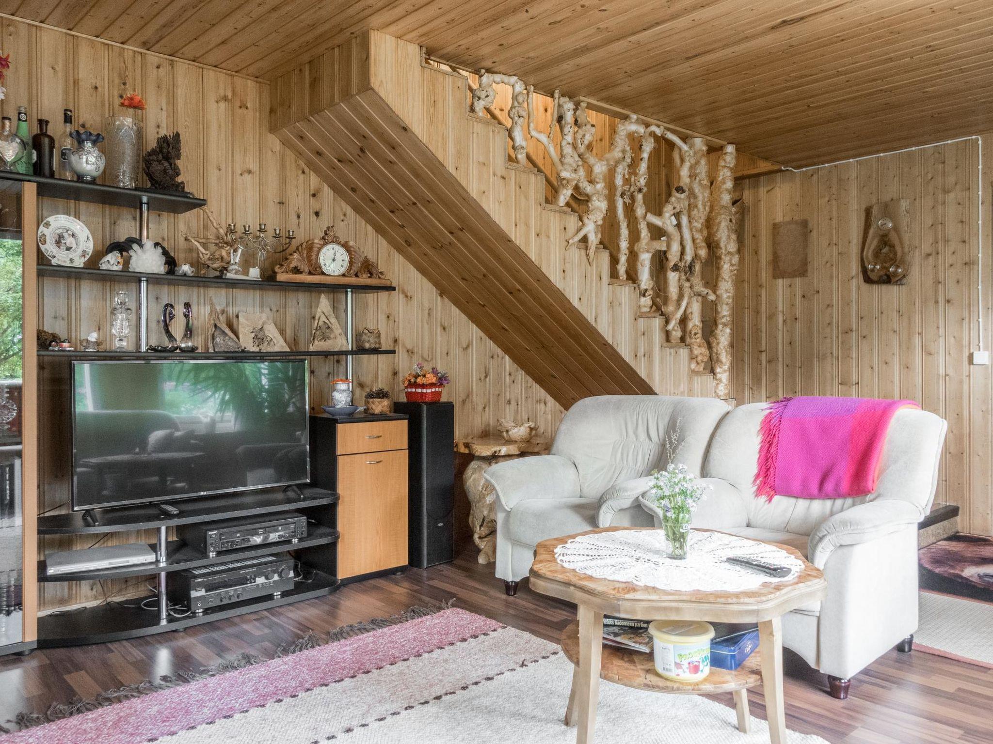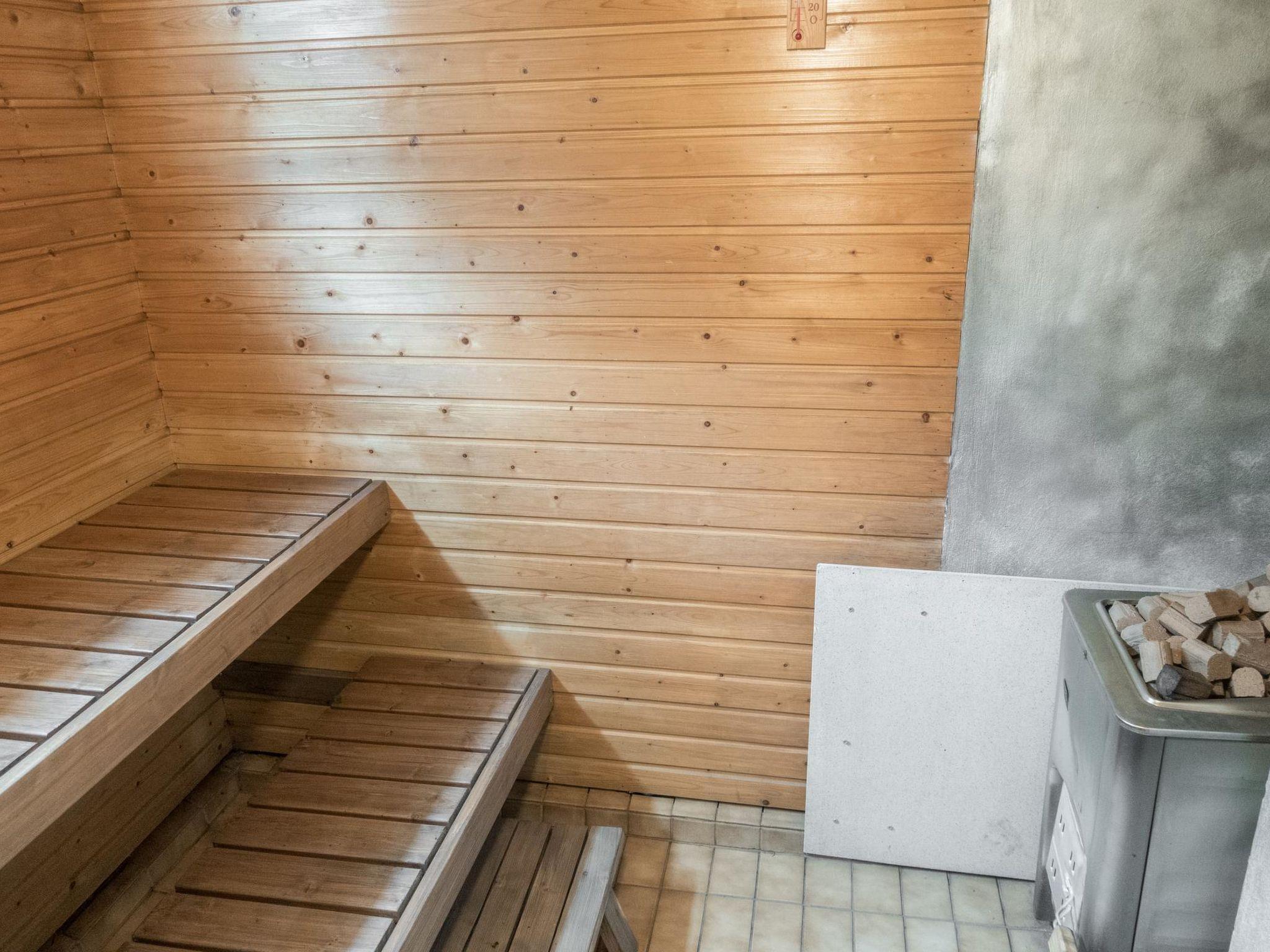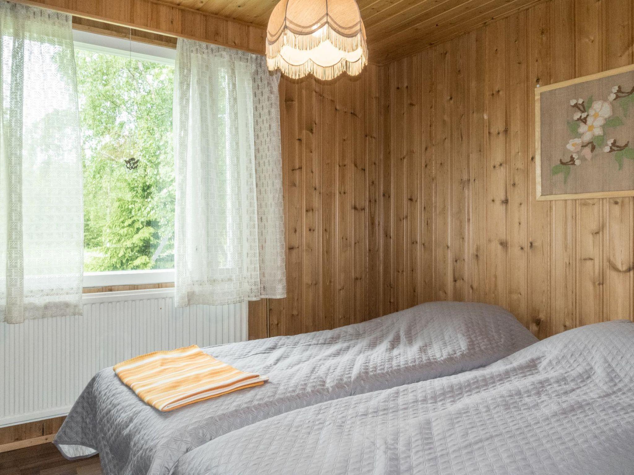 Wood-built house, originally built in 1949, expanded and renovated later. On the ground floor, living room, bedroom with 2 beds, sauna, washroom, dressing room and separate WC. On the upper floor, bedroom with double bed and another bedroom with 2 separate beds. Covered terrace.
