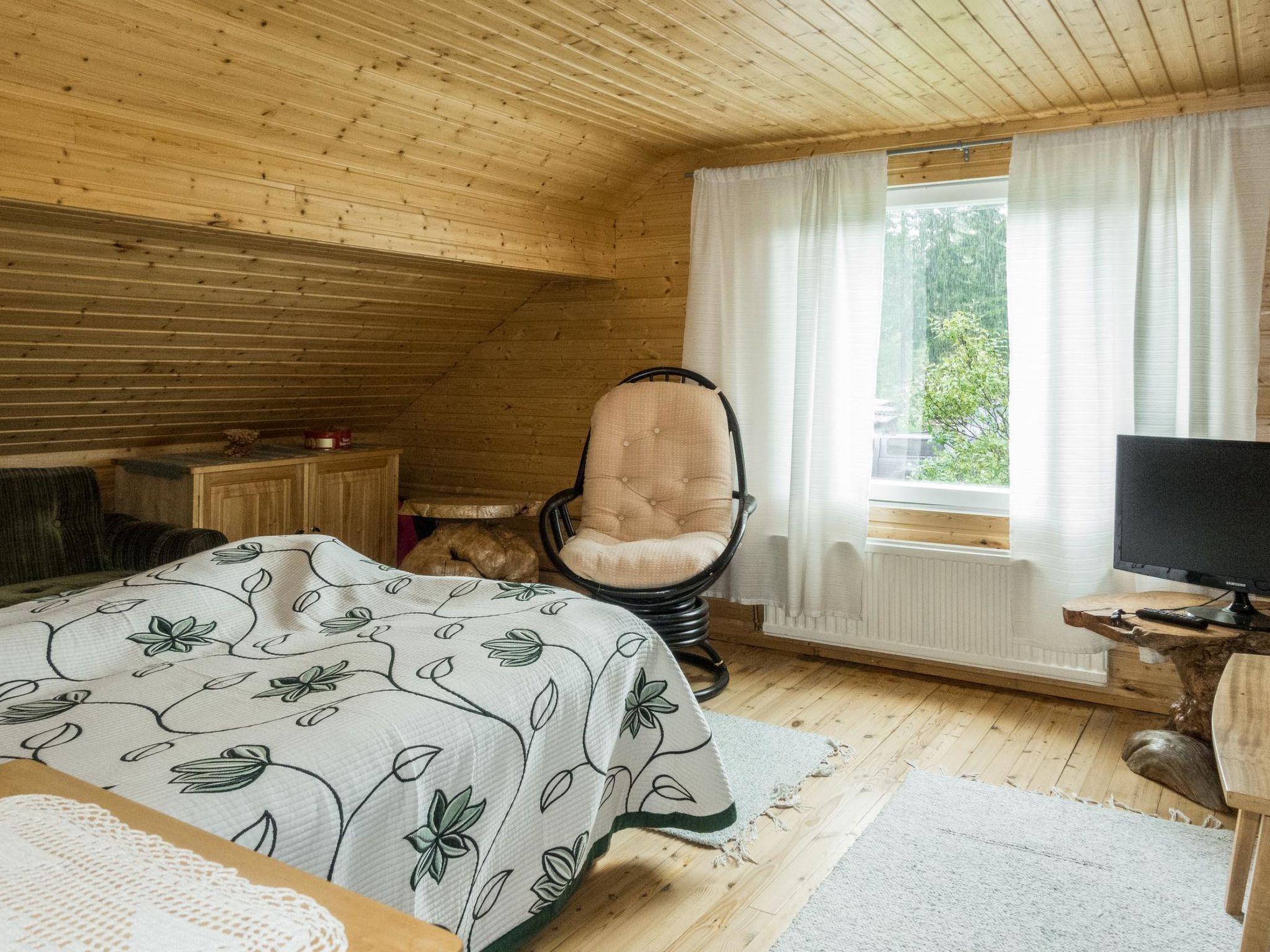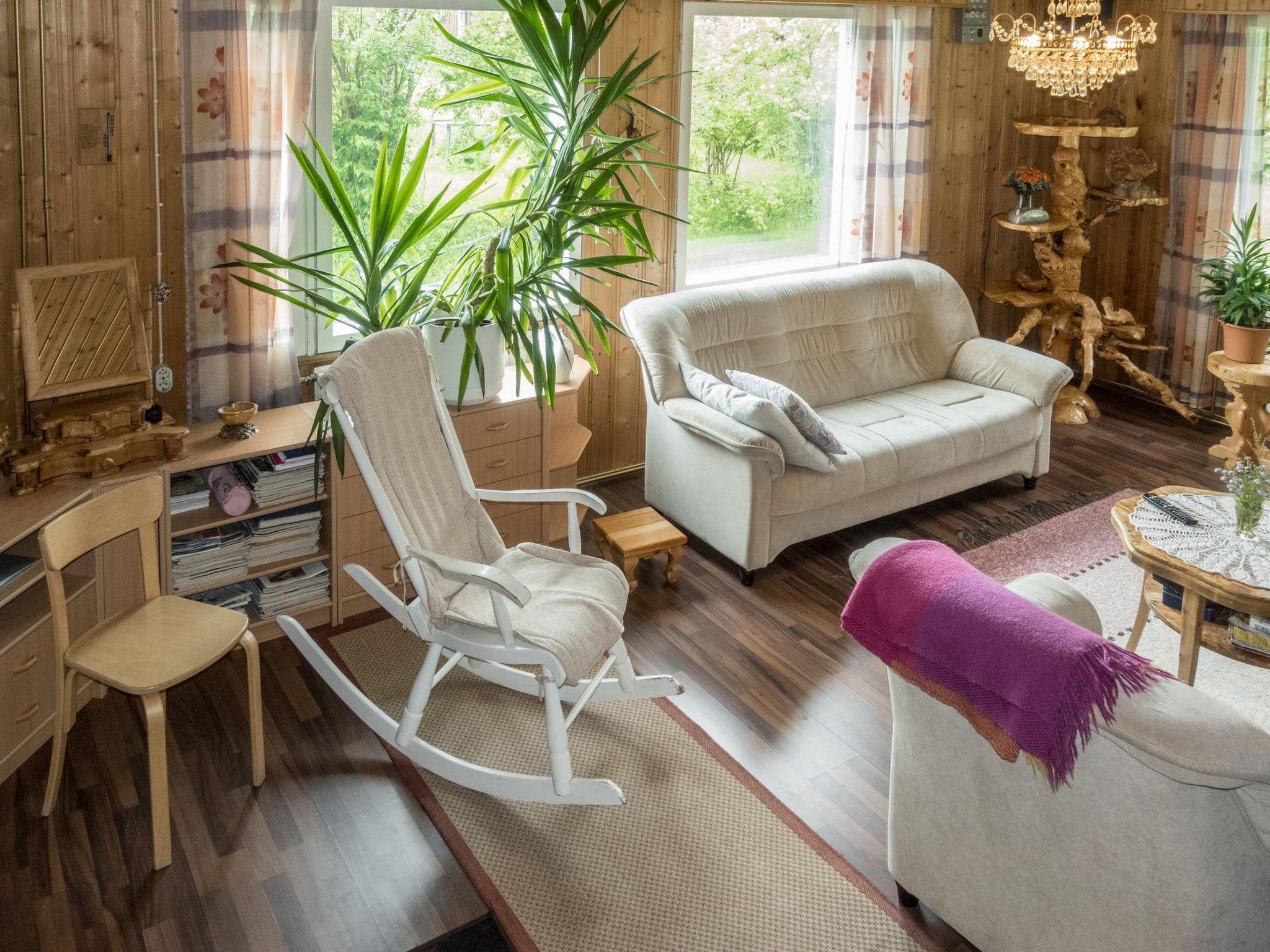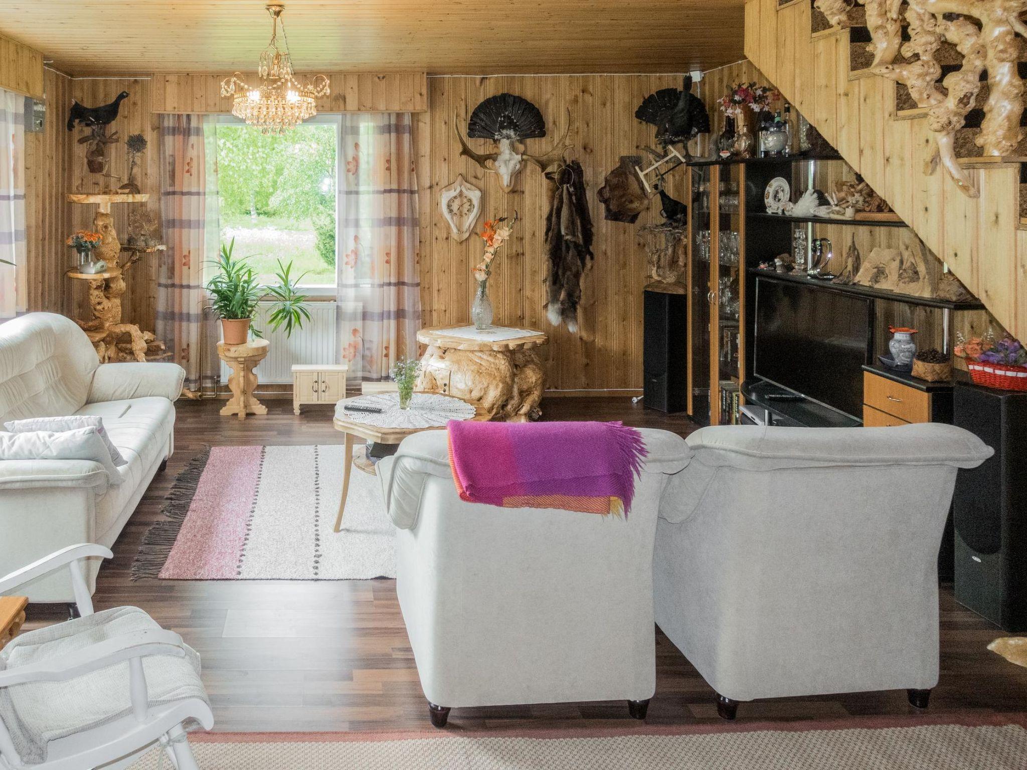 Comfortably furnished house with elaborate wooden crafts on a green garden plot near lake Vuosanganjärvi. Boat, swimming beach and campfire site available by the lake (distance 500 m). Kuhmo hunting areas and fishing waters nearby.