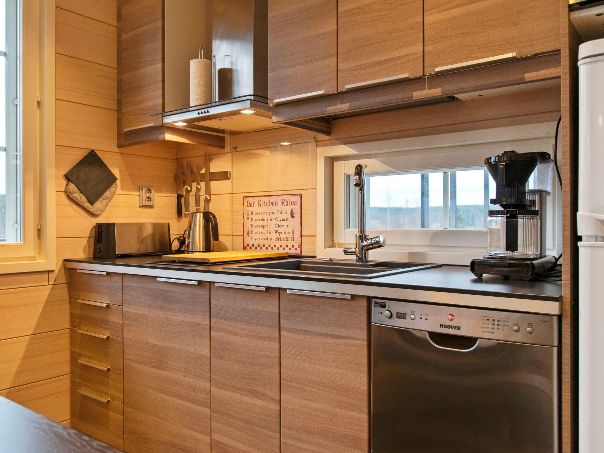 Villa is equipped with among other things: ventilation with heat recovery, air source heat pump with cooling function in upper and the lower floor, broadband internet access, central vacuum cleaner, washer-dryer combination, remote-controlled house automation, access control inside and out, intruder alarm system, carbon monoxide and fire alarm system. In the kitchen in addition to standard amenities there is a induction cooker and microvawe oven.