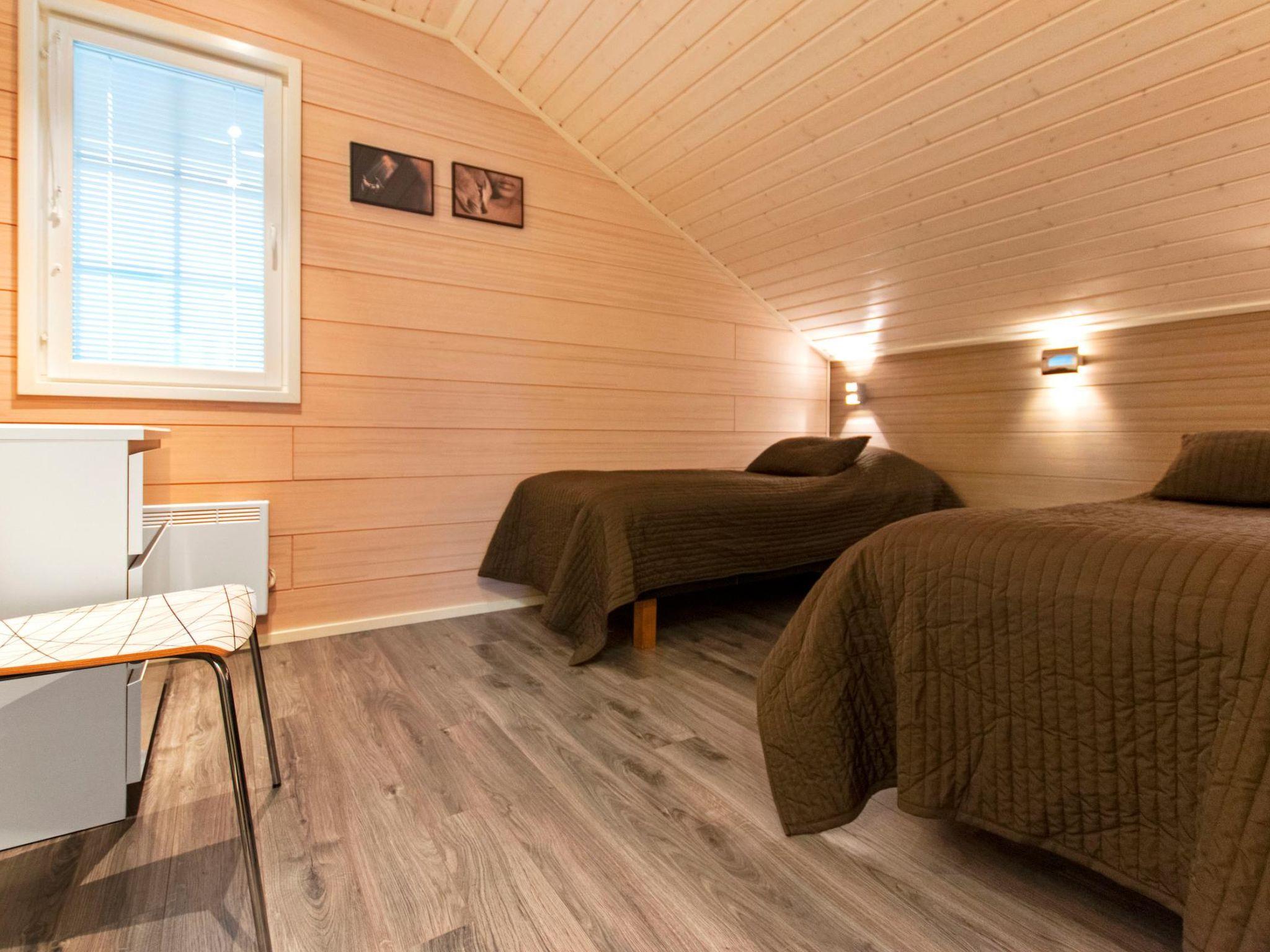 Ground floor: kitchen-living room, bedroom with two beds, sauna (electric stove), bathroom, toilet, covered terrace and a covered porch.