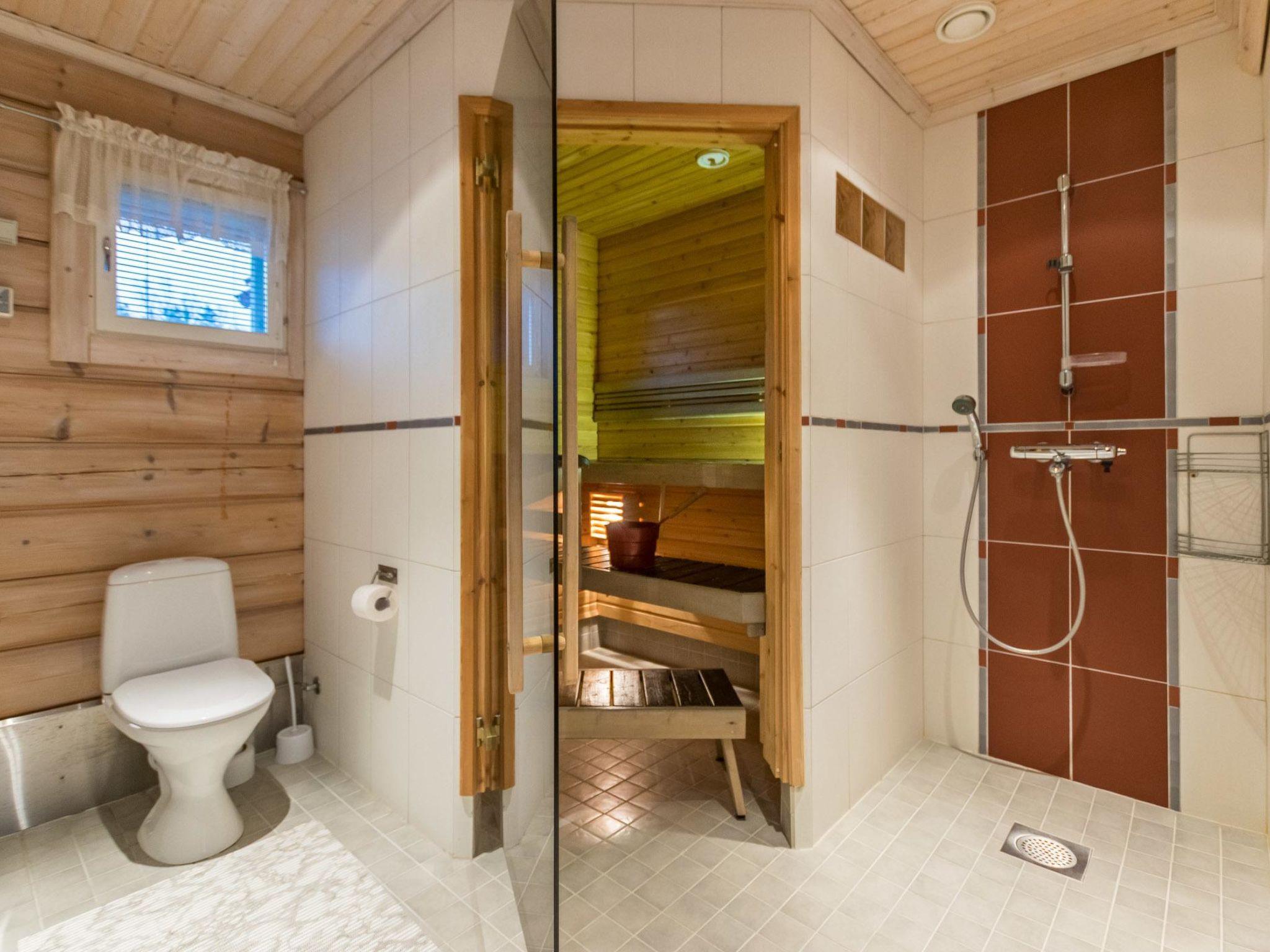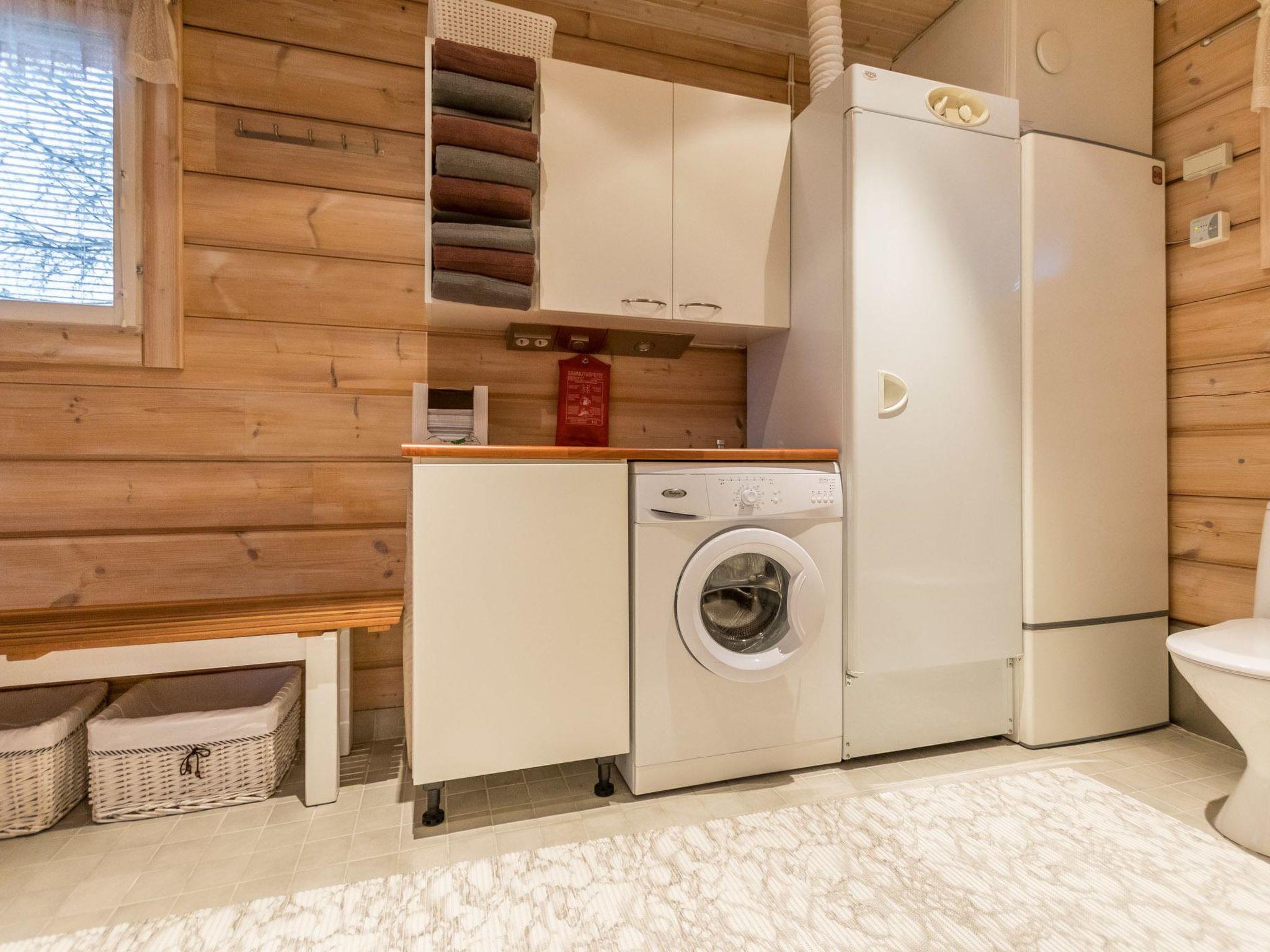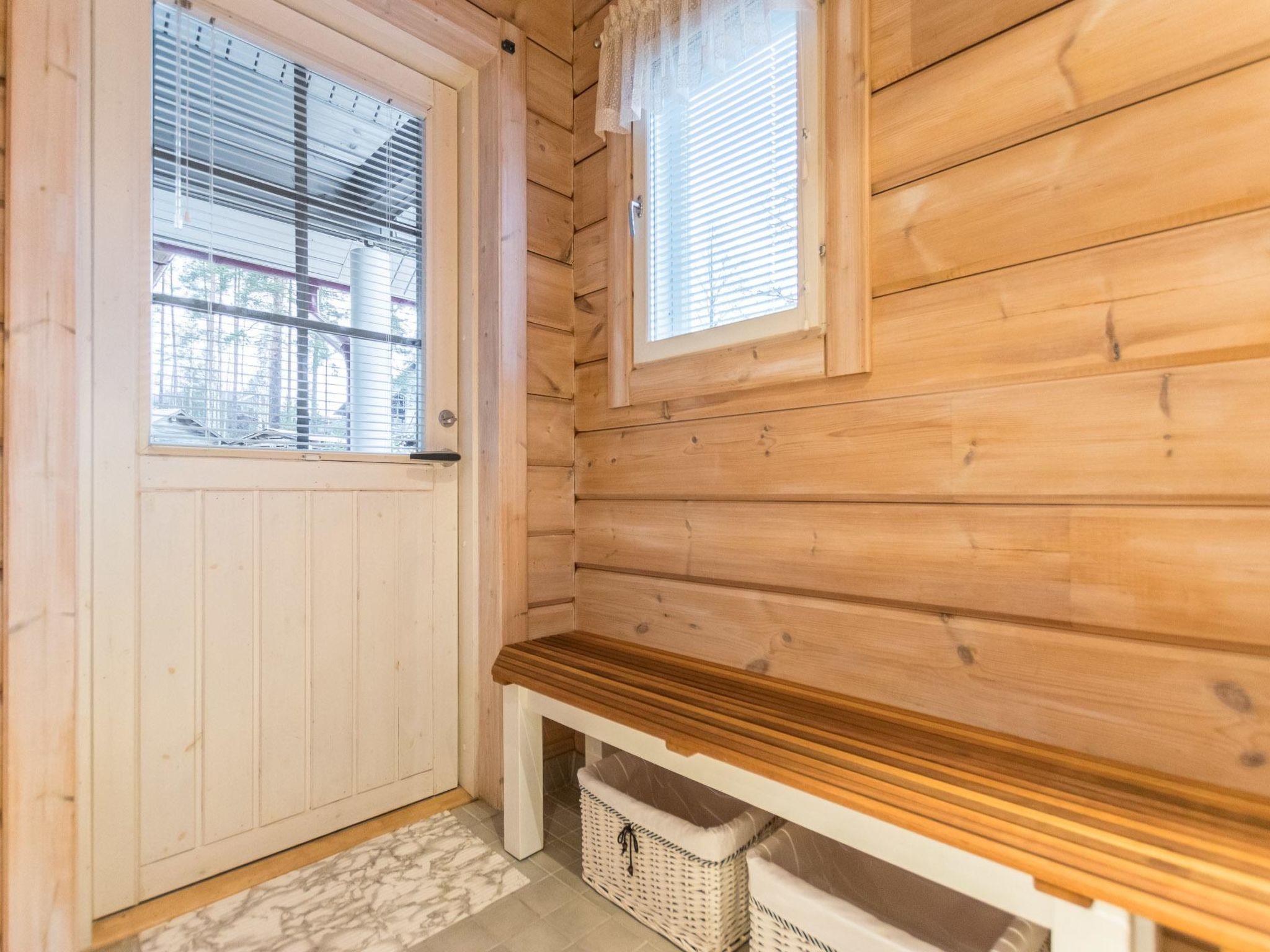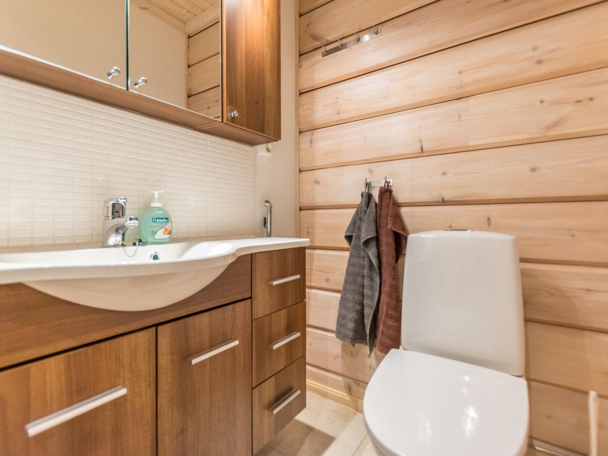 On the ground floor living room with dining group, heat reserving fireplace, sofa bed (bed size is 140 x 195 cm), TV (including Telia TV application for recording broadcasts), kitchenette, bedroom (160 x 200 cm Yankee bed), WC, sauna, washroom with toilet seat, washing machine, drying cabinet. Sleeping places for six person (80 x 200 cm spring mattress + mattress pad) in the loft (slope ceiling).