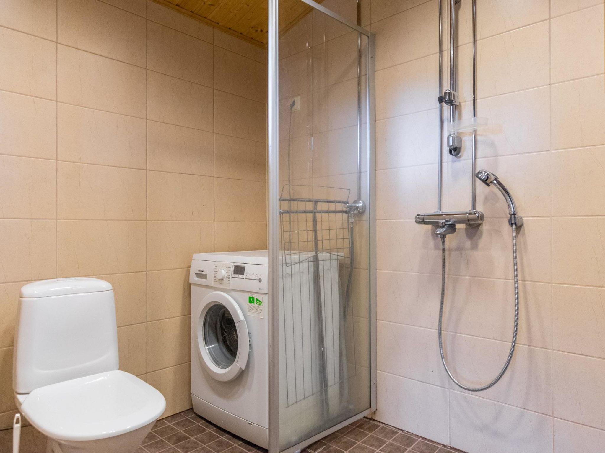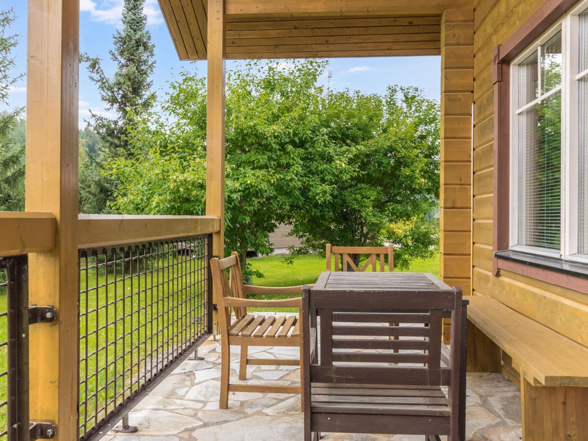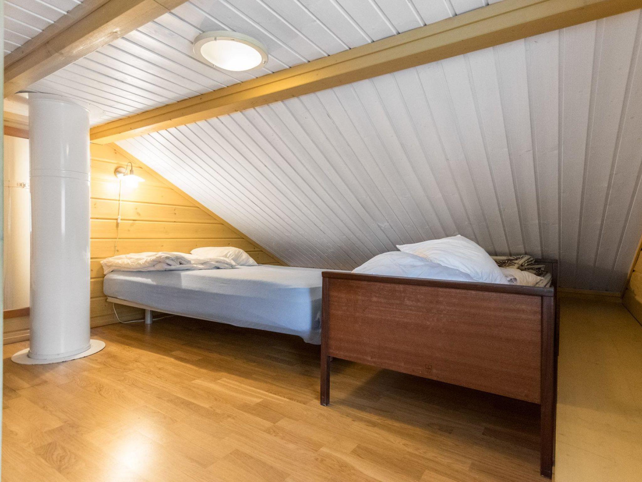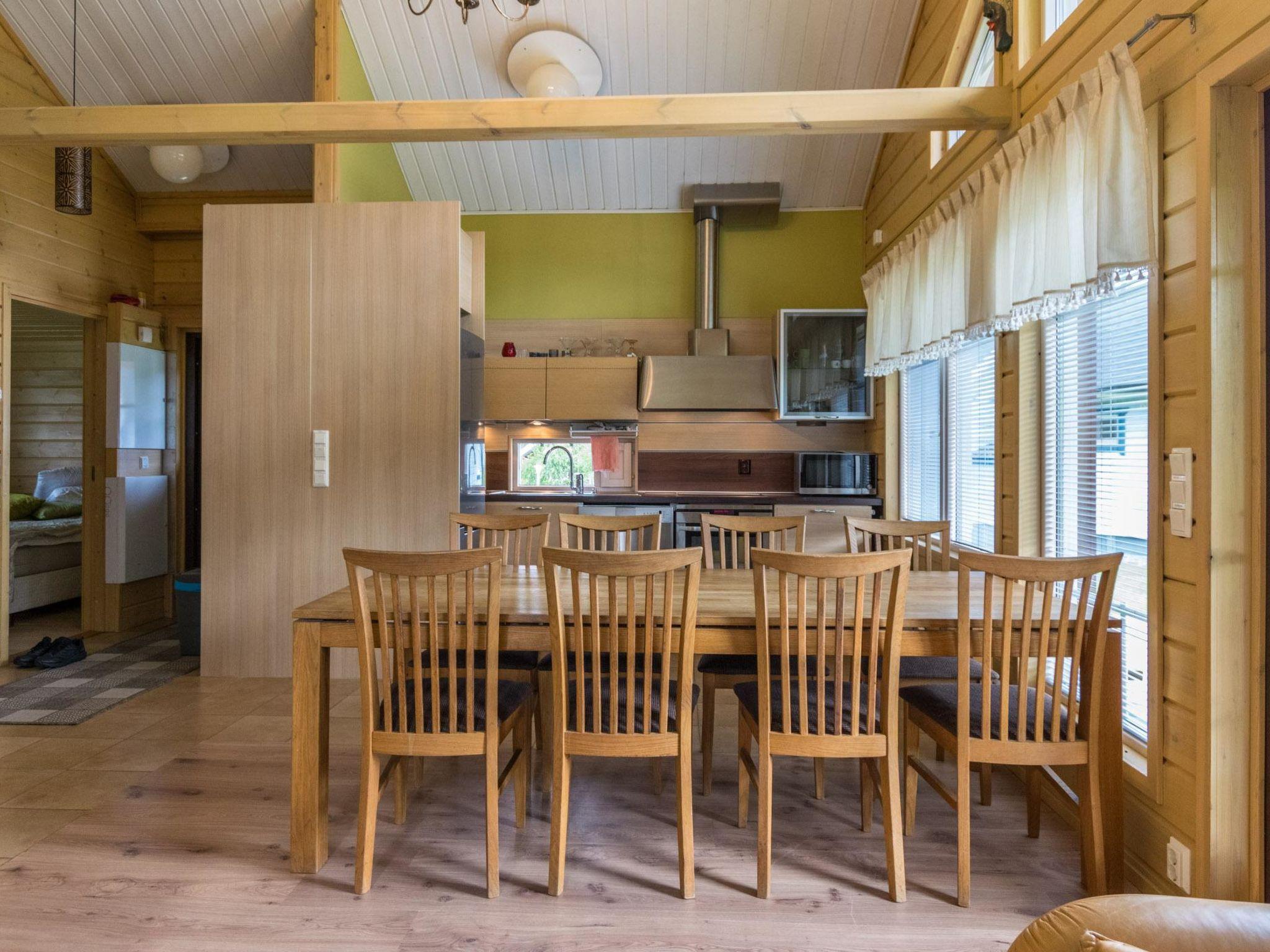 Wooden cabin (2008) features a spacious living room with a heat-storing fireplace and air source heat pump, a kitchenette, and two bedrooms - one with a double bed and the other with two single beds. On the upper floor, a sleeping area with three beds. Separate WC, electric sauna, bathroom with shower, another WC, and a washing machine.