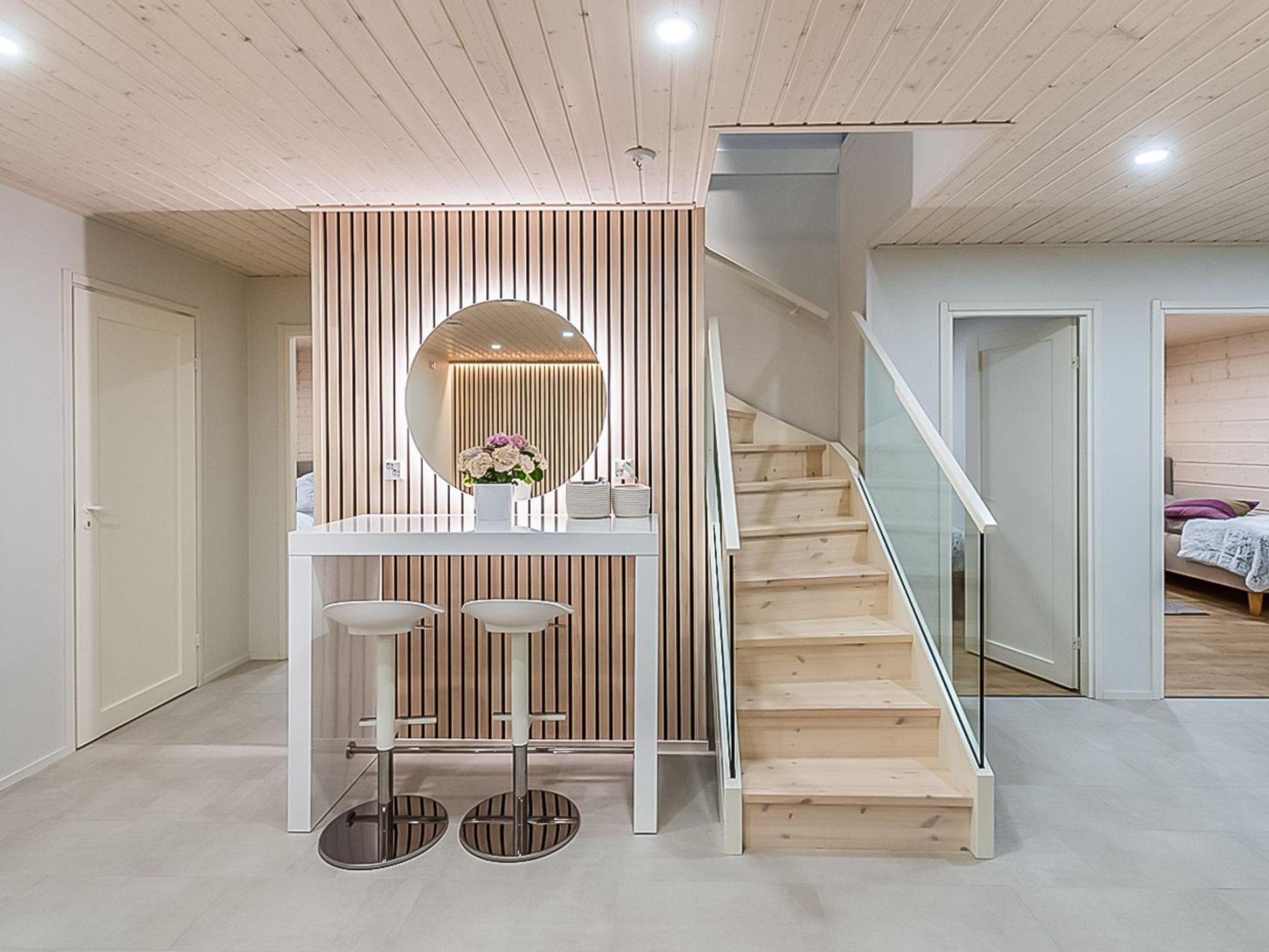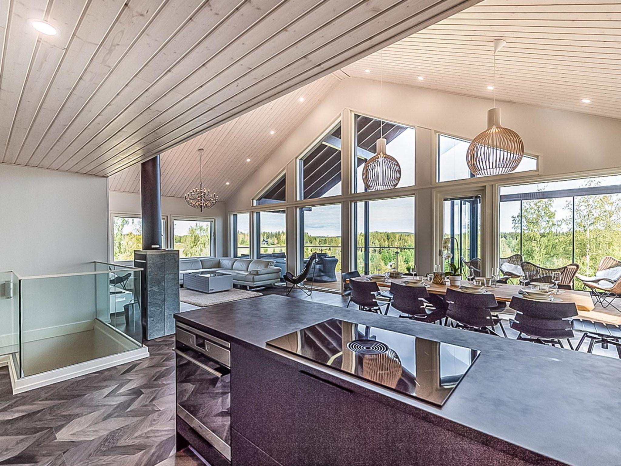 Magnificent, well-equipped, and spacious cabin situated on the western side of Himos, on a ski slope above Himos Golf Course. The cabin offers splendid views of the golf course from its terraces and windows, making it especially suitable for golf enthusiasts. The cabin comes with two private golf carts, included in the rental (for golfing use only). There is a glassed and non-glassed terrace on the upper floor. On the lower floor terrace, there is a hot tub available for rent.