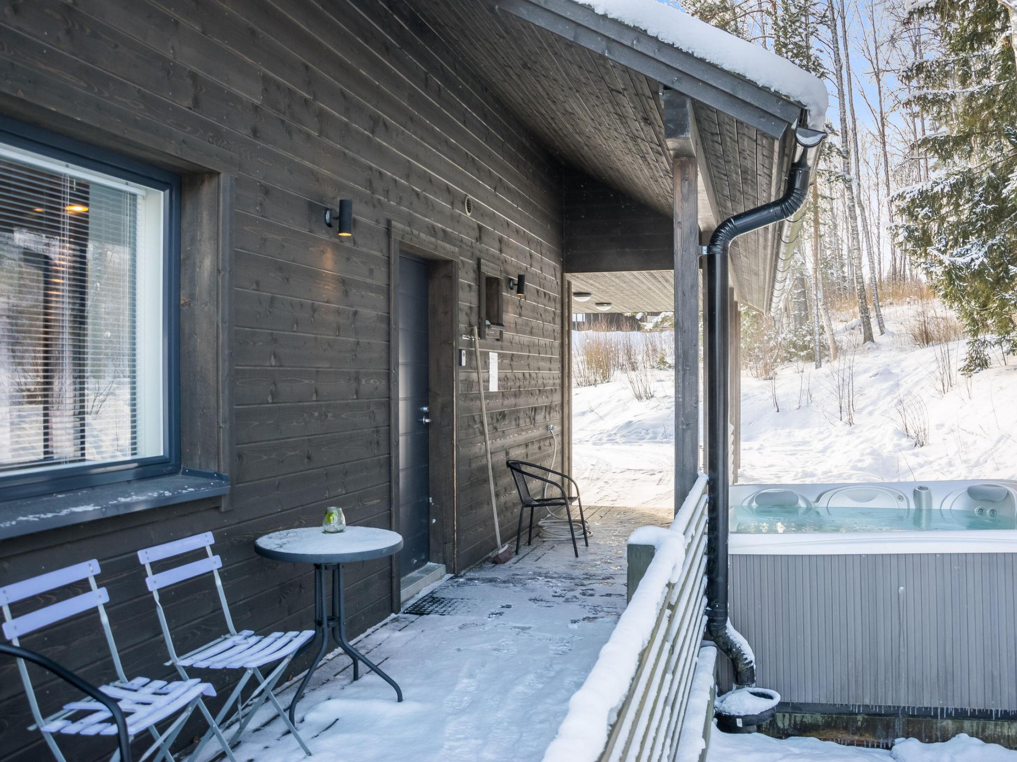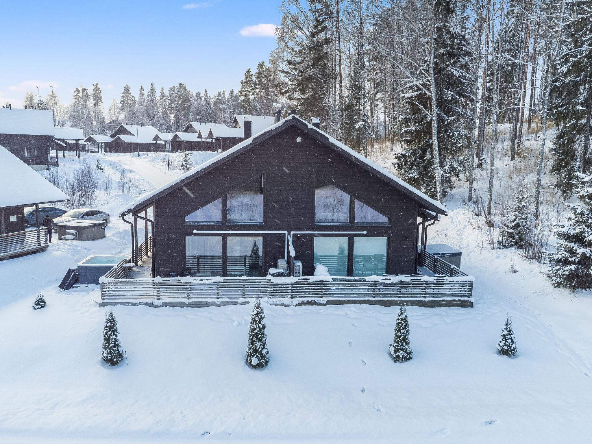 Stunning modern semi-detached house completed in 2016, excellently located in Himos next to the golf course. In winter, the cross-country ski trails run nearby. The terrace features a spacious outdoor hydro massage bath available for an additional fee.