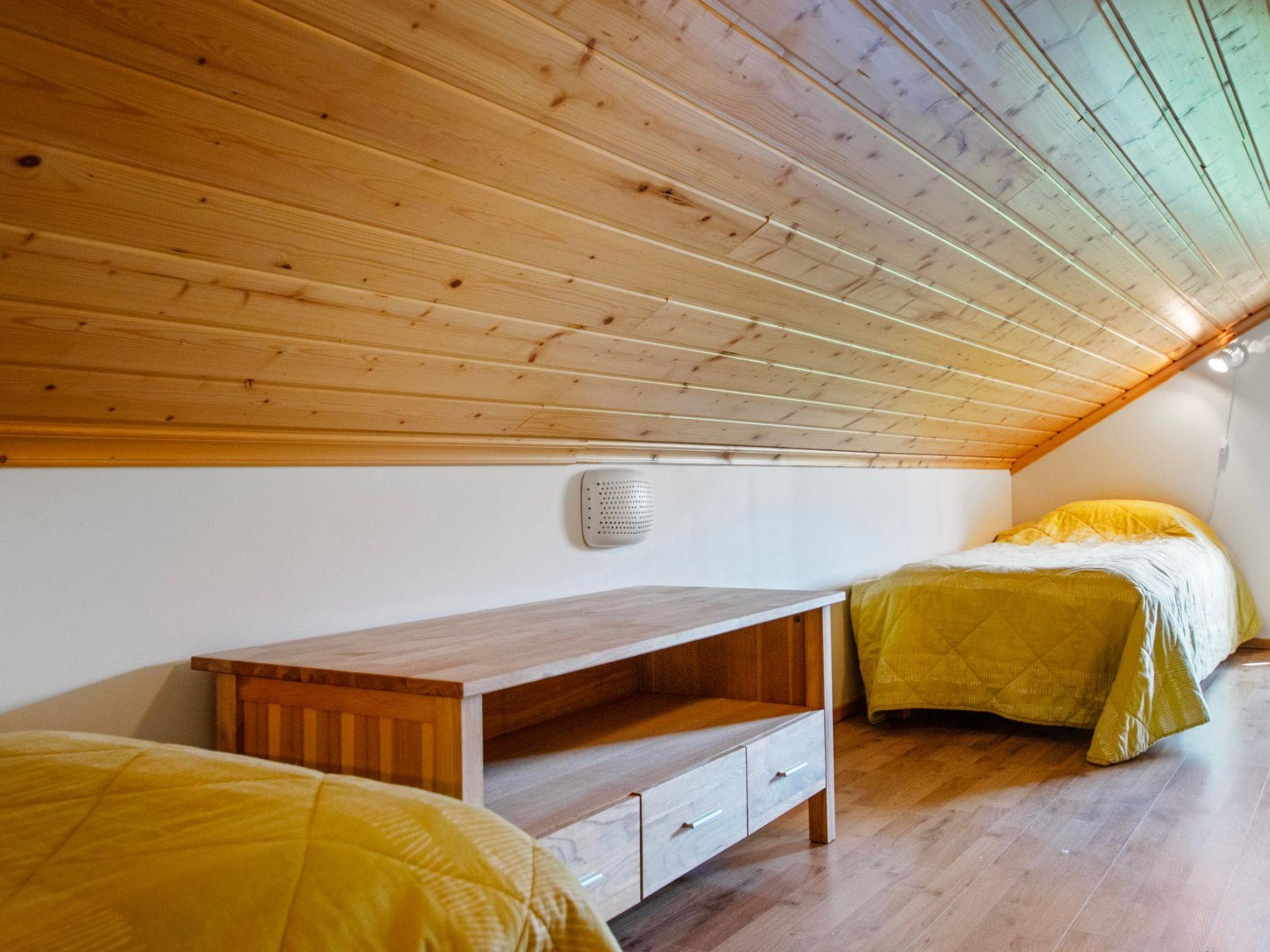 Wooden chalet 2010, living room/kitchen, bedroom double bed, hall, utility room, washroom, sauna (electric stove), in sleeping loft (sloping ceilings, maximum height 1.7 m) 4 beds, open terrace. Building has mechanical ventilation, downstairs underfloor heating. Gas heated ring burner + Muurikka steel pan as gas grill.