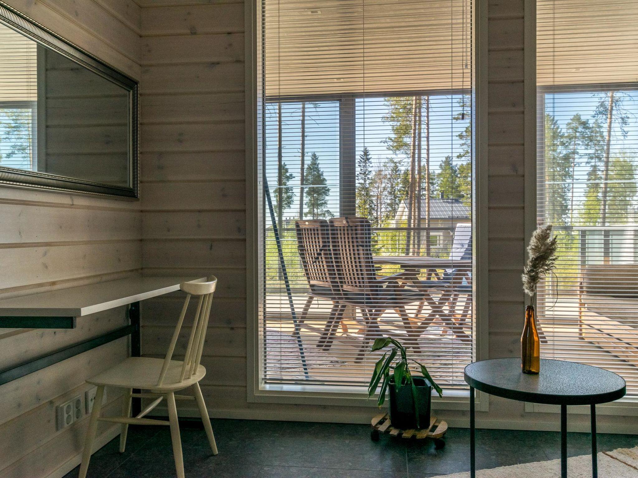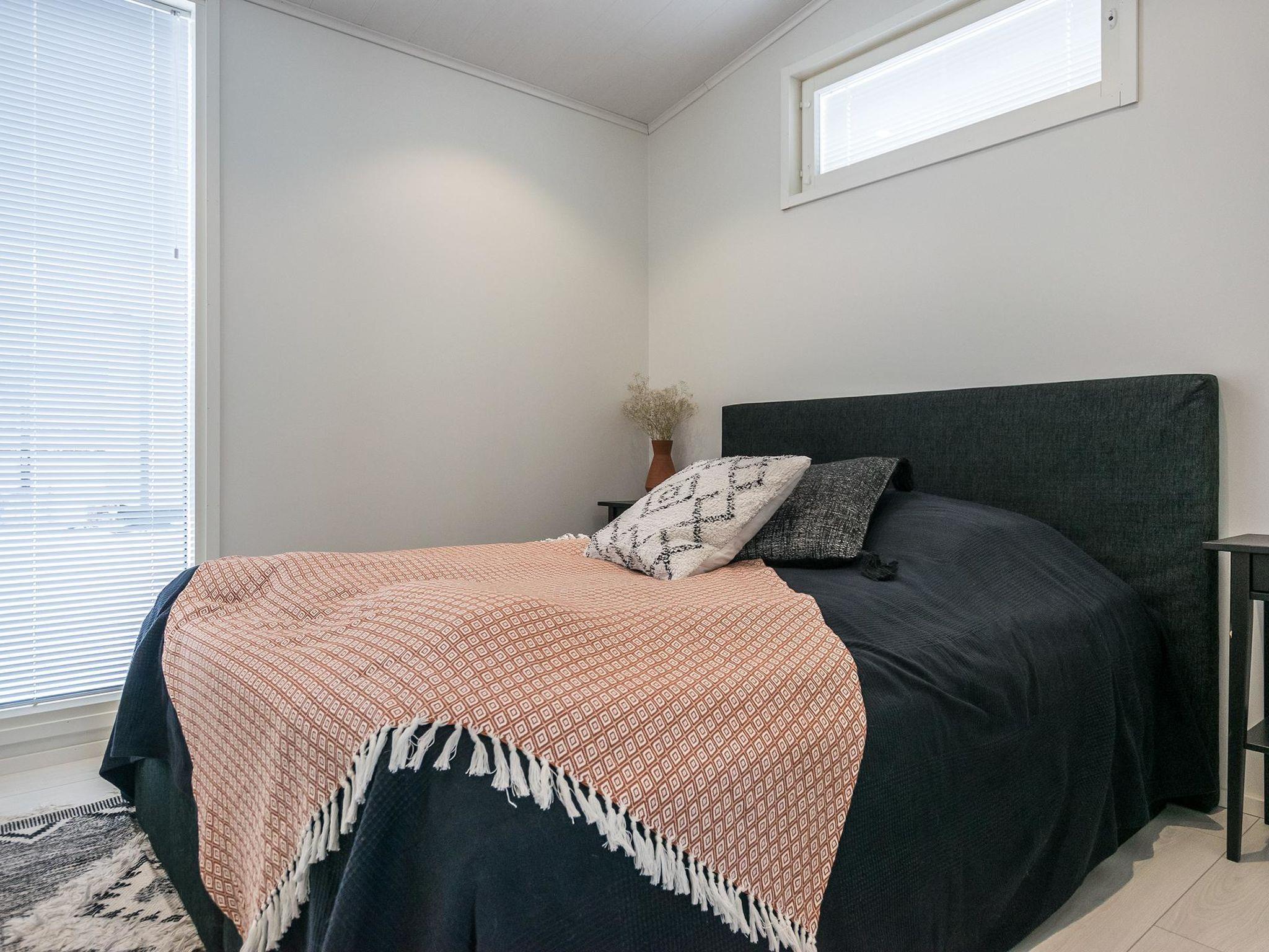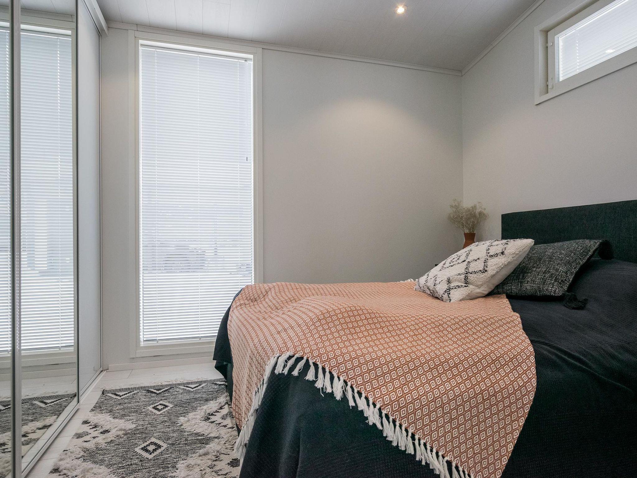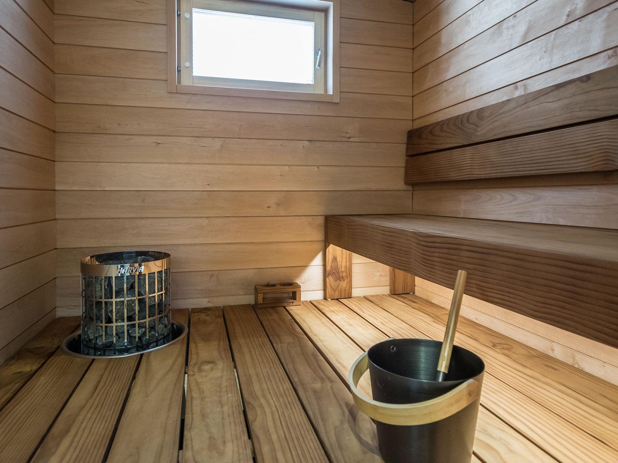Wooden holiday home with boarded outer walls, built in 2021. Living room (140x190 cm sofa bed), living room/kitchen, heat storing fireplace, separate WC, utility room (washing machine and tumble dryer). Two bedrooms, bedroom 1: double bed, bedroom 2: double bed 140x200 cm and sofa bed (120 cm). Access to the bedroom is from the glazed terrace, the room is also a dressing room for sauna. Sauna is equipped with electric sauna stove, washroom with shower and WC, spacious glazed terrace.
